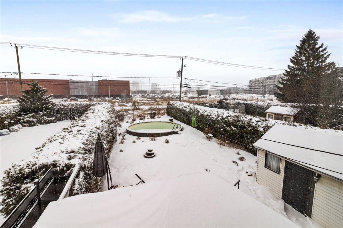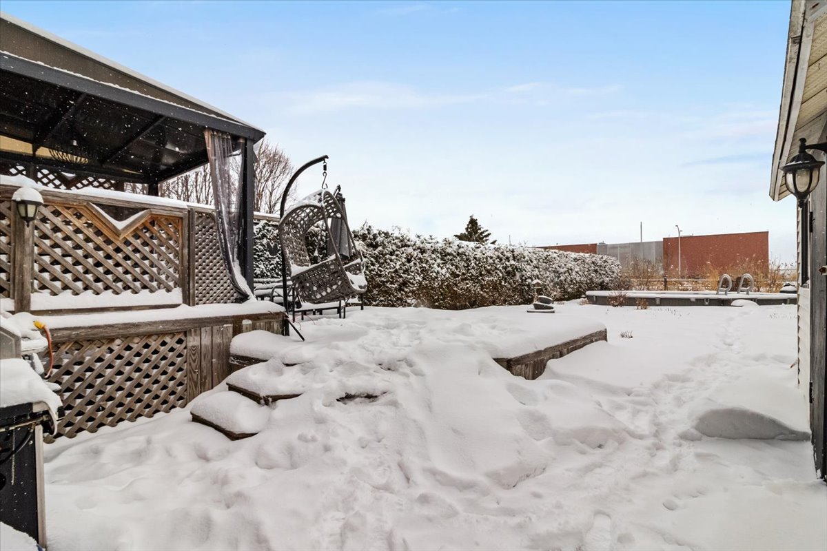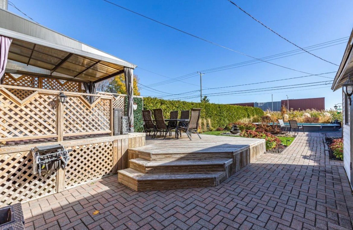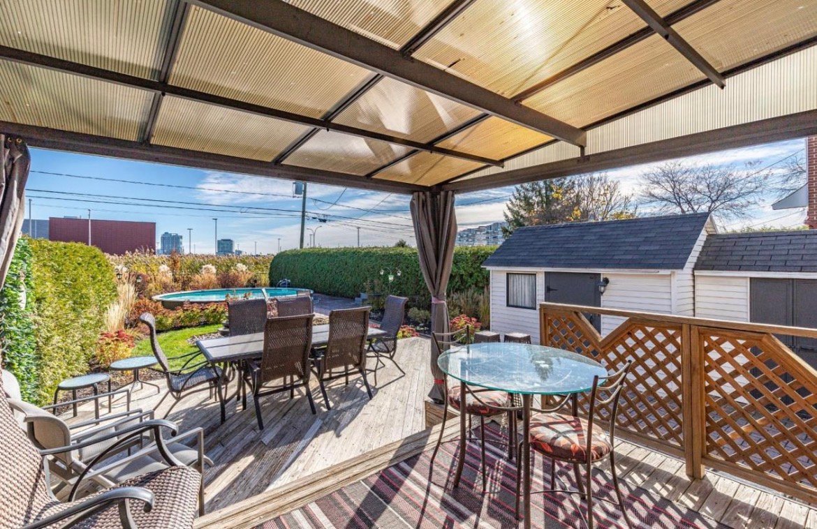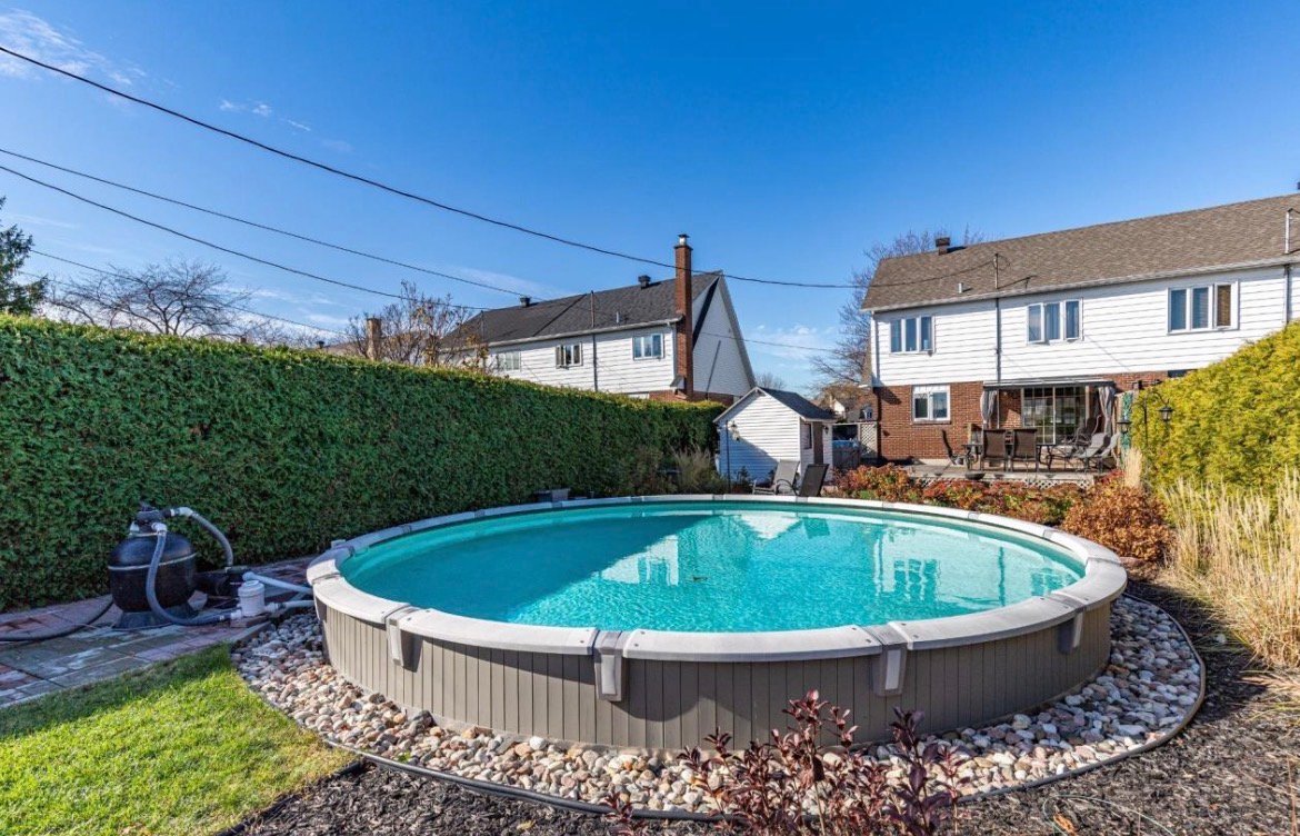 Outside, enjoy a landscaped backyard with a semi-inground pool, ideal for summer relaxation, along with a plexiglass shed on the patio. The property is connected to the Microtec alarm system and has been meticulously maintained with numerous major renovations over the years, including heat pump, roofing, insulation, doors, and windows.