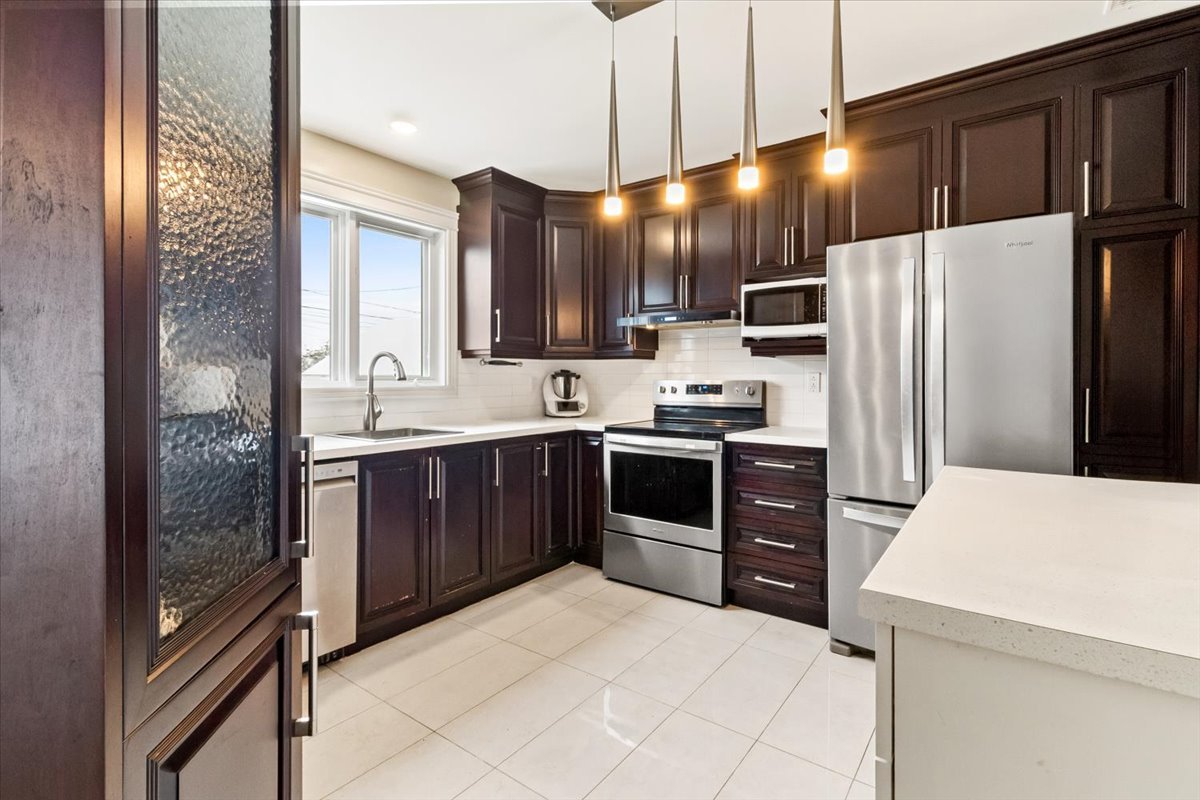 Superb turnkey semi-detached property ideally located next to Quartier DIX30. Entirely renovated, this home offers 3 bedrooms on the upper level, a finished basement, and a spacious landscaped backyard with semi-inground pool--perfect for family living. The kitchen features maple cabinets and porcelain flooring, while hardwood floors enhance the main level and staircase. Numerous inclusions available, including appliances and the possibility to purchase furniture. Situated on a quiet, family-friendly crescent close to schools, daycares, REM, highways, and all services. A rare opportunity in sought-after Brossard.