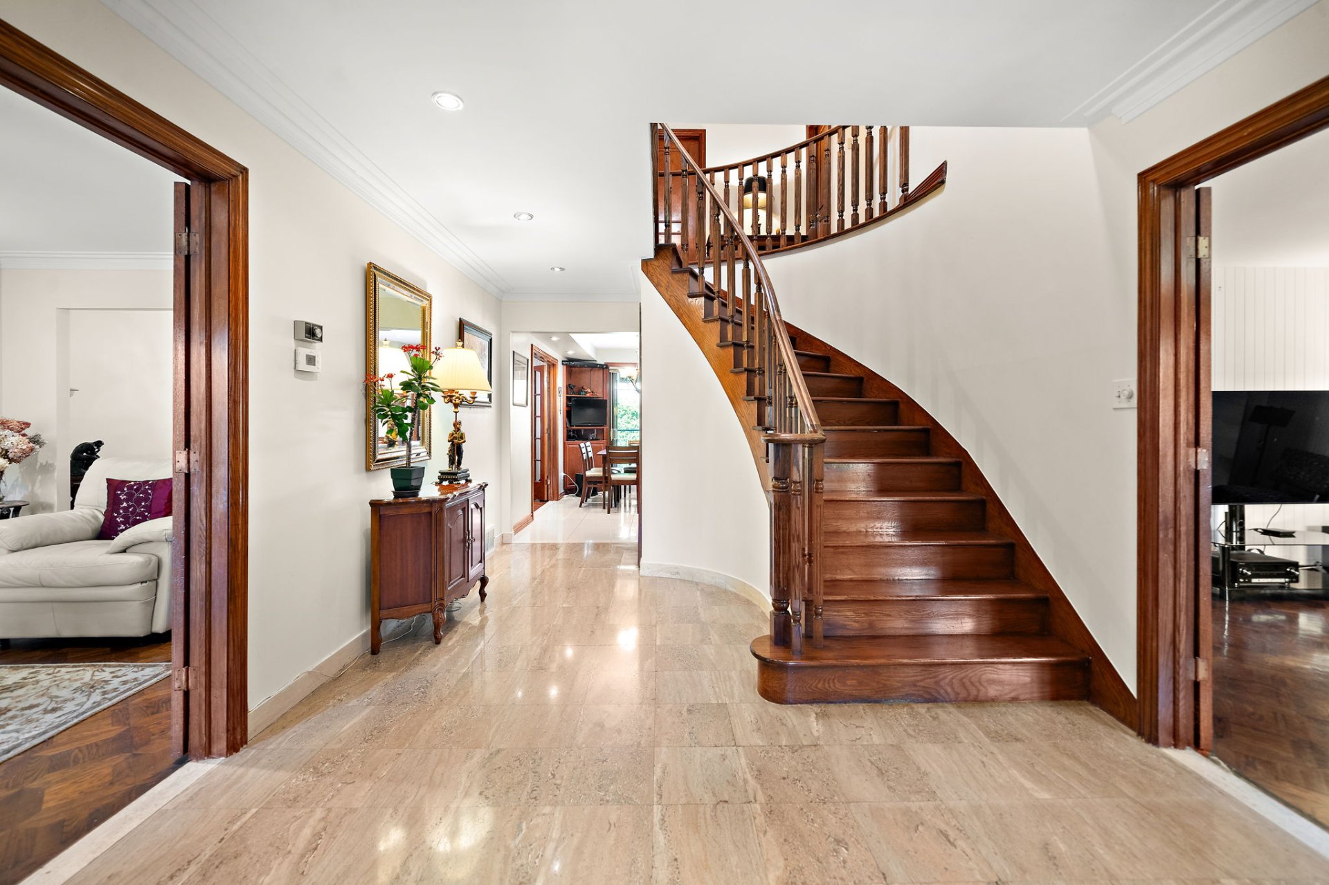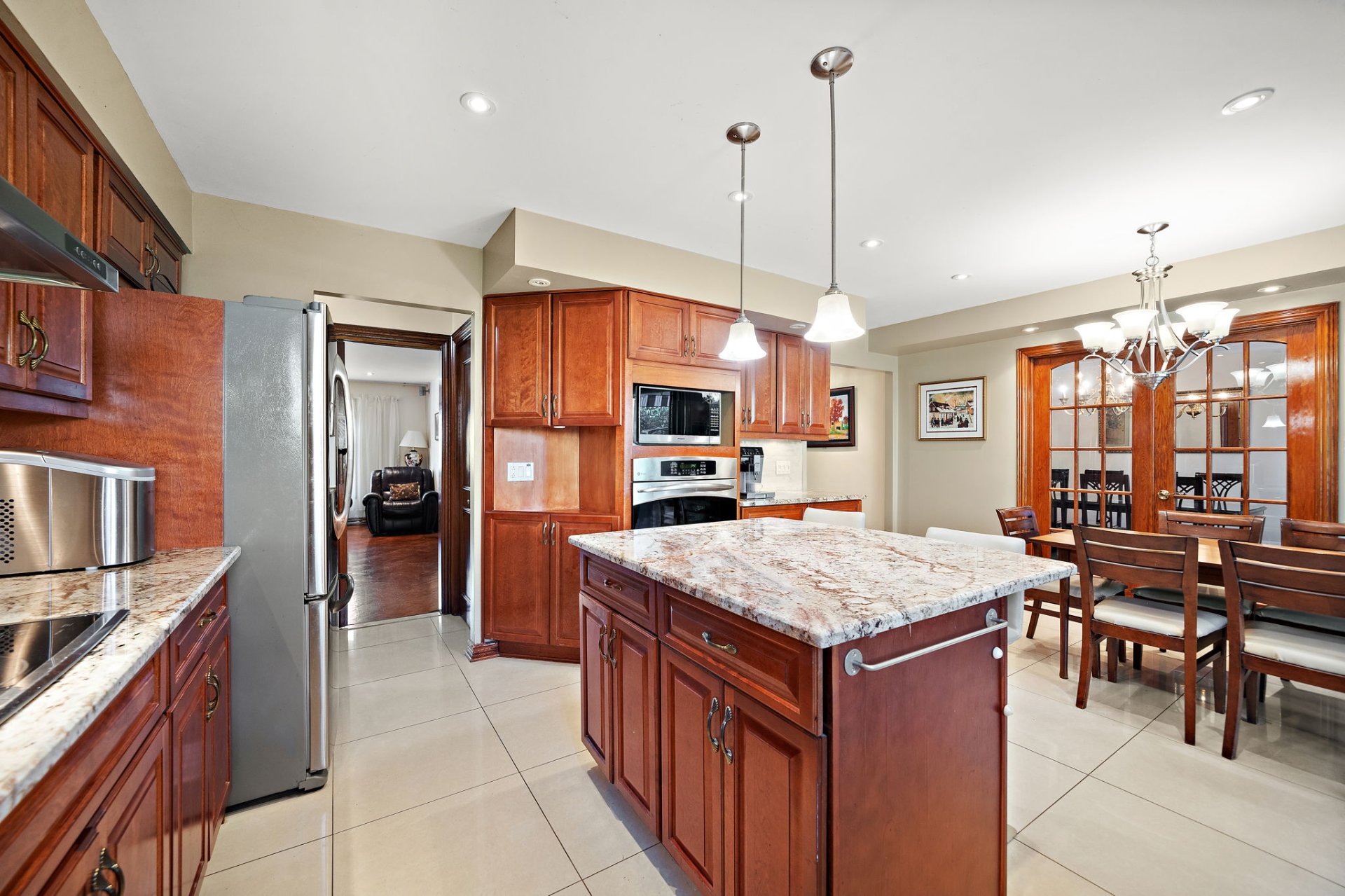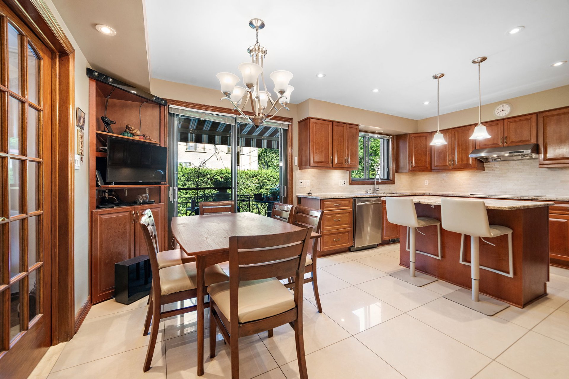 Step inside to a grand entrance hall that sets the tone for the home’s refined character. The renovated kitchen serves as the centerpiece, offering custom cabinetry, sleek stone countertops, and a bright dinette overlooking the backyard. Spacious formal rooms, including a welcoming living room with fireplace and a sunlit dining area, provide the perfect backdrop for both family gatherings and entertaining guests.