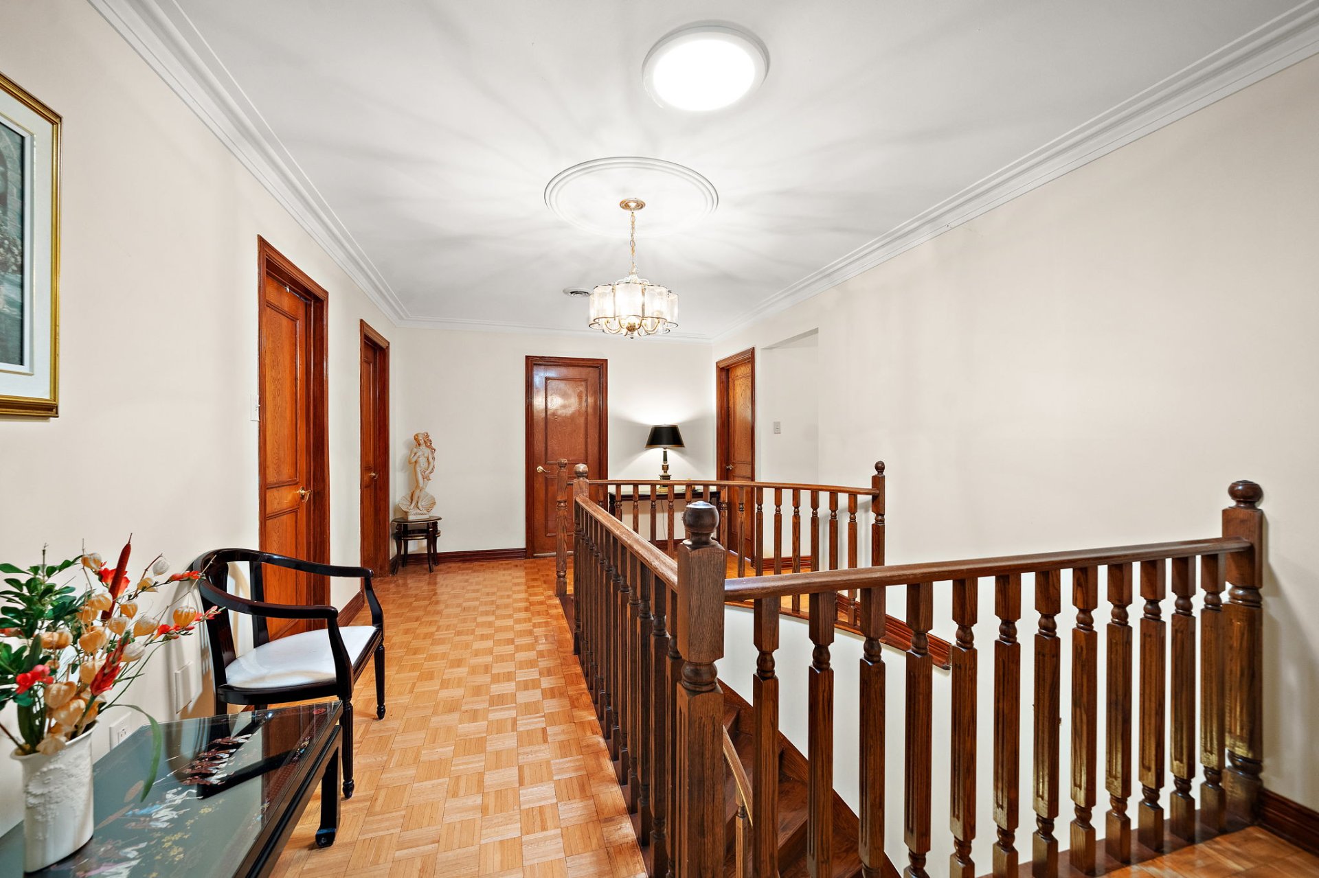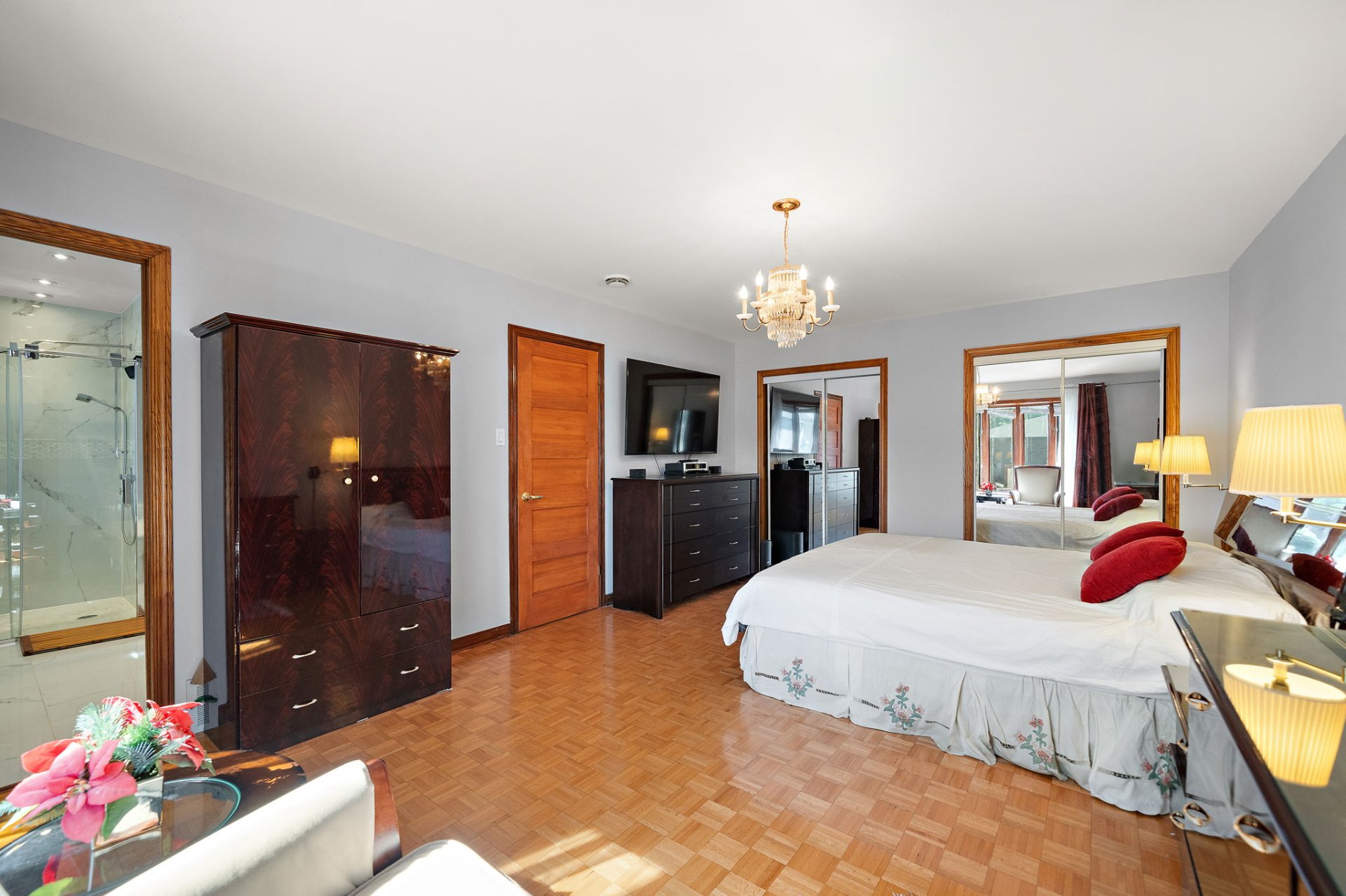 Stately 2-storey home located in a prime location, corner lot, in Saint-Laurent offers 6 bedrooms and 3 bathrooms, blending timeless elegance with modern updates. A grand entrance opens to spacious formal rooms, a cozy living room with fireplace, and a renovated kitchen with dinette overlooking the backyard. Upstairs, the master bedroom features a generous layout, double closet, and renovated ensuite. The basement adds a large family room, games area, and ample storage. Outdoors, enjoy a private patio, landscaped yard, and mature trees--all within minutes of top schools, parks, transit, highways and shopping.