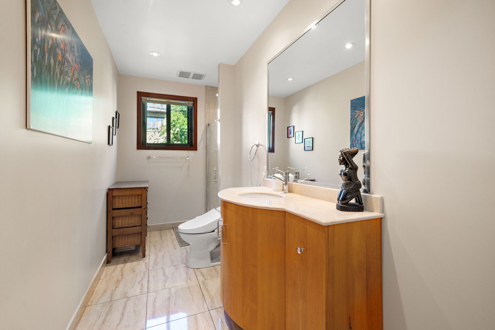 Outdoors, the beautifully landscaped lot includes a private patio, lush backyard, and mature trees, offering a peaceful retreat in the heart of the city.