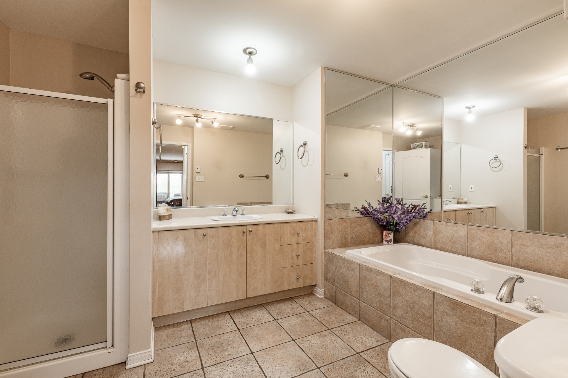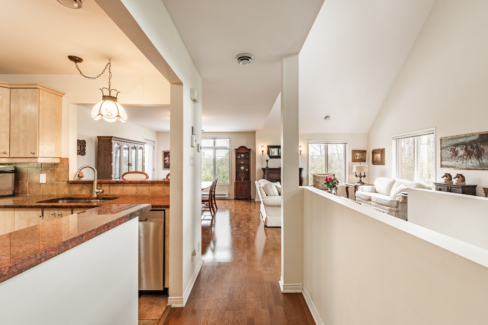 Bright and spacious two-storey corner-unit condo with private exterior entrance and direct access to a private garage. The main level features an open-concept layout with vaulted ceilings, flooded with natural light. Includes 2 bedrooms and 2 full bathrooms, with a private ensuite in the primary bedroom. A large mezzanine offers flexible space for an office or family room. Enjoy unbeatable direct access to Centennial Park, with trails, lake and green spaces right at your doorstep.