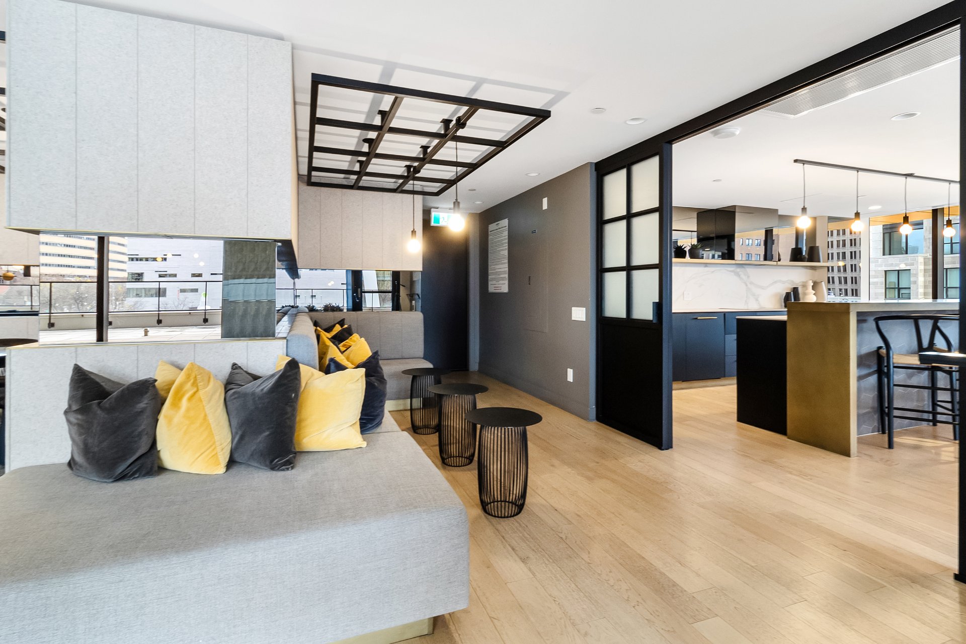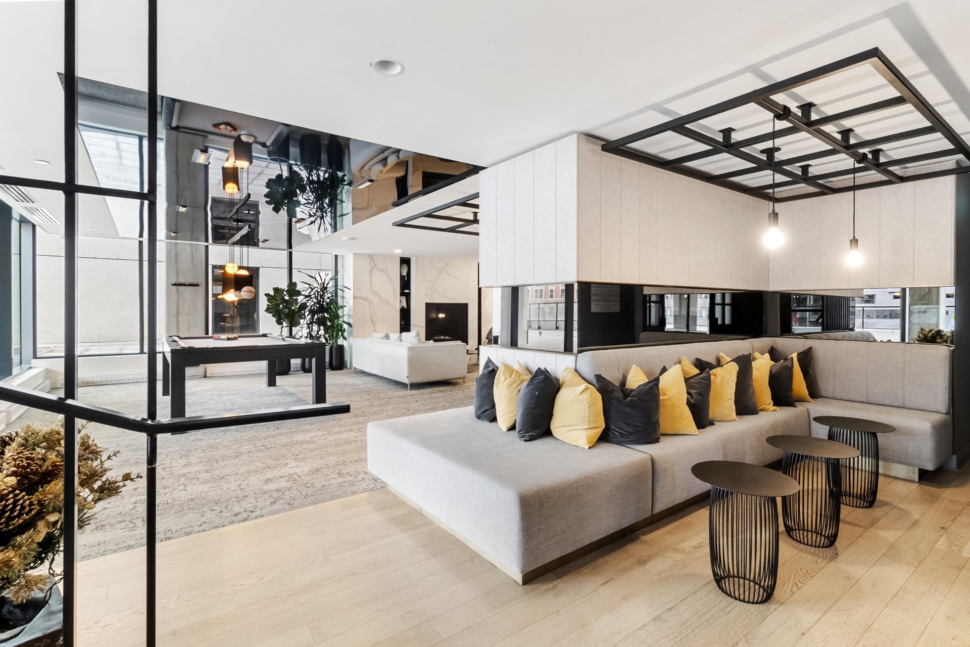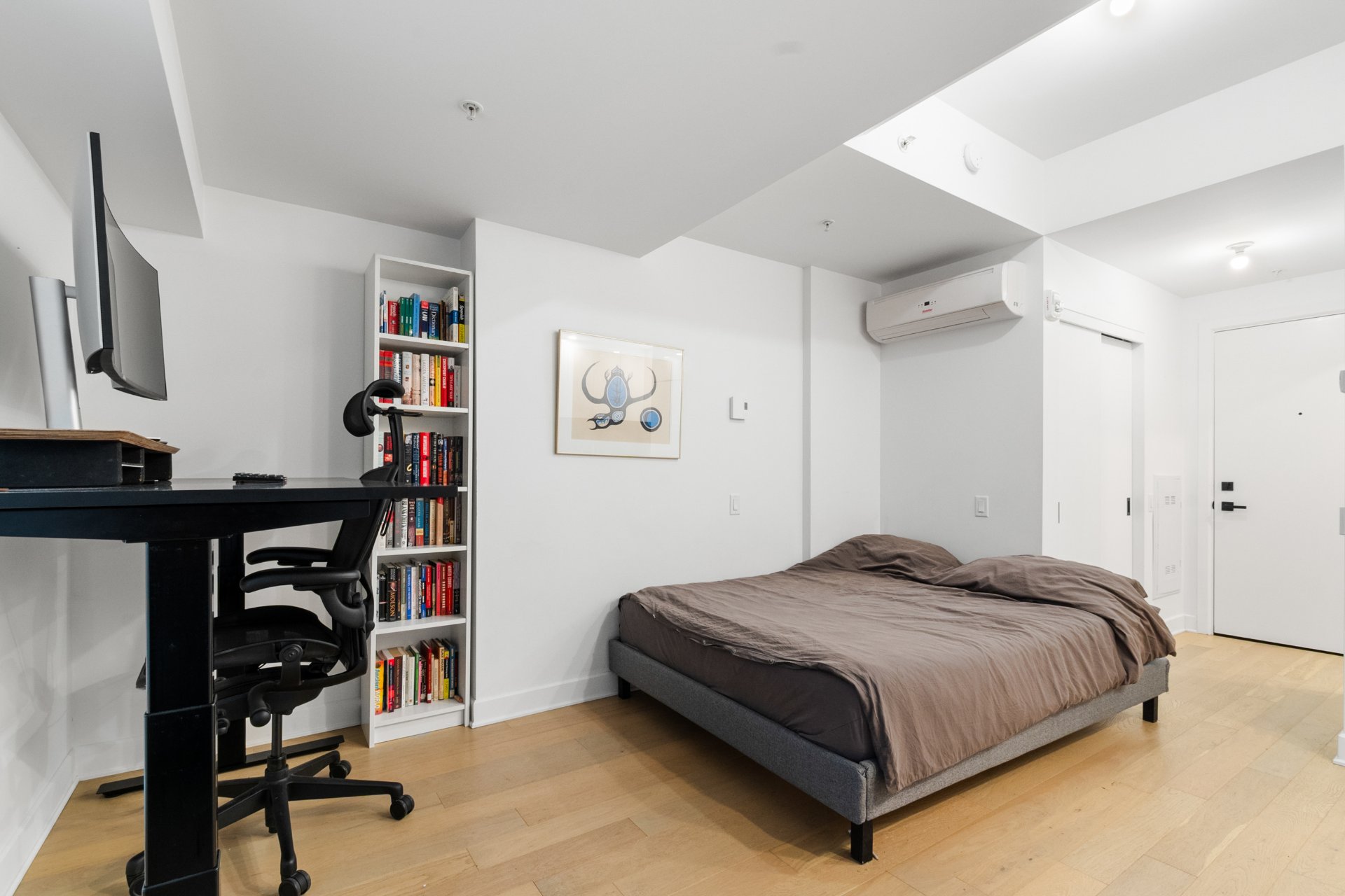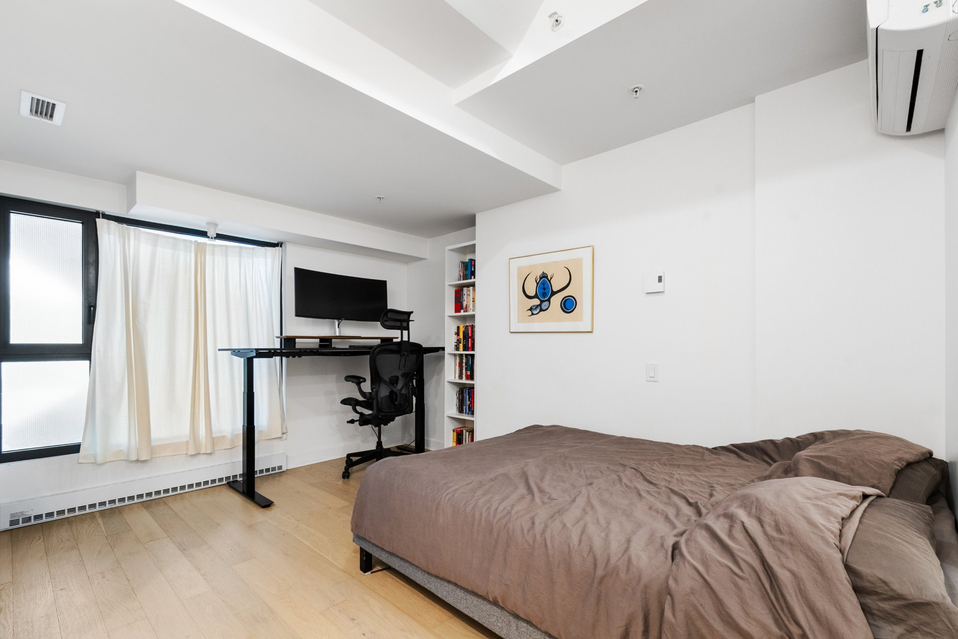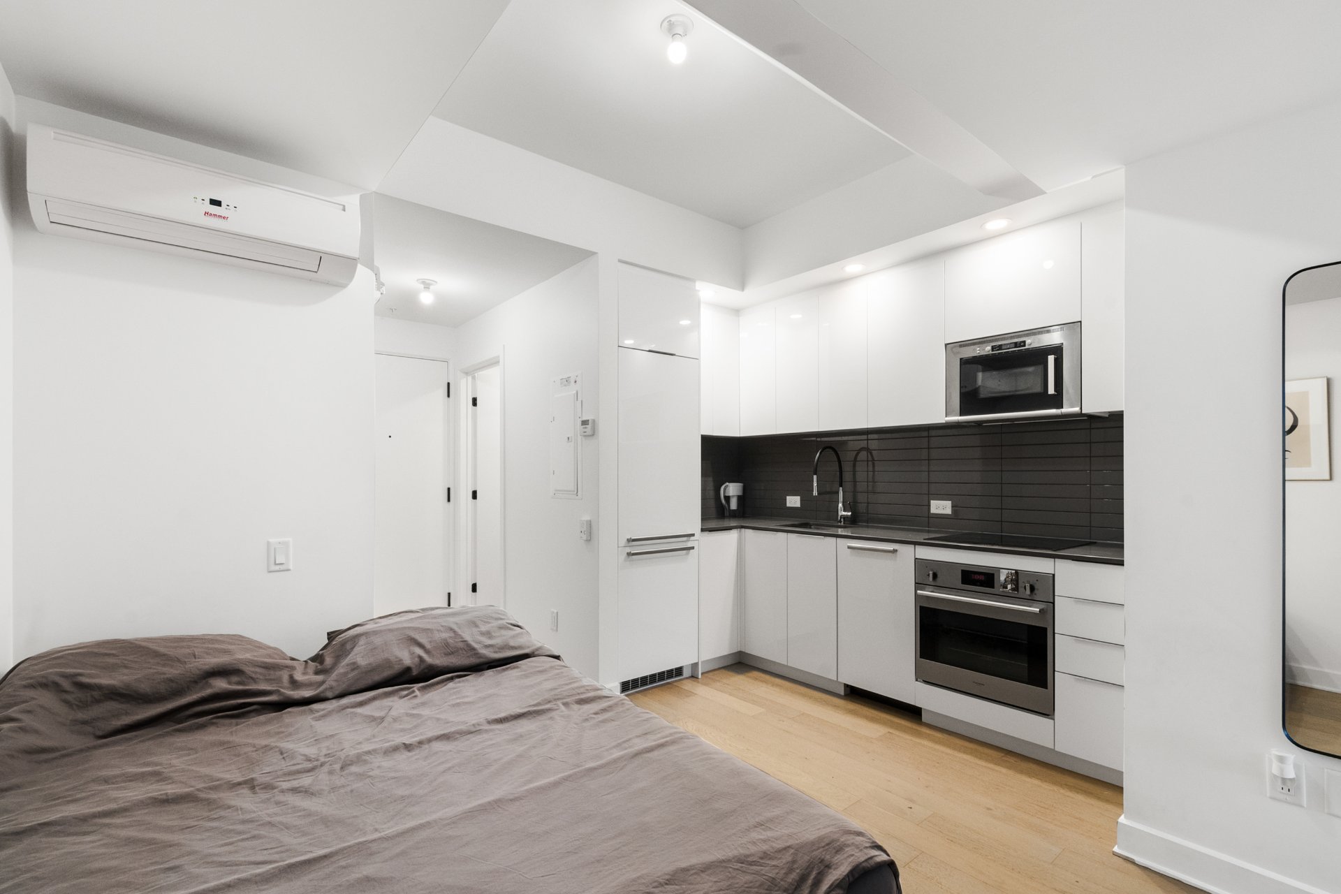 Bright 5th-floor studio at Laurent & Clark. This 267 sqft unit offers a sleek kitchen, in-unit washer dryer, wall-mounted A/C, walk-in closet and private storage included. Enjoy upscale amenities: gym, indoor pool, spa, sauna, BBQ terrace, coworking space and elegant lounge. Nestled in Quartier des Spectacles, steps from Saint-Laurent Metro, UQAM, McGill, grocery stores, cafés, restaurants, theaters and festivals. Live the vibrant downtown Montreal lifestyle.