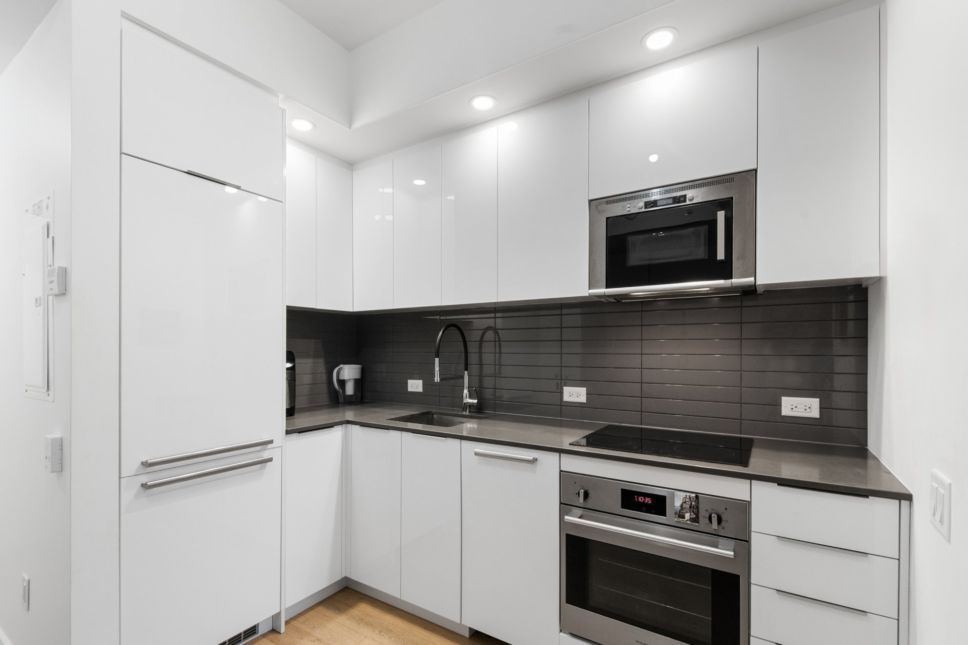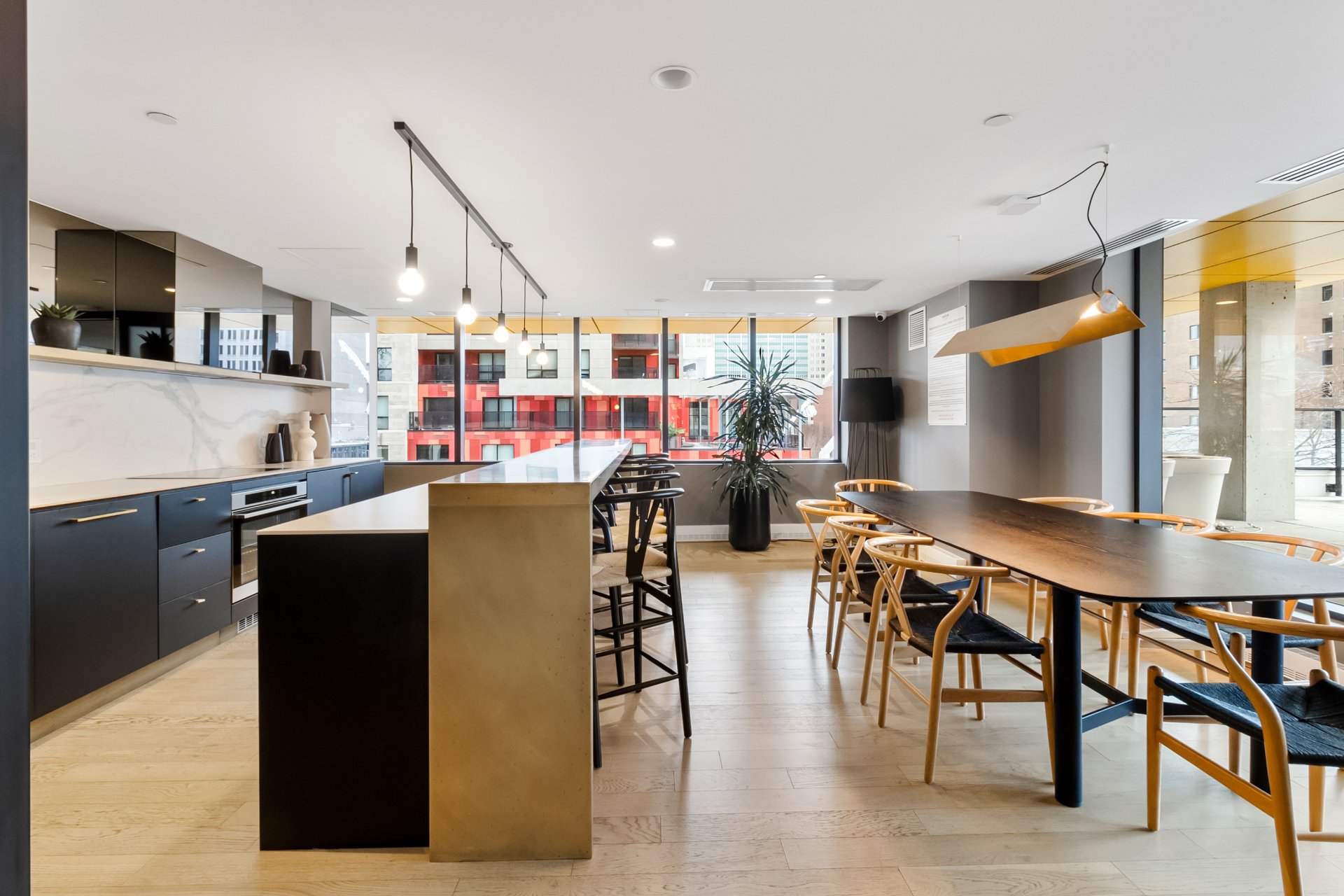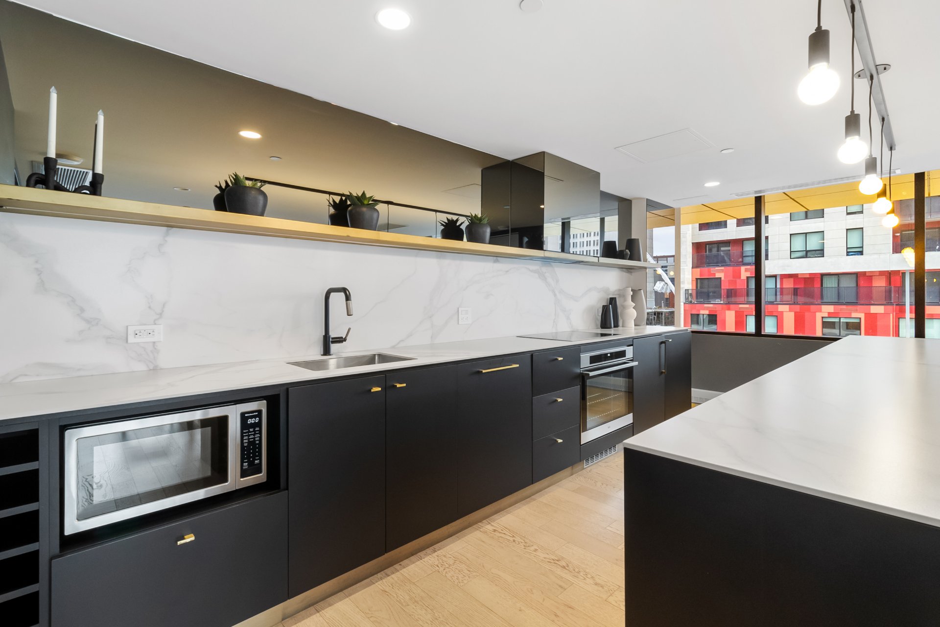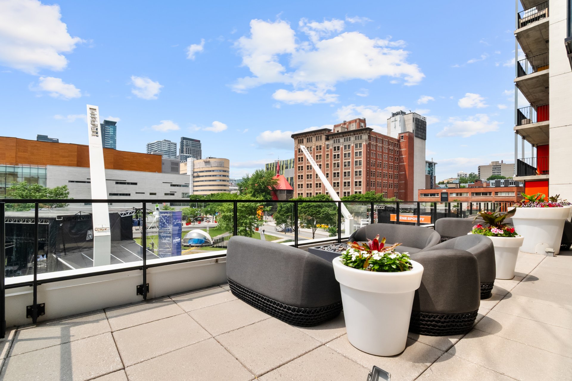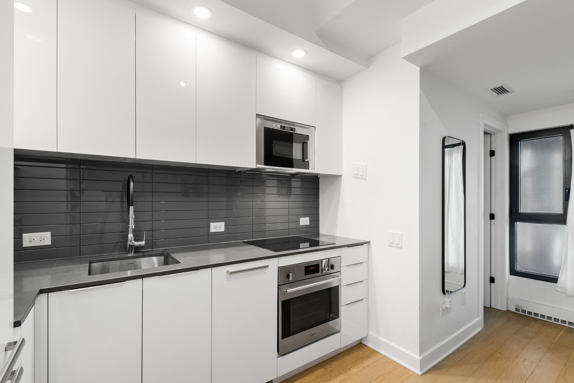 Bright 5th-floor studio at Laurent & Clark. This 267 sqft unit offers a sleek kitchen, in-unit washer dryer, wall-mounted A/C, walk-in closet and private storage included. Enjoy upscale amenities: gym, indoor pool, spa, sauna, BBQ terrace, coworking space and elegant lounge. Nestled in Quartier des Spectacles, steps from Saint-Laurent Metro, UQAM, McGill, grocery stores, cafés, restaurants, theaters and festivals. Live the vibrant downtown Montreal lifestyle.