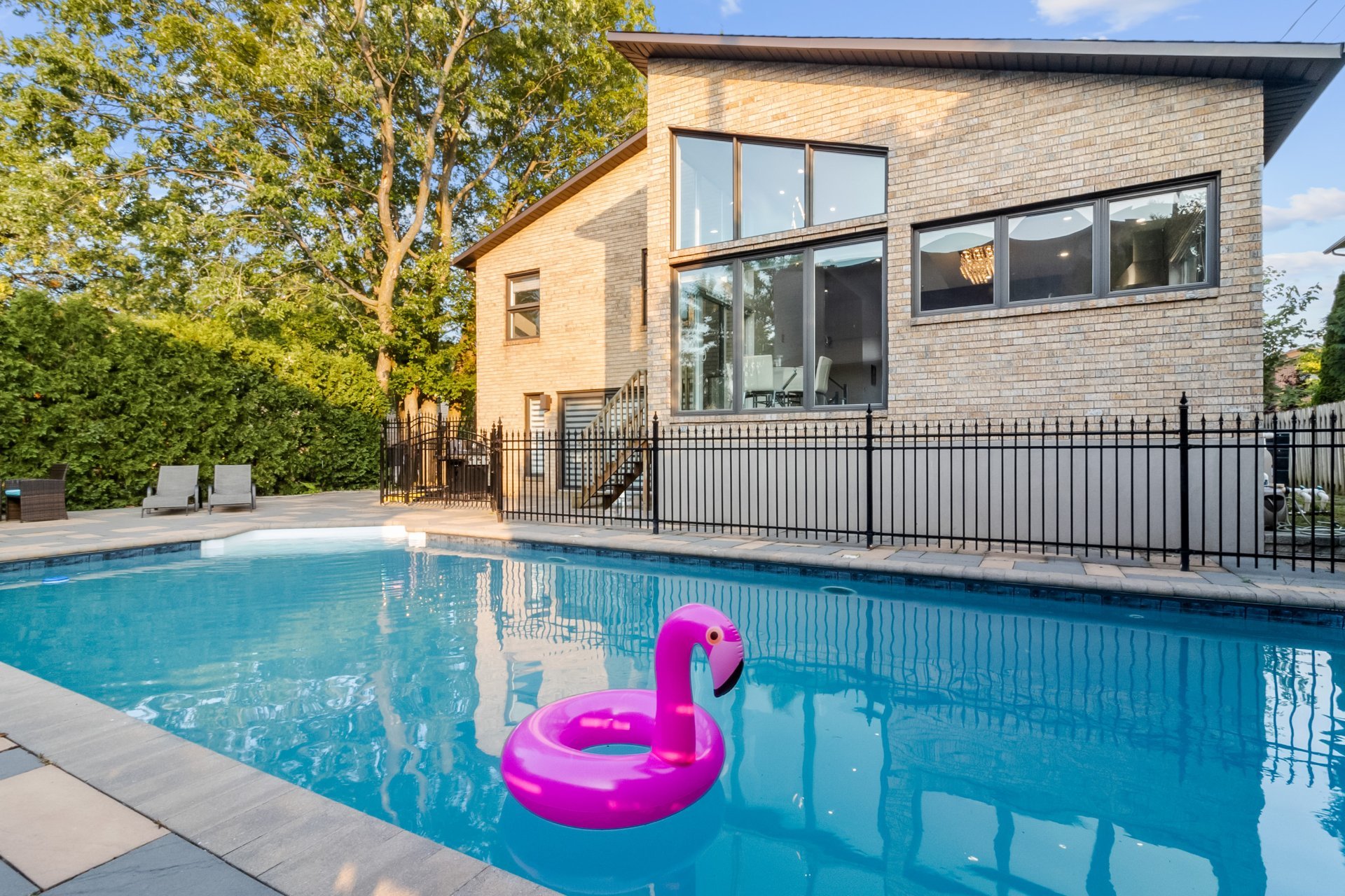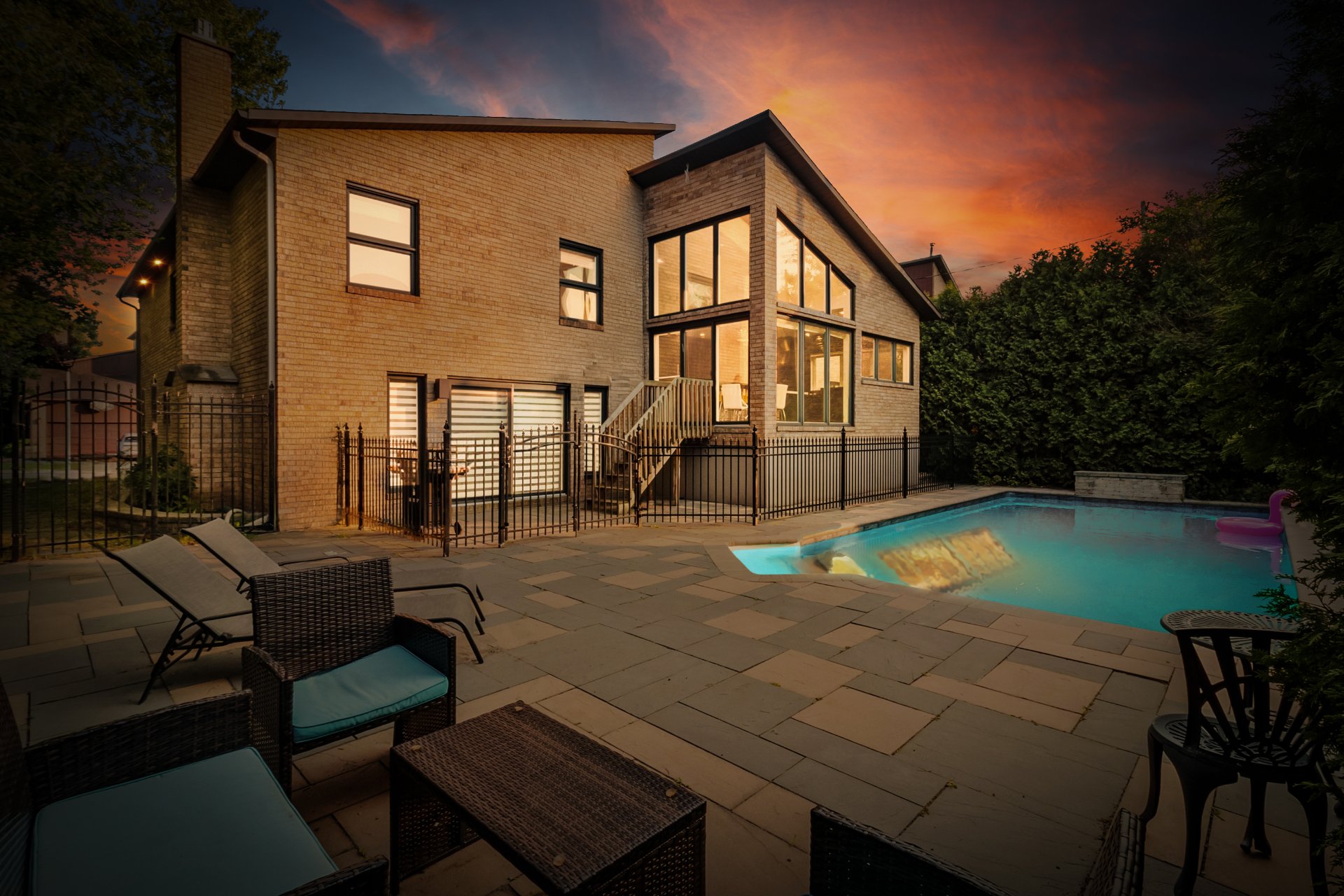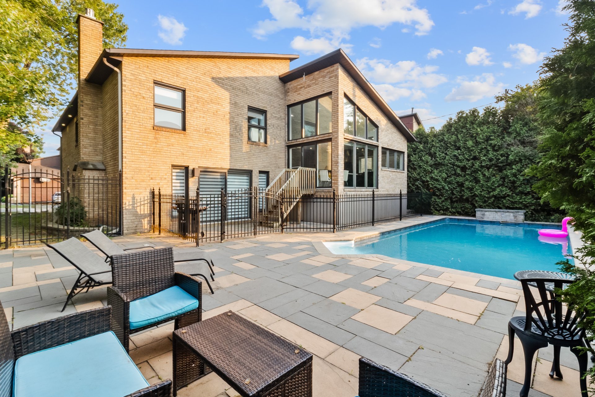 - 4+1 spacious bedrooms- Primary bedroom with ensuite bathroom- 2 full bathrooms + 1 powder room- Grand ceilings- Chef’s kitchen equipped with high-end appliances and a cozy eat-in corner- Bright living spaces with large windows and skylight- Family room with marble-covered gas fireplace- Large basement including an additional bedroom- Beautiful private backyard with a pool- Prestigious corner lot- 2 car garage plus driveway with space for 4 cars
