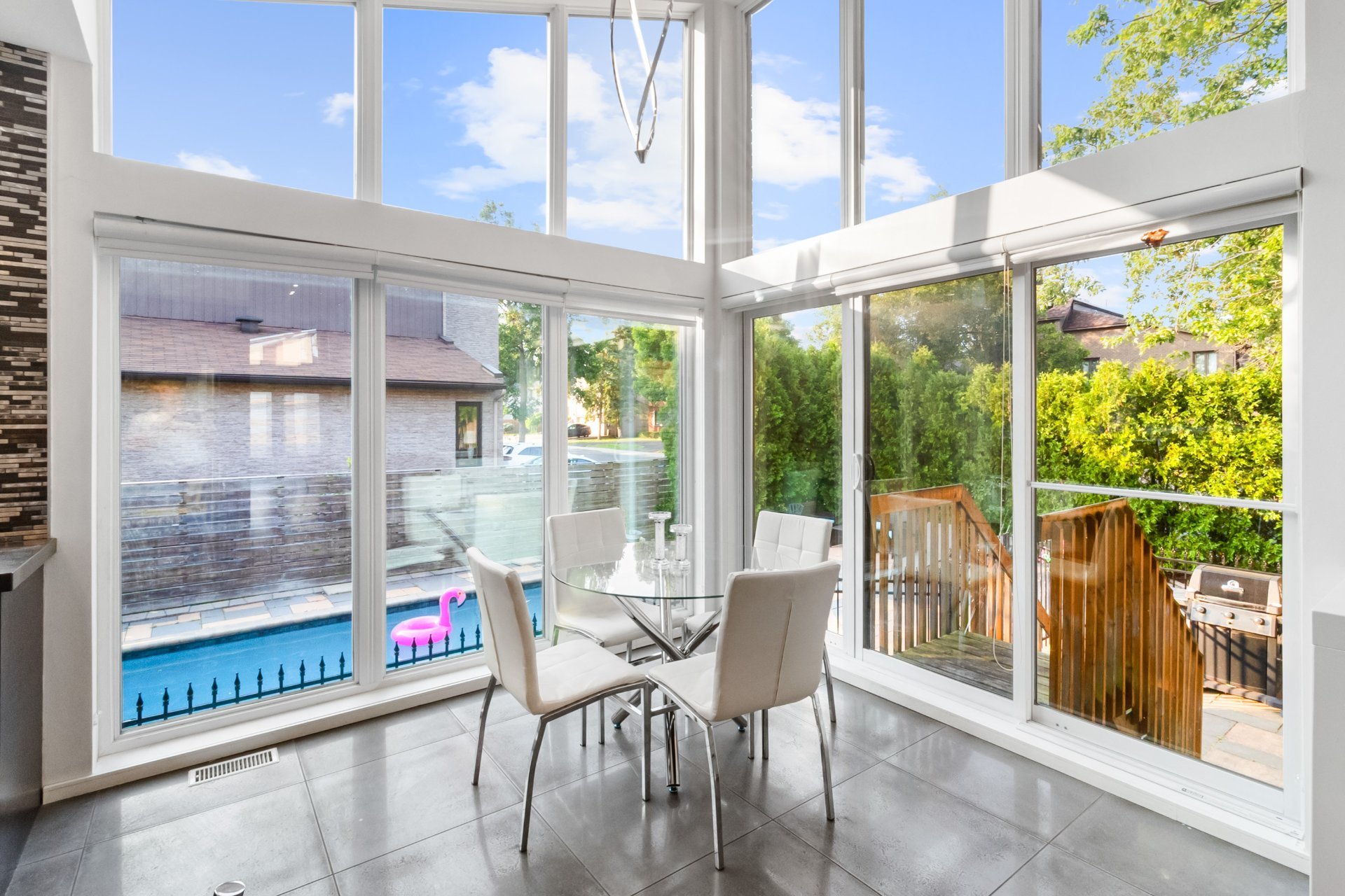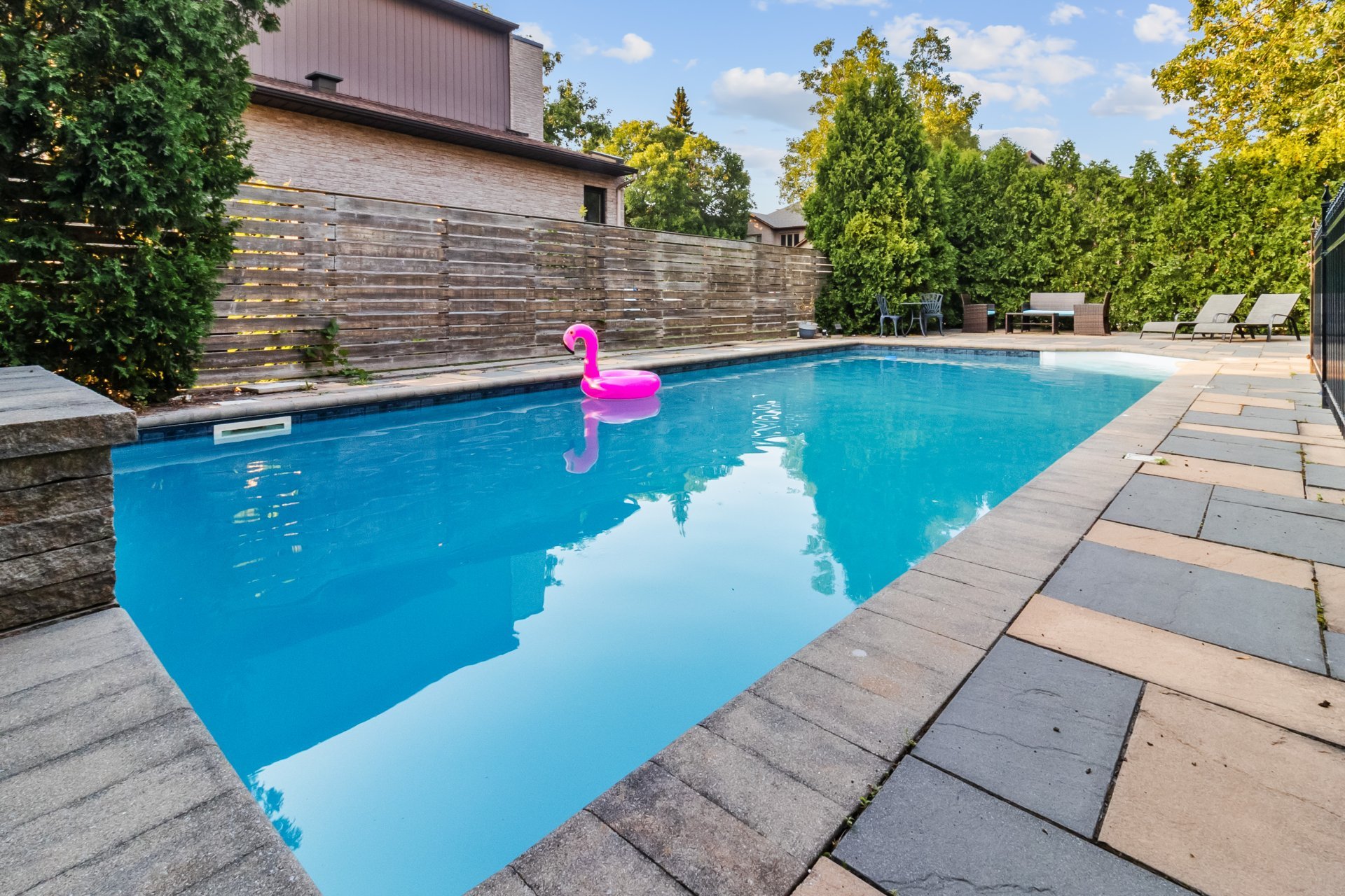Outside, your private oasis with a beautifully landscaped backyard and heated pool, perfect for summer gatherings or quiet family moments.