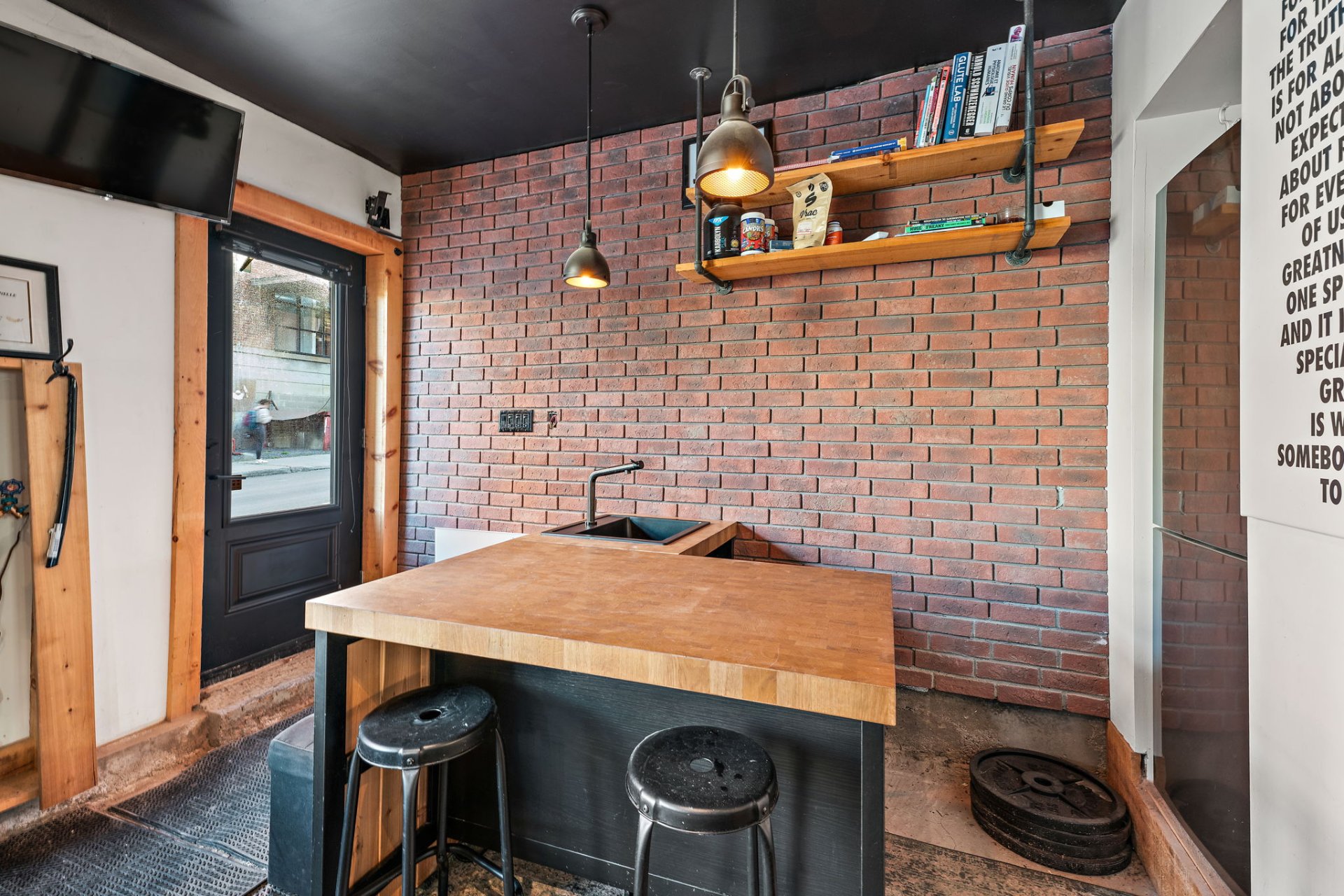 Unique semi-detached duplex zoned both commercial and residential use in a vibrant Montreal neighbourhood. The commercial unit, currently set up as a fully equipped gym, boasts spacious open areas, modern finishes, and excellent visibility. The residential unit features an airy open-concept design with one large bedroom, a bright living room, a functional kitchen, and a modern bathroom. Ideally located near downtown, public transit, shops, cafés, and parks, this property combines versatility with a prime location.