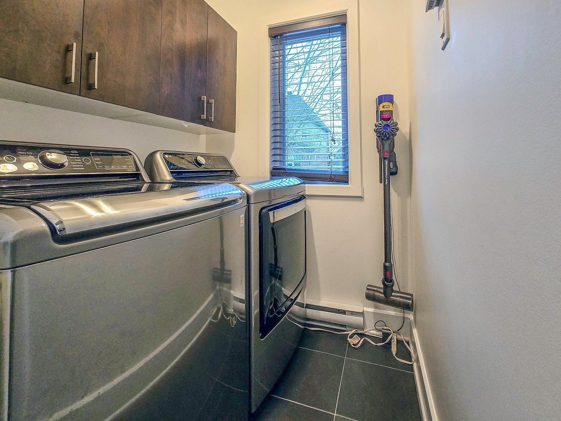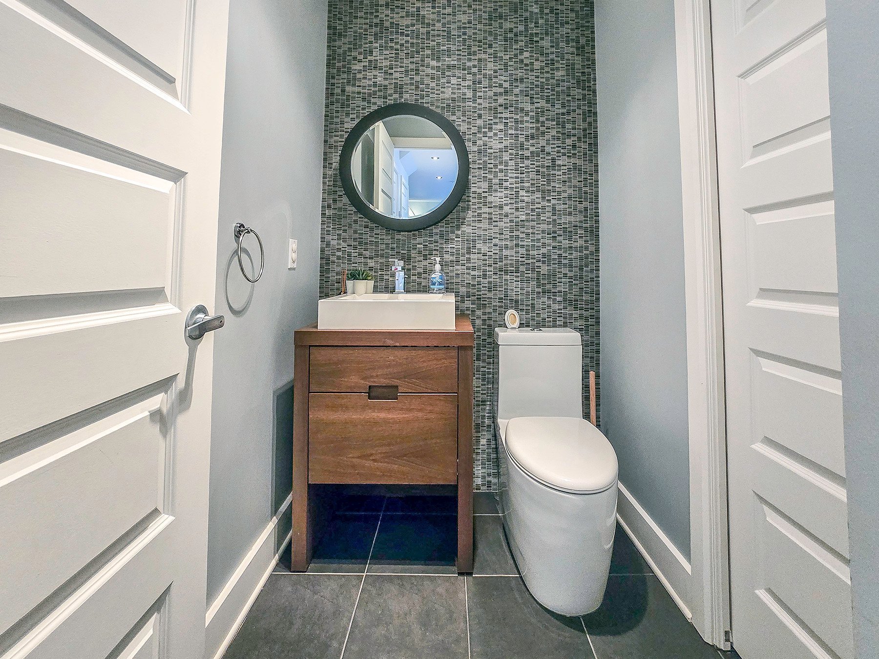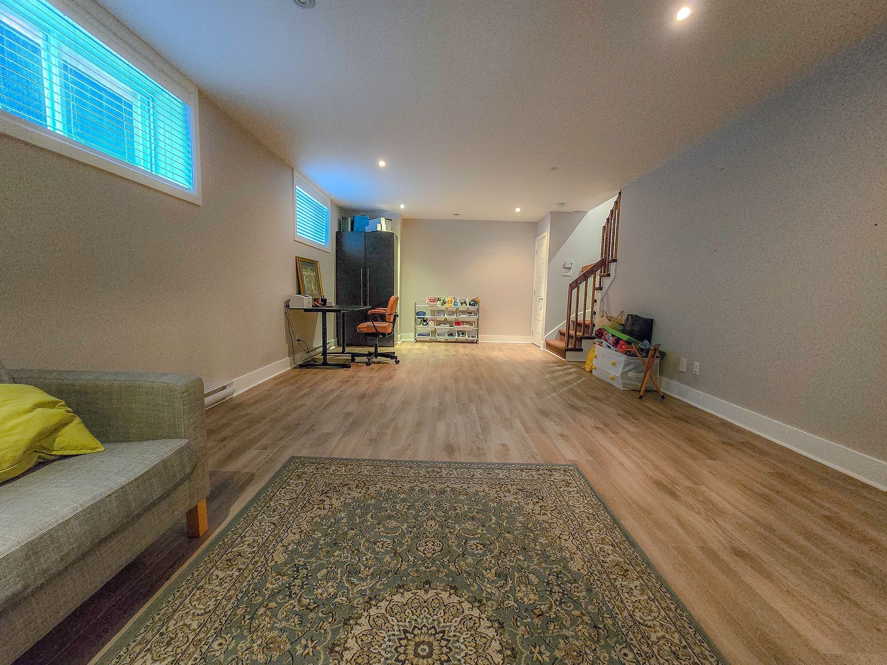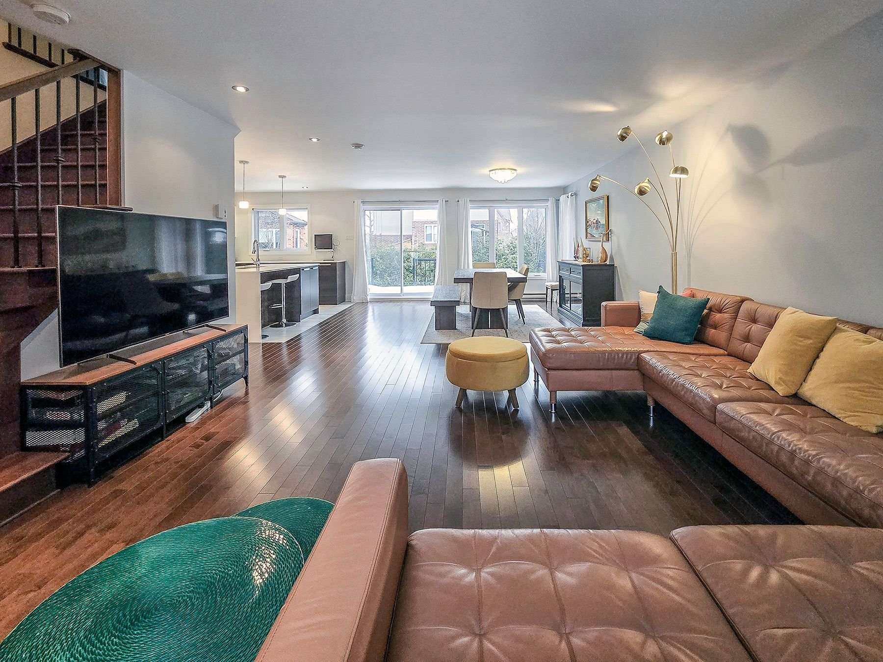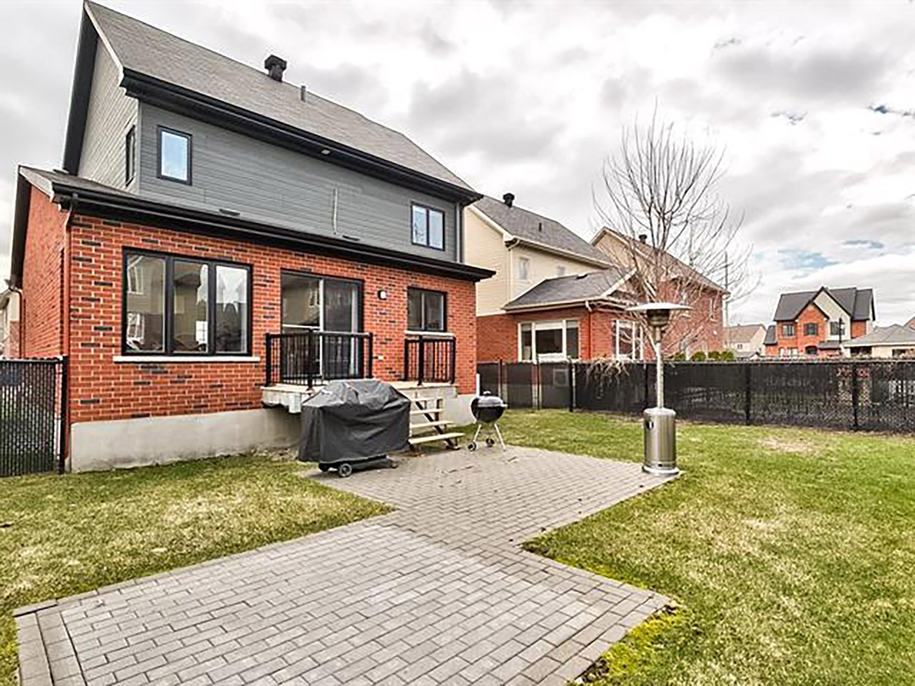 GROUND FLOOREntrance hall with ceramic tiles.Open concept living room to the dining room, wood floor.Bright dining room, access to the backyard through its patio door.Kitchen with Quartz counter, ceramic backsplash, large island with double undermount sink, anti-shock drawers.Powder room with decorative ceramic wall, and adjacent closed laundry room.