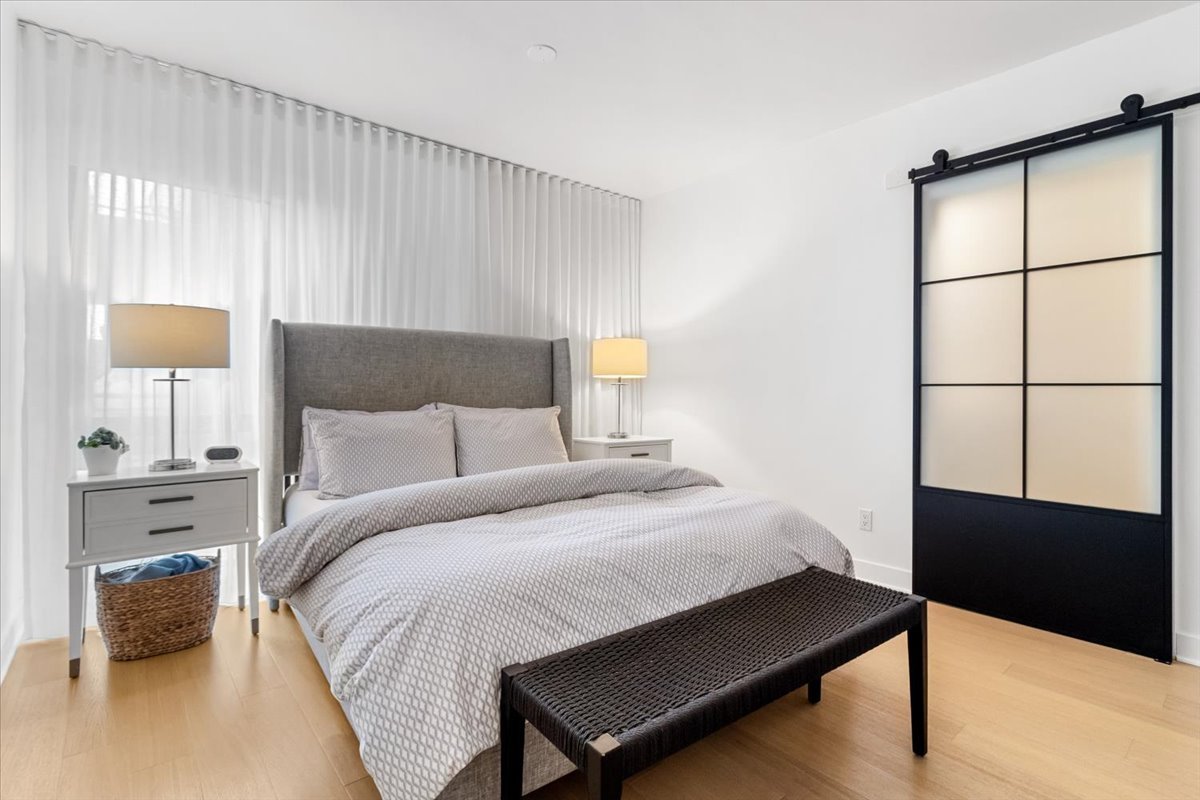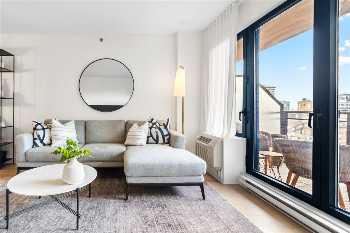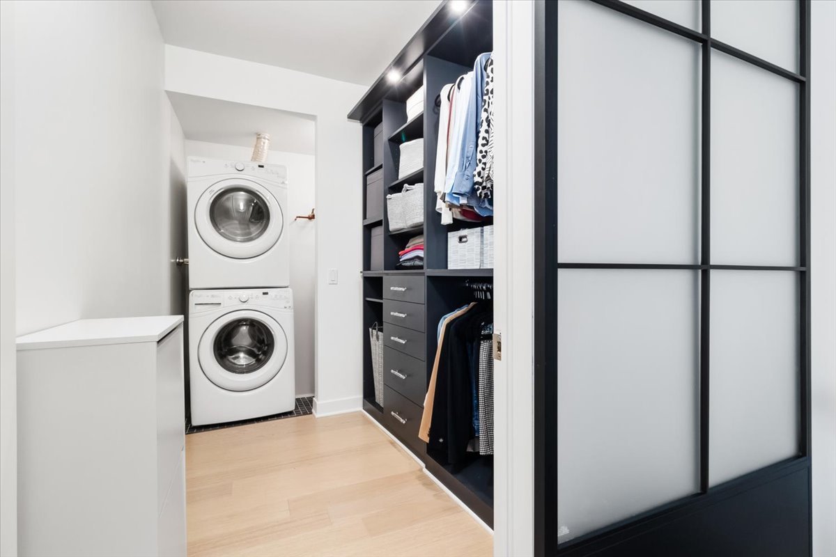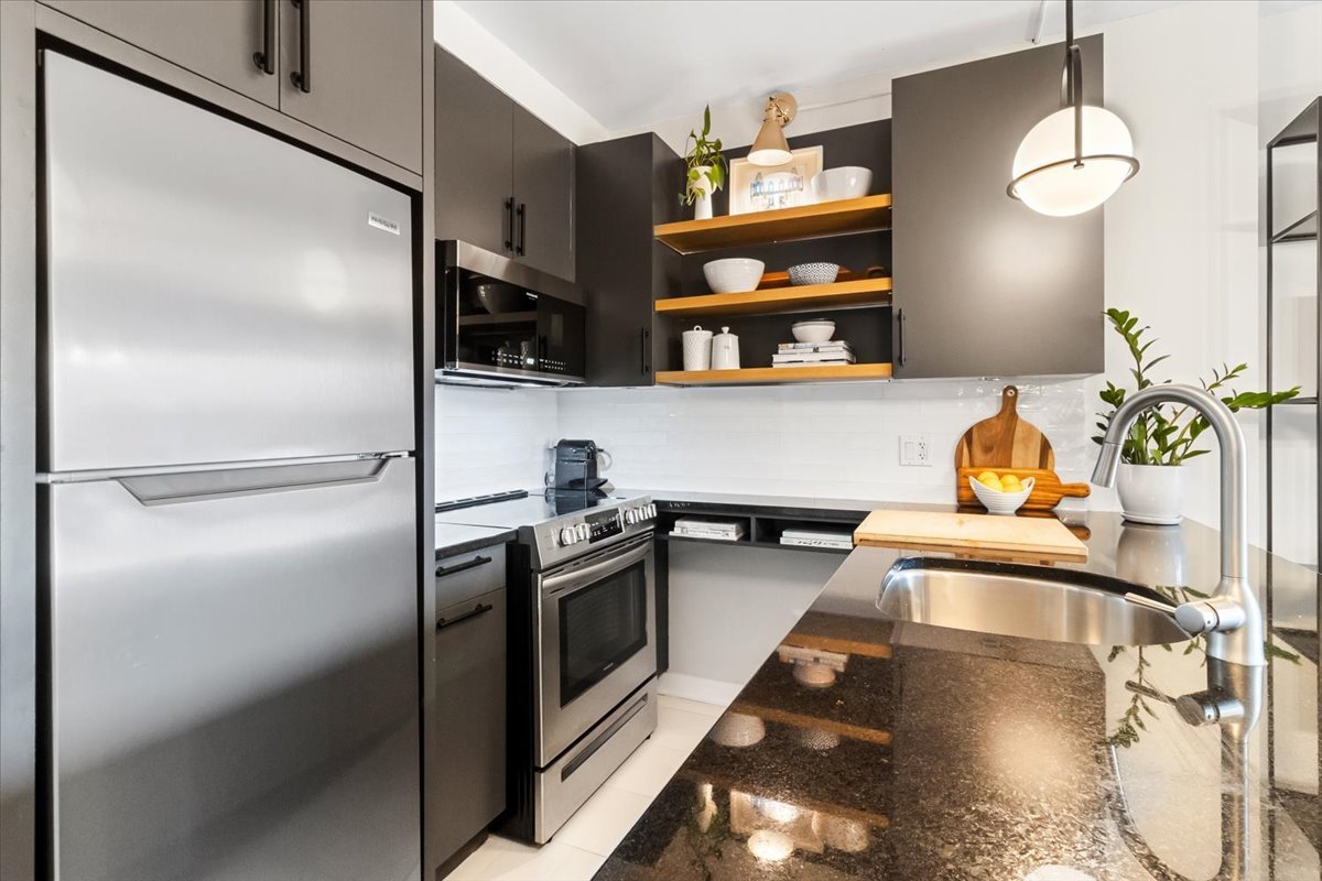 Beautiful and spacious 1-bedroom condo in the sought-after Lowney project! This bright, open-concept unit offers stunning city views, a functional kitchen with ample counter space, and seamless flow into the dining and living areas--all opening onto a balcony overlooking the peaceful inner courtyard. The generous bedroom includes space for a home office, a walk-in closet with in-unit laundry, and a renovated bathroom. The building features top-notch amenities including a gym, rooftop terrace with pool and spa, lounge areas with BBQs, and is just steps away from trendy restaurants, shops, and much more!