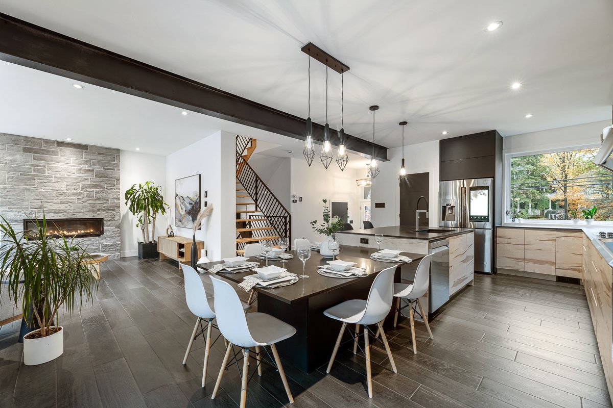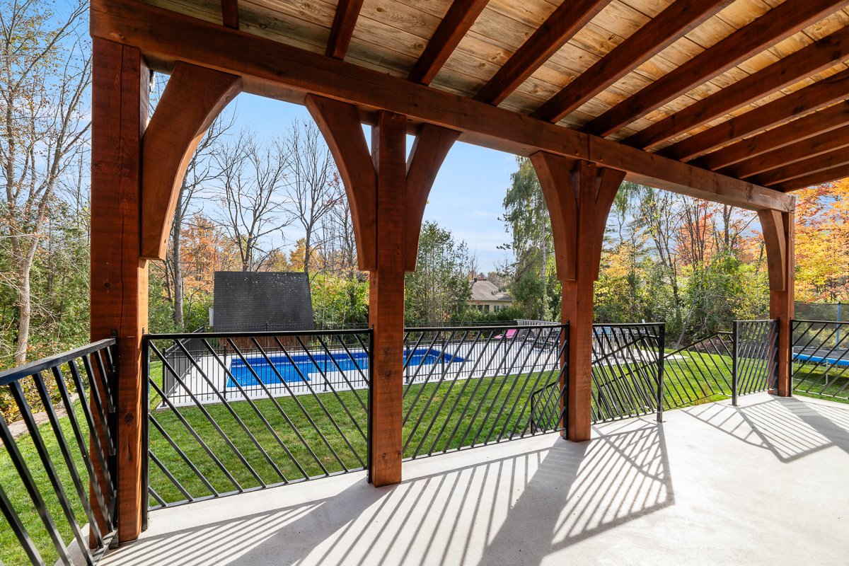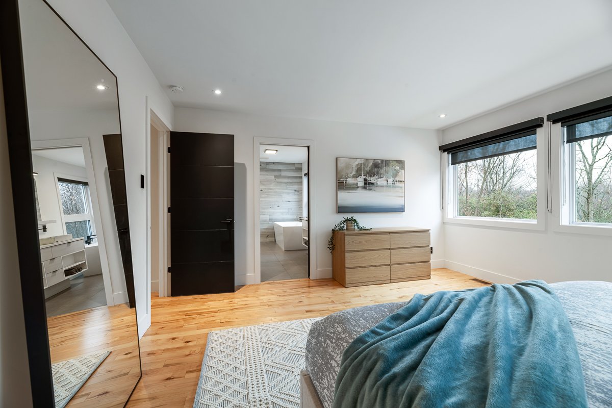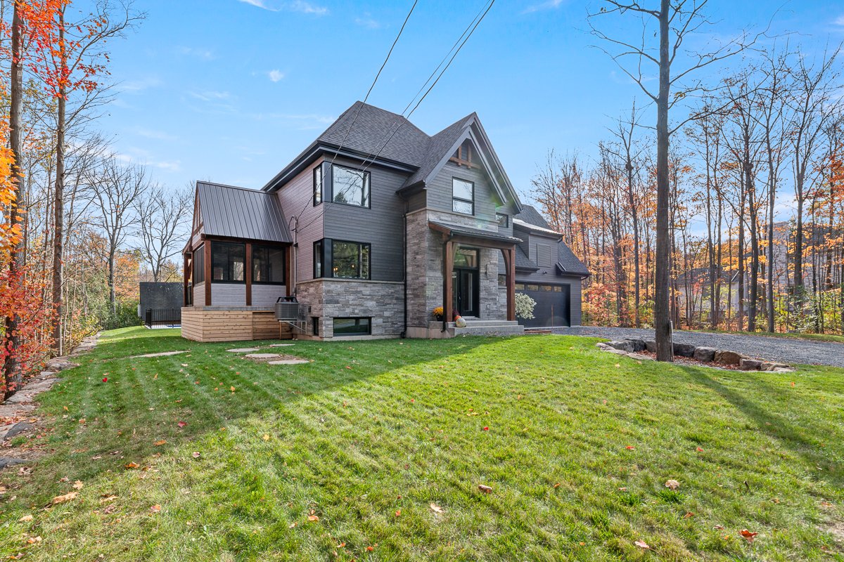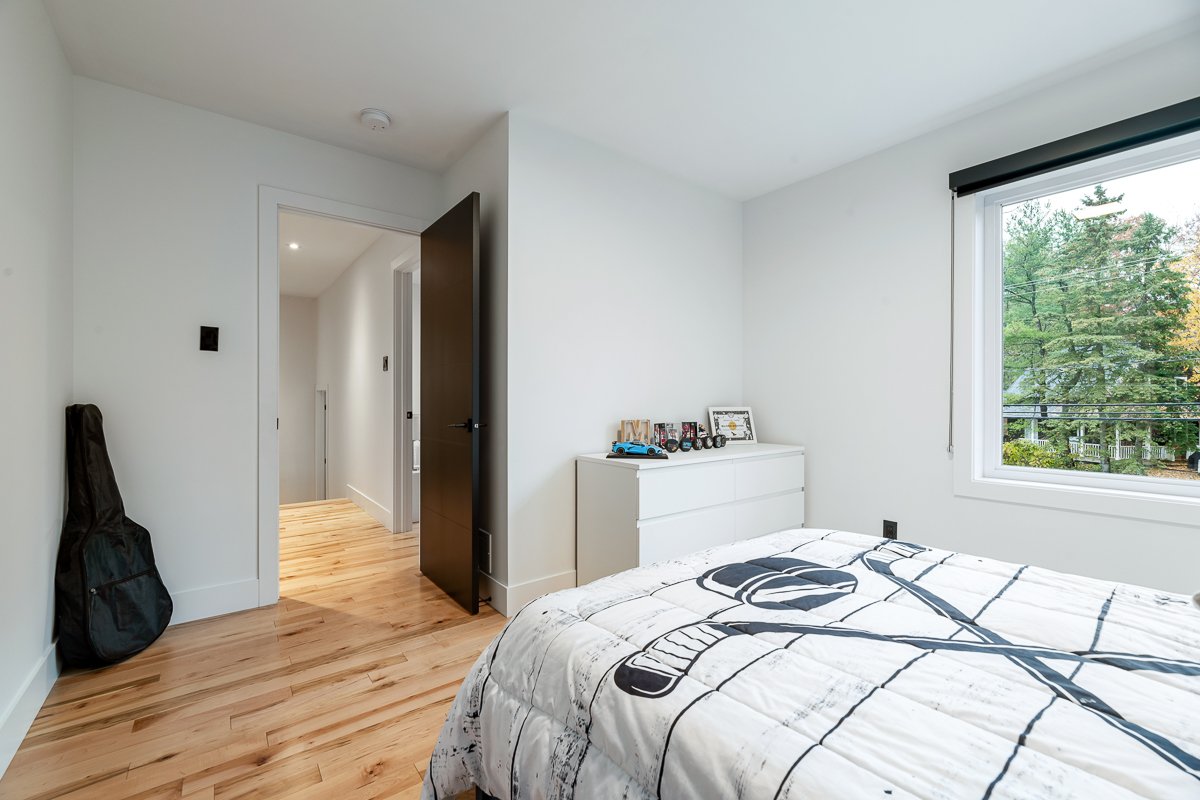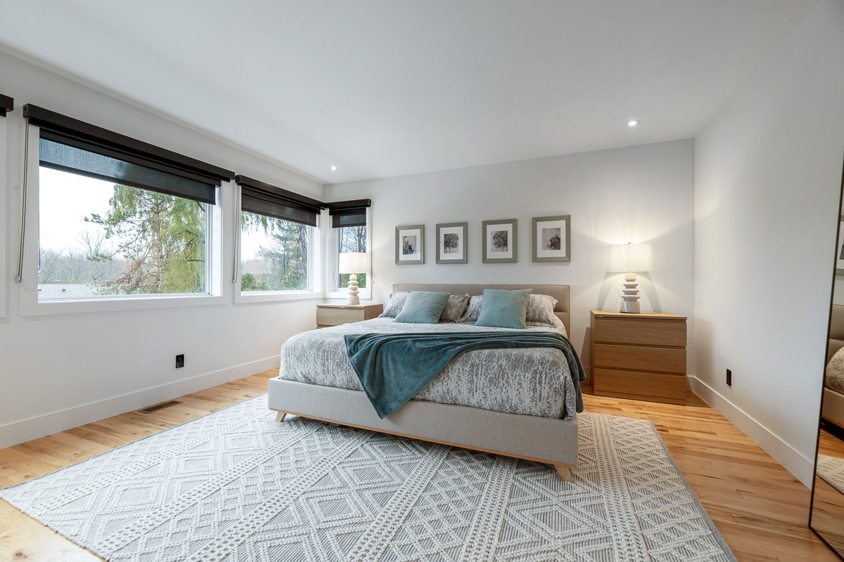 This elegant 2019 custom-built home offers refined design and comfort. The main level is ideal for entertaining or family living, featuring an oversized island, propane fireplace, heated floors, and an adjoining three-season sunroom. The second floor offers three bedrooms and two full bathrooms. The spacious primary suite includes a custom walk-in closet and a luxurious ensuite with heated floors and a soaker tub. The bright finished basement adds a fourth bedroom, full bathroom, and family room with heated floors throughout. The landscaped yard includes a heated, fenced saltwater pool. A large attached two-car garage completes this home.