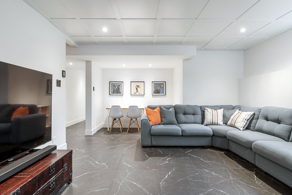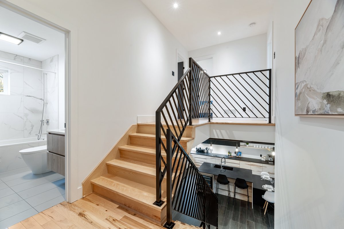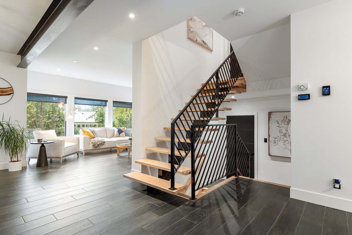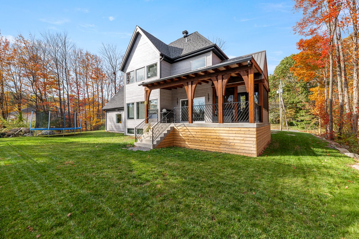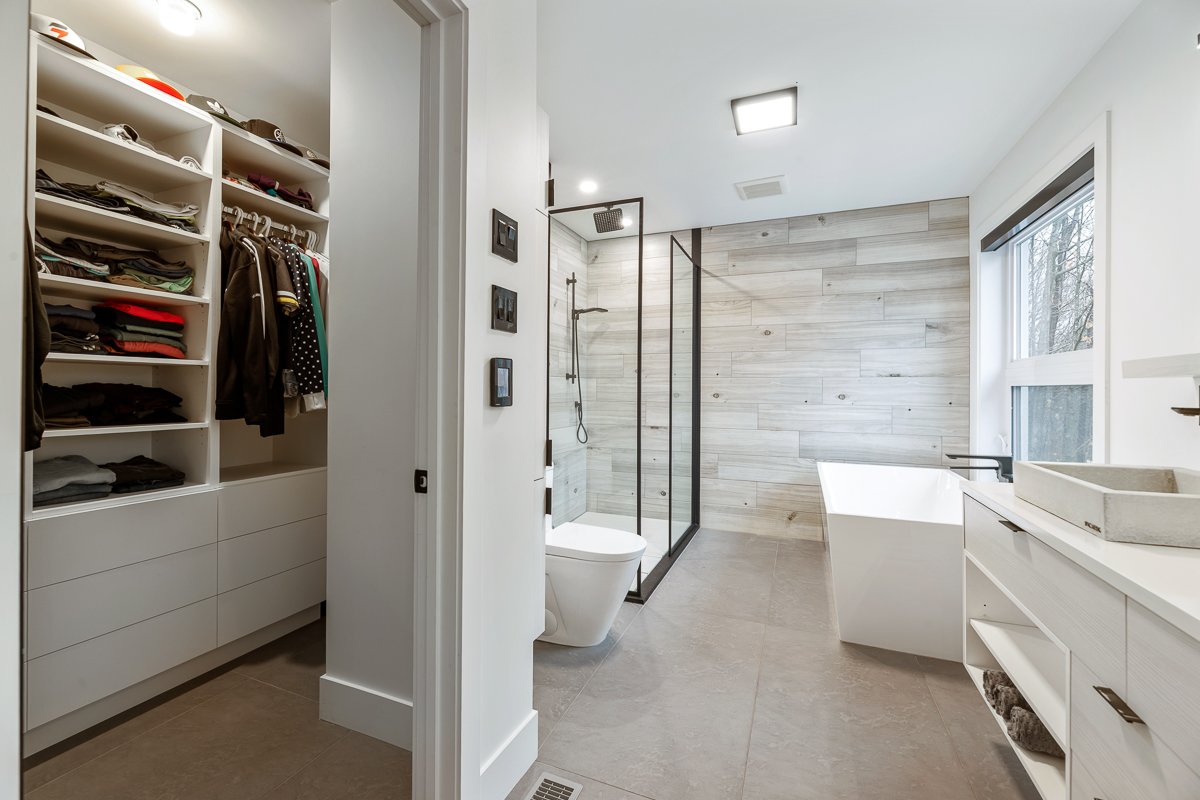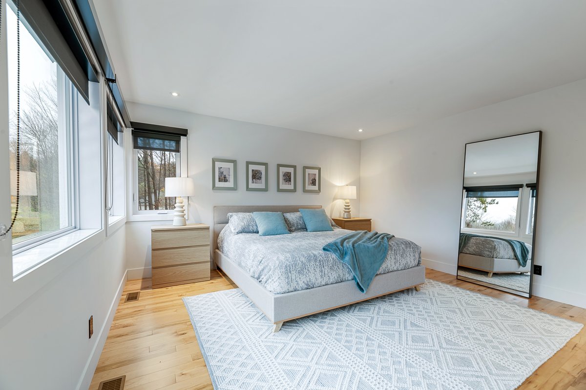 This elegant 2019 custom-built home offers refined design and comfort. The main level is ideal for entertaining or family living, featuring an oversized island, propane fireplace, heated floors, and an adjoining three-season sunroom. The second floor offers three bedrooms and two full bathrooms. The spacious primary suite includes a custom walk-in closet and a luxurious ensuite with heated floors and a soaker tub. The bright finished basement adds a fourth bedroom, full bathroom, and family room with heated floors throughout. The landscaped yard includes a heated, fenced saltwater pool. A large attached two-car garage completes this home.