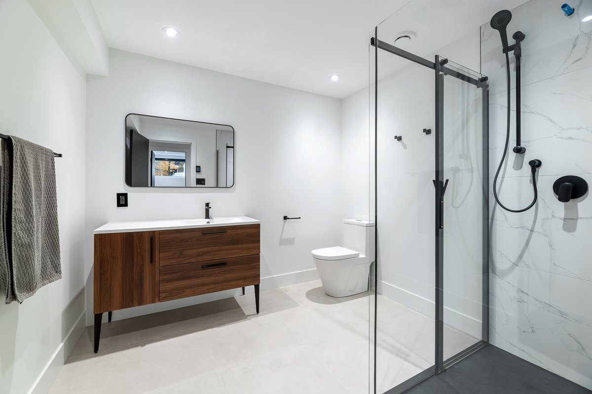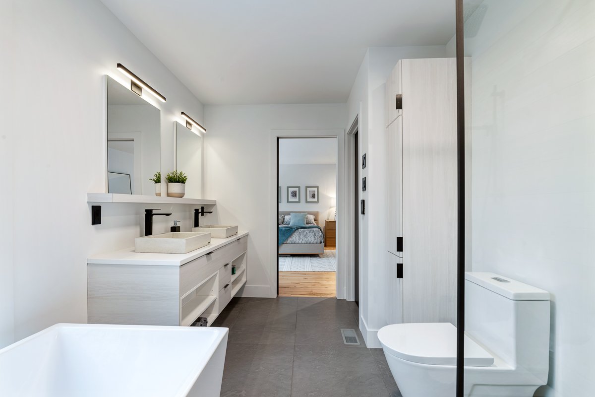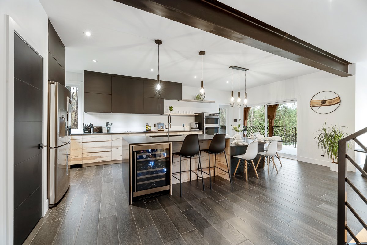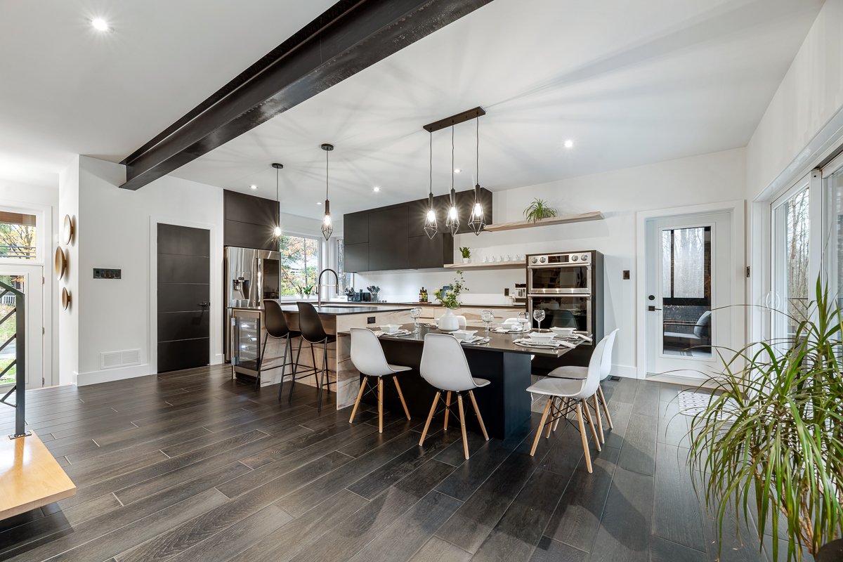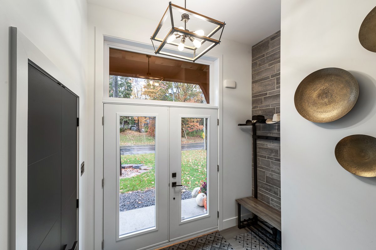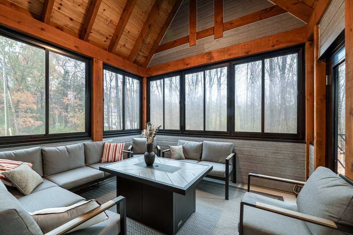 This elegant 2019 custom-built home offers refined design and comfort. The main level is ideal for entertaining or family living, featuring an oversized island, propane fireplace, heated floors, and an adjoining three-season sunroom. The second floor offers three bedrooms and two full bathrooms. The spacious primary suite includes a custom walk-in closet and a luxurious ensuite with heated floors and a soaker tub. The bright finished basement adds a fourth bedroom, full bathroom, and family room with heated floors throughout. The landscaped yard includes a heated, fenced saltwater pool. A large attached two-car garage completes this home.