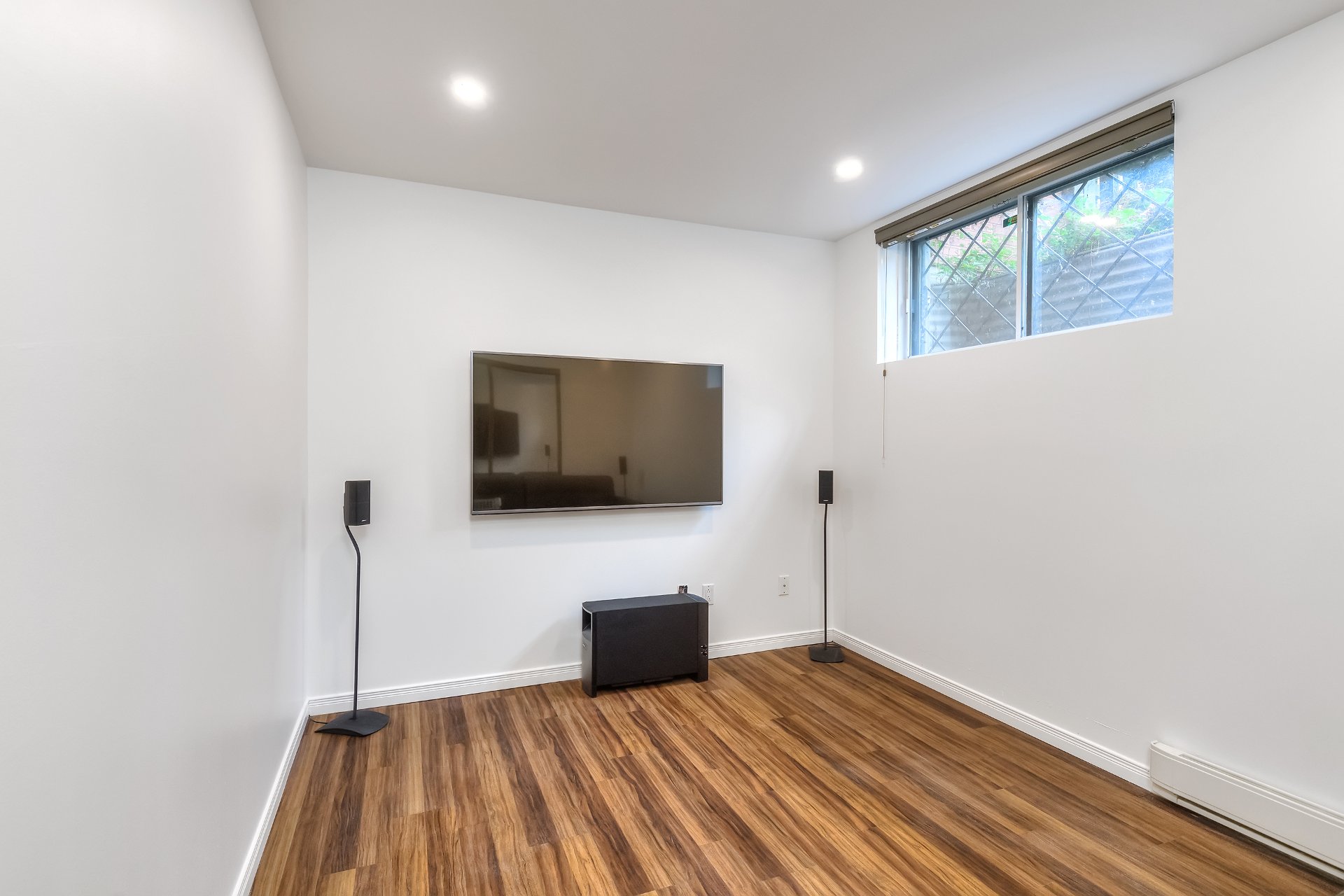 Fridge, stove, dishwasher, washer/dryer, storage closet on third floor, in-ceiling speakers in the basement room, EV charger in the garage.
