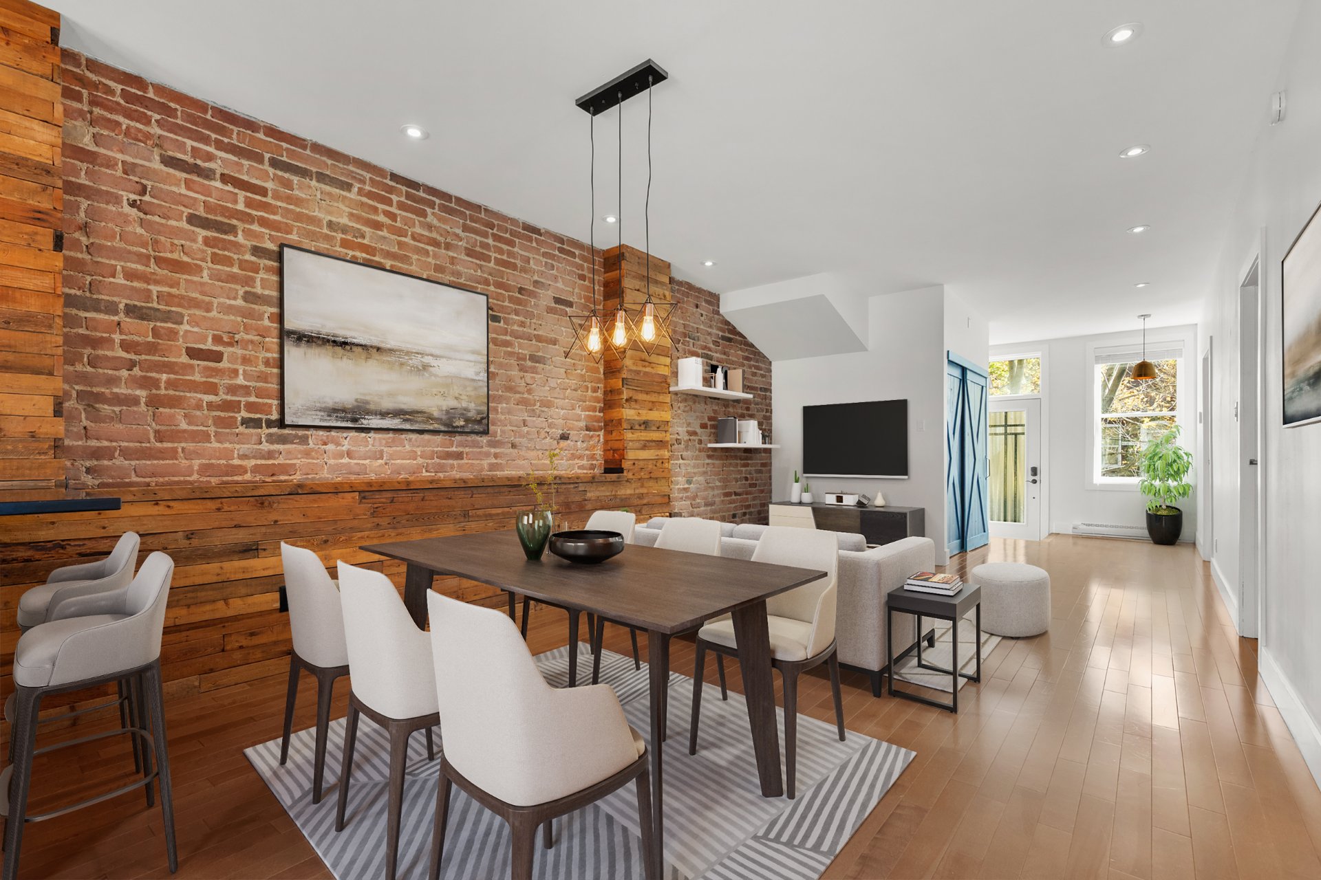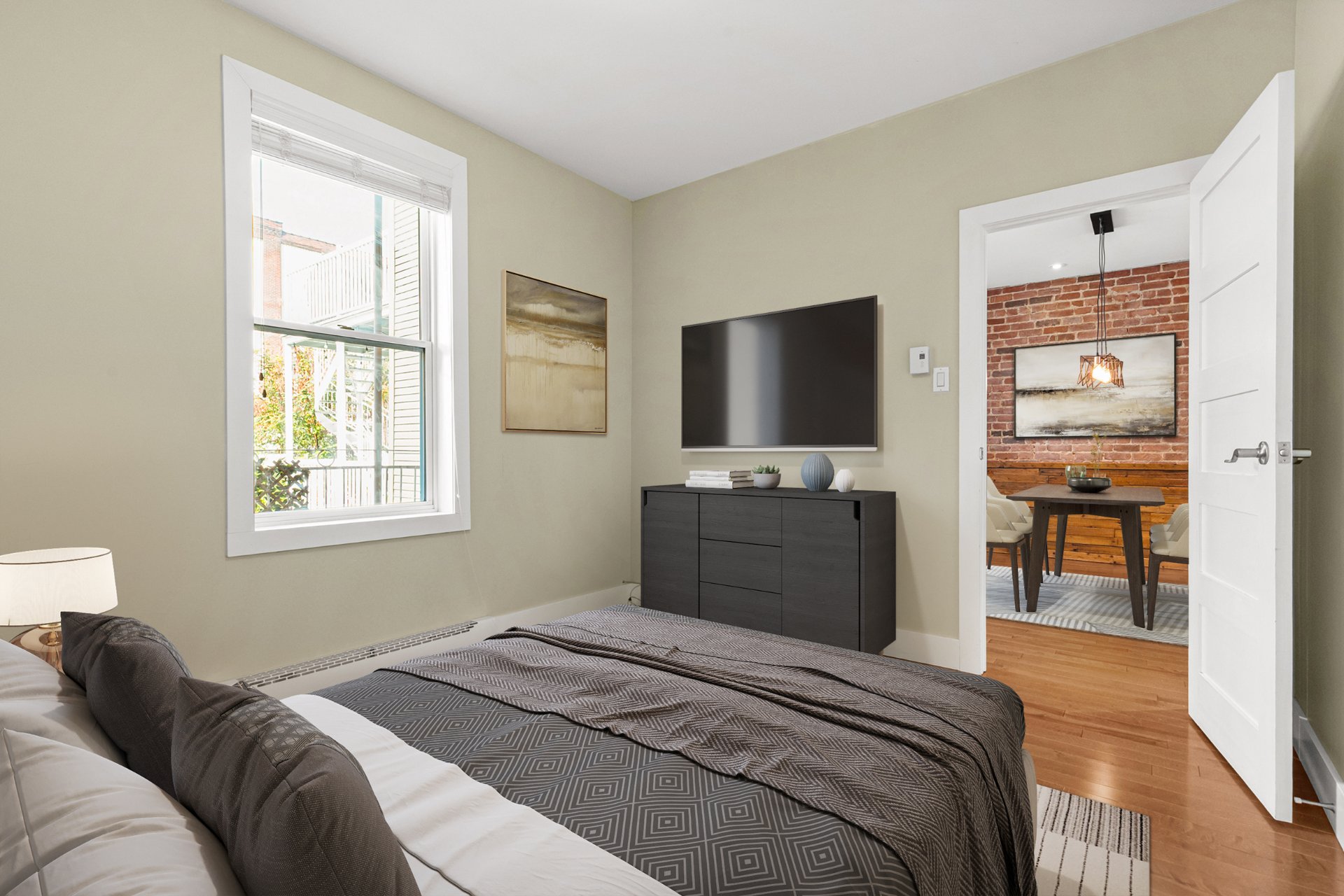 Enjoy a bright, updated condo in a well-managed and maintained building in the desirable Saint-Henri neighborhood. The open living and dining area is full of charm with exposed brick and warm wood accents, overlooking a spacious kitchen with ample storage and access to a private balcony plus a second private terrace. This unit features two large bedrooms, including a primary with built-in cabinets, a spacious bathroom with a separate shower and laundry, a large entry closet, outdoor parking, and much more! Ideally located near some of Montreal’s best restaurants, beautiful parks, public transit, and all that Saint-Henri has to offer!