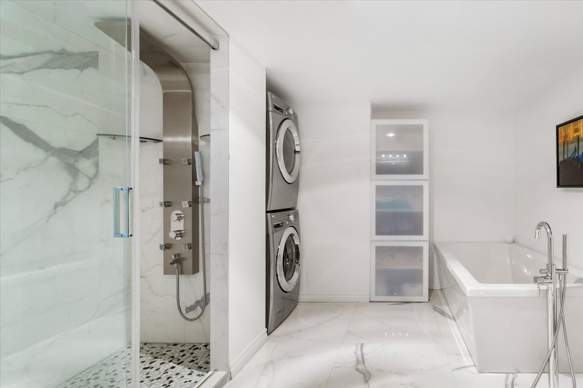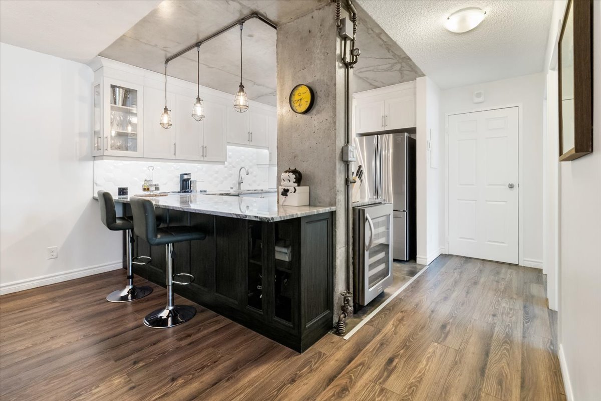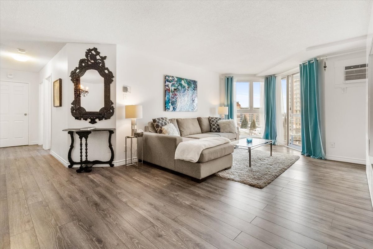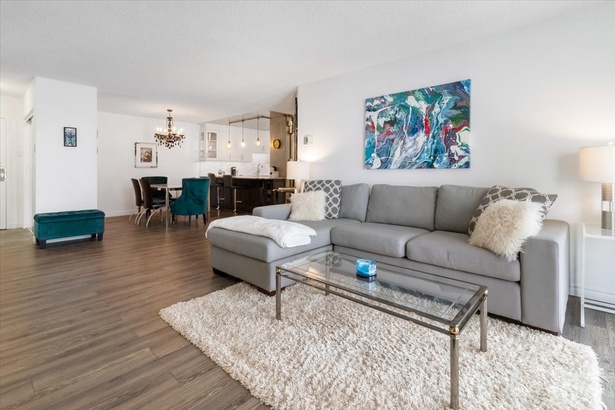 Completely renovated top-floor condo ideally located in Brossard, in a well-maintained building with excellent amenities. Enjoy a balcony with beautiful water views and a bright, open living area flowing into the dining room and a recently renovated kitchen with custom cabinetry, ample storage and heated floors. Features a spacious primary bedroom with large closet, a good-size second bedroom, and a large bathroom with separate shower and soaker tub. Includes an oversized garage space on the main level, a locker, and enjoy an outdoor pool, tennis court, and more!
