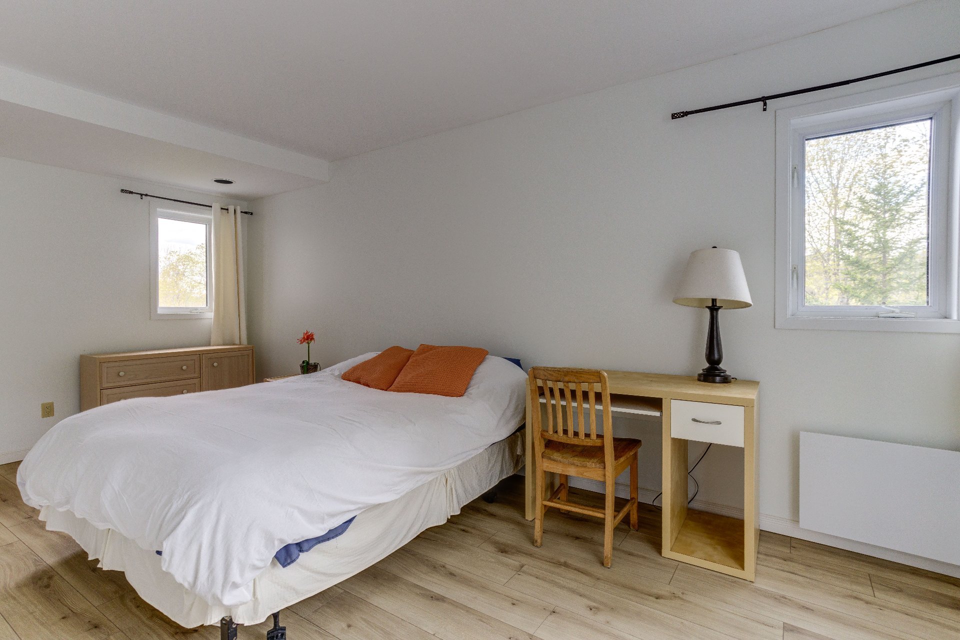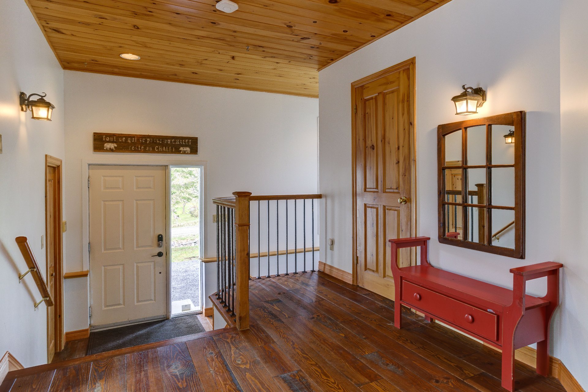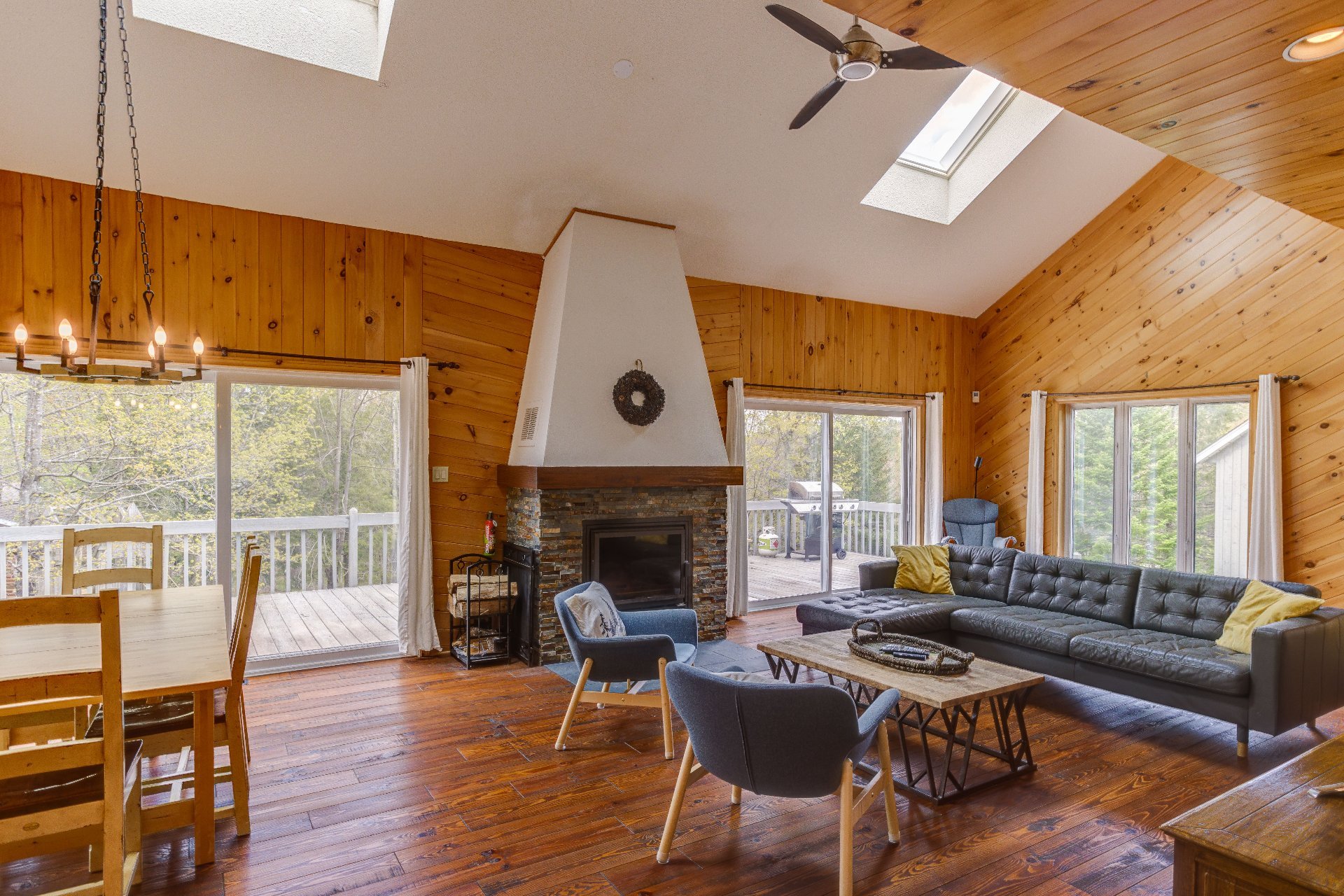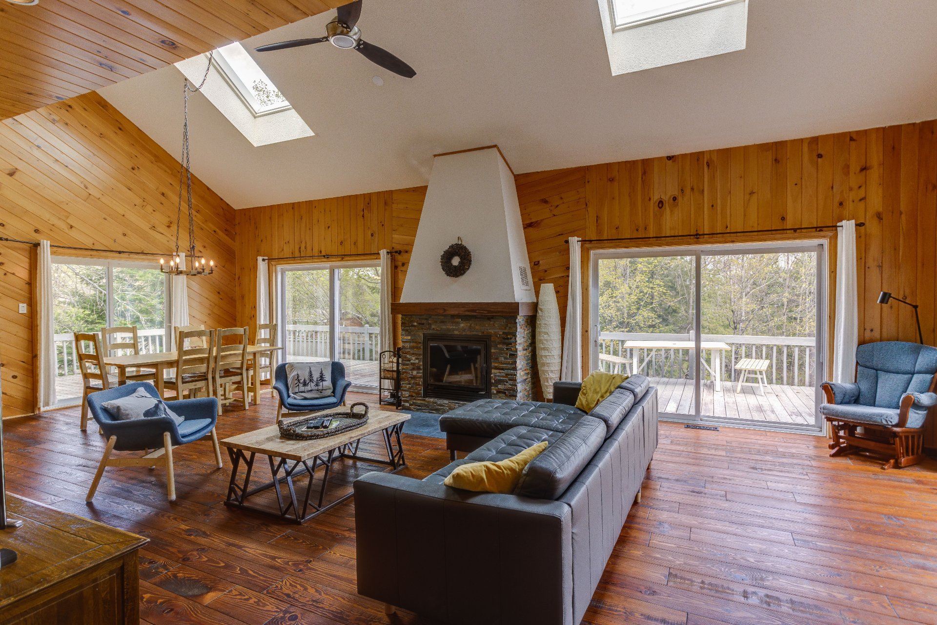 Spacious and inviting home in Eastman with access to Lac Stukely! This bright, welcoming residence features a generous living room with a wood-burning fireplace and soaring cathedral ceilings. Offering 3 bedrooms and 3 bathrooms, plus a finished basement. Home is perfect for hosting friends and family. Enjoy two big balconies ideal for relaxing or entertaining. Nestled on a private 30,000 sq. ft. lot with notarized access to Lac Stukely, and just minutes from Parc national du Mont-Orford.