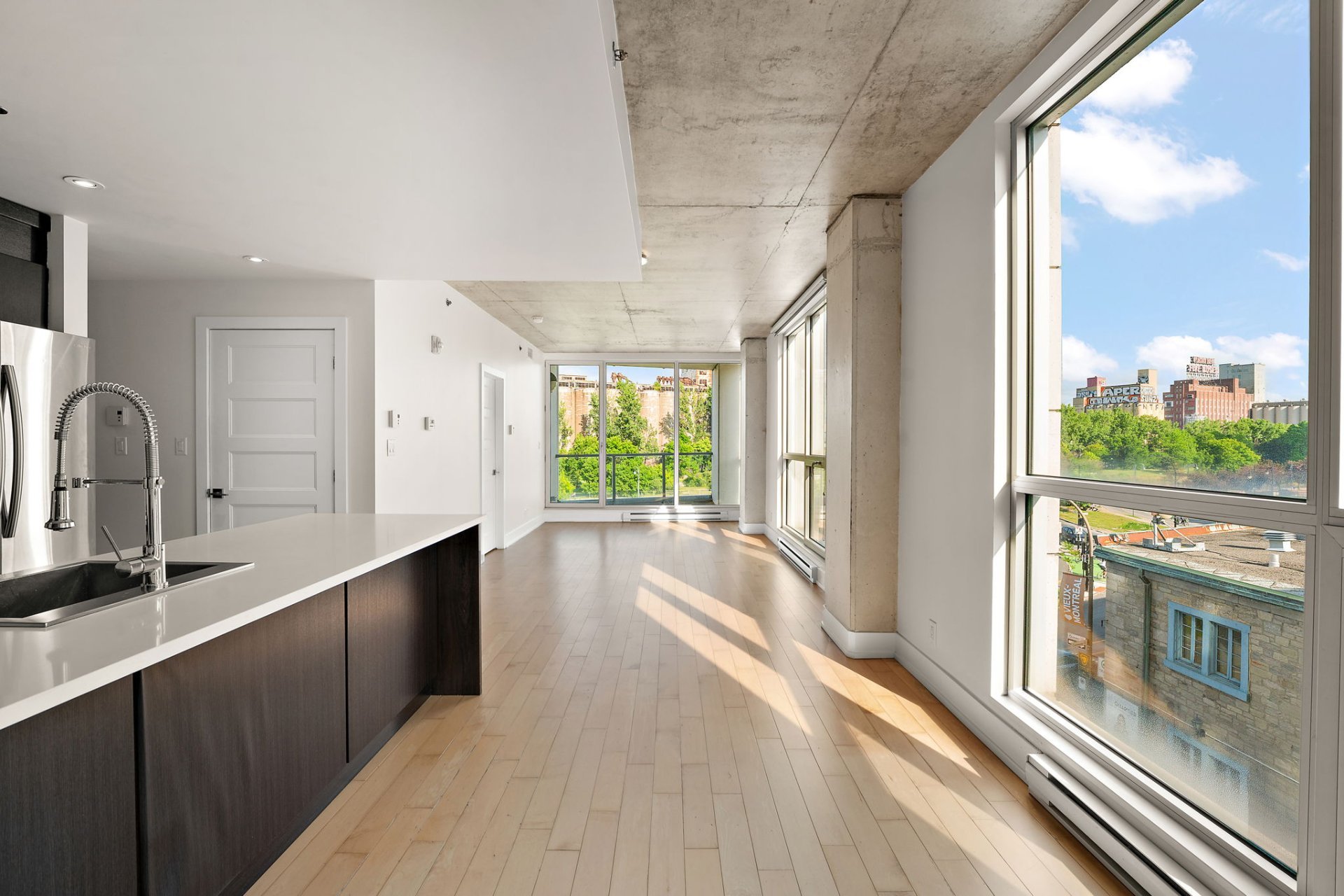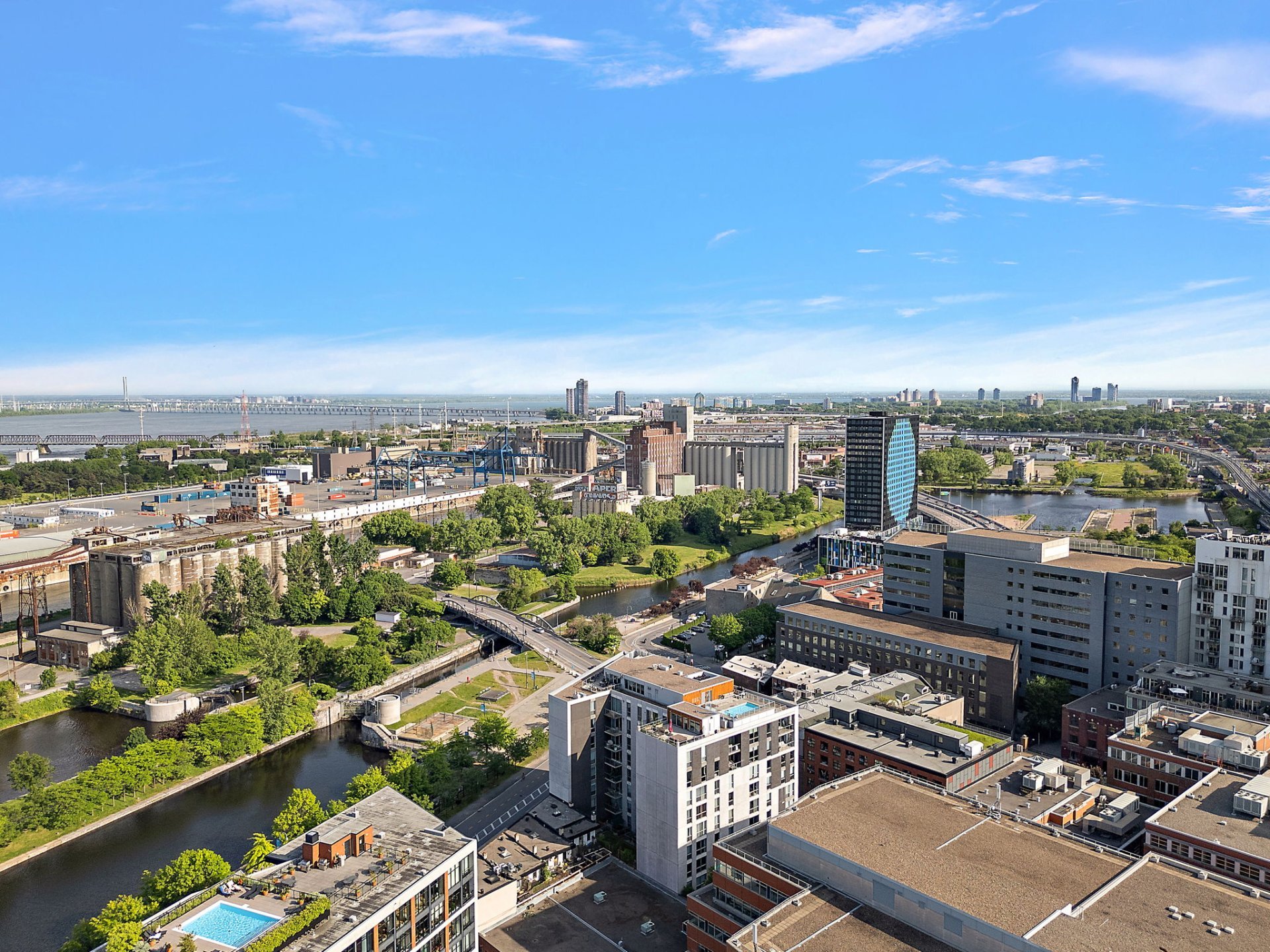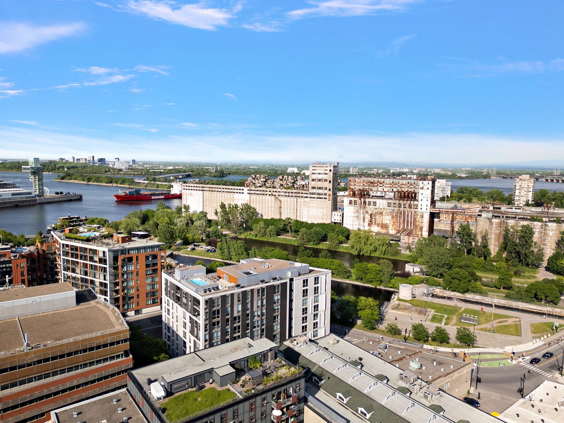 Sunny corner unit at 711 Rue de la Commune O.! Spacious 2-bed, 1-bath canal-side living with stunning St. Lawrence River views . Bright open layout, freshly painted with newly varnished floors, quartz kitchen, stainless appliances, large windows, terrace, and storage locker. Luxury living in a prime Old Port location--steps from restaurants, Griffintown, downtown nightlife & major highways. Rooftop terrace, pool, gym, sauna & urban chalet--Montreal living at its best! Inclusion: storage unit. ***OPTION TO PURCHASE A PARKING SPACE FOR 65,000$***