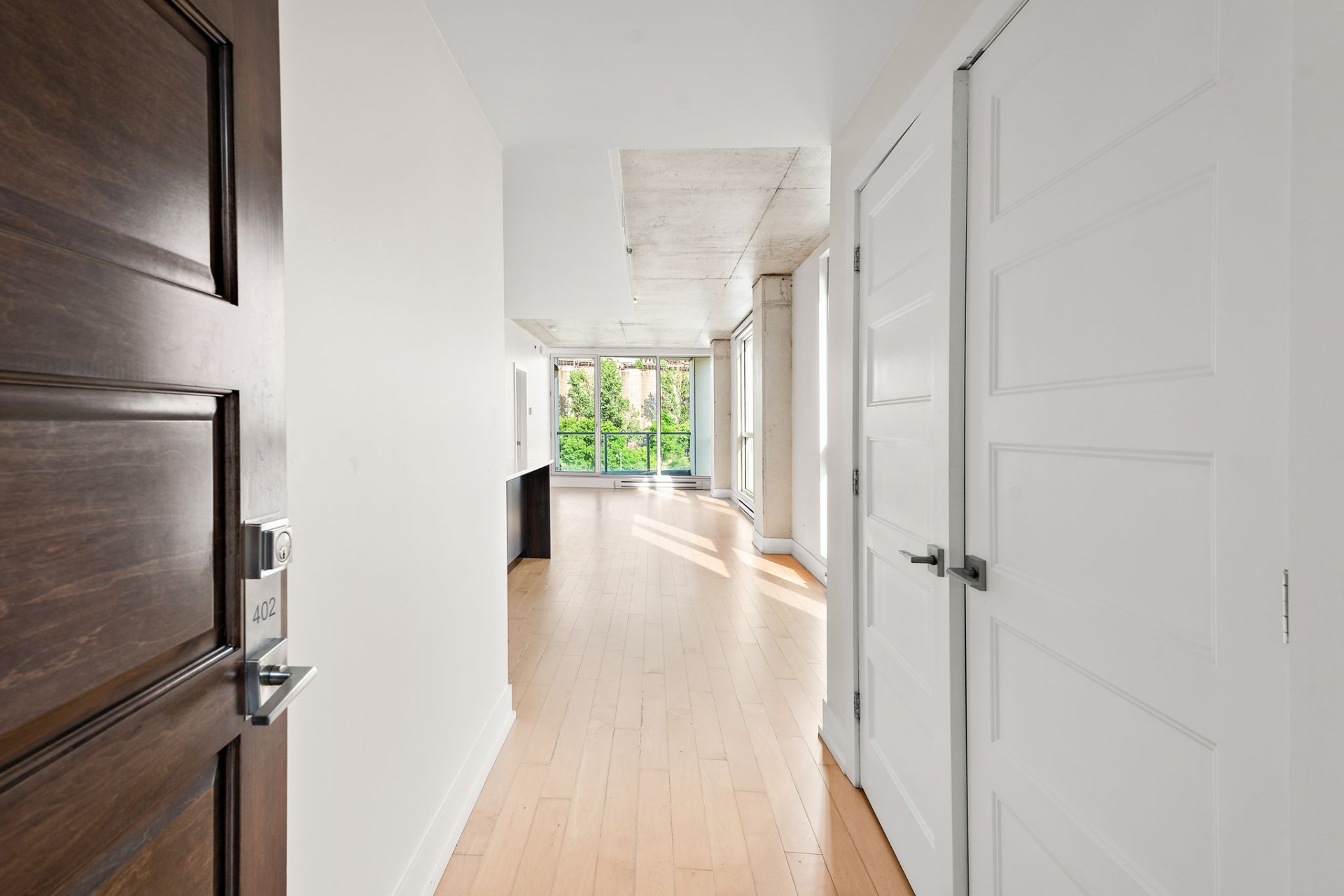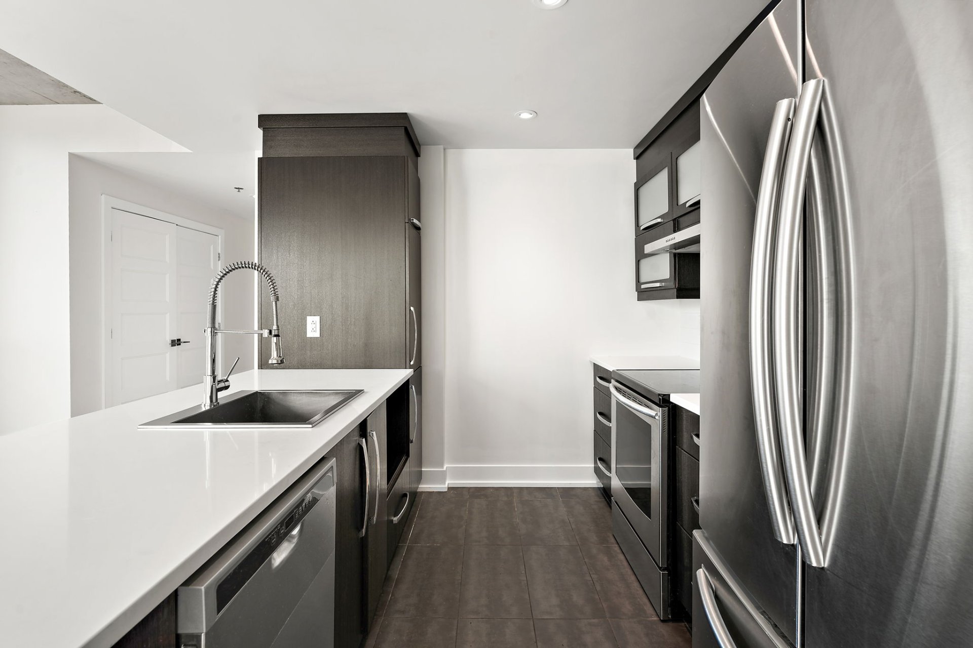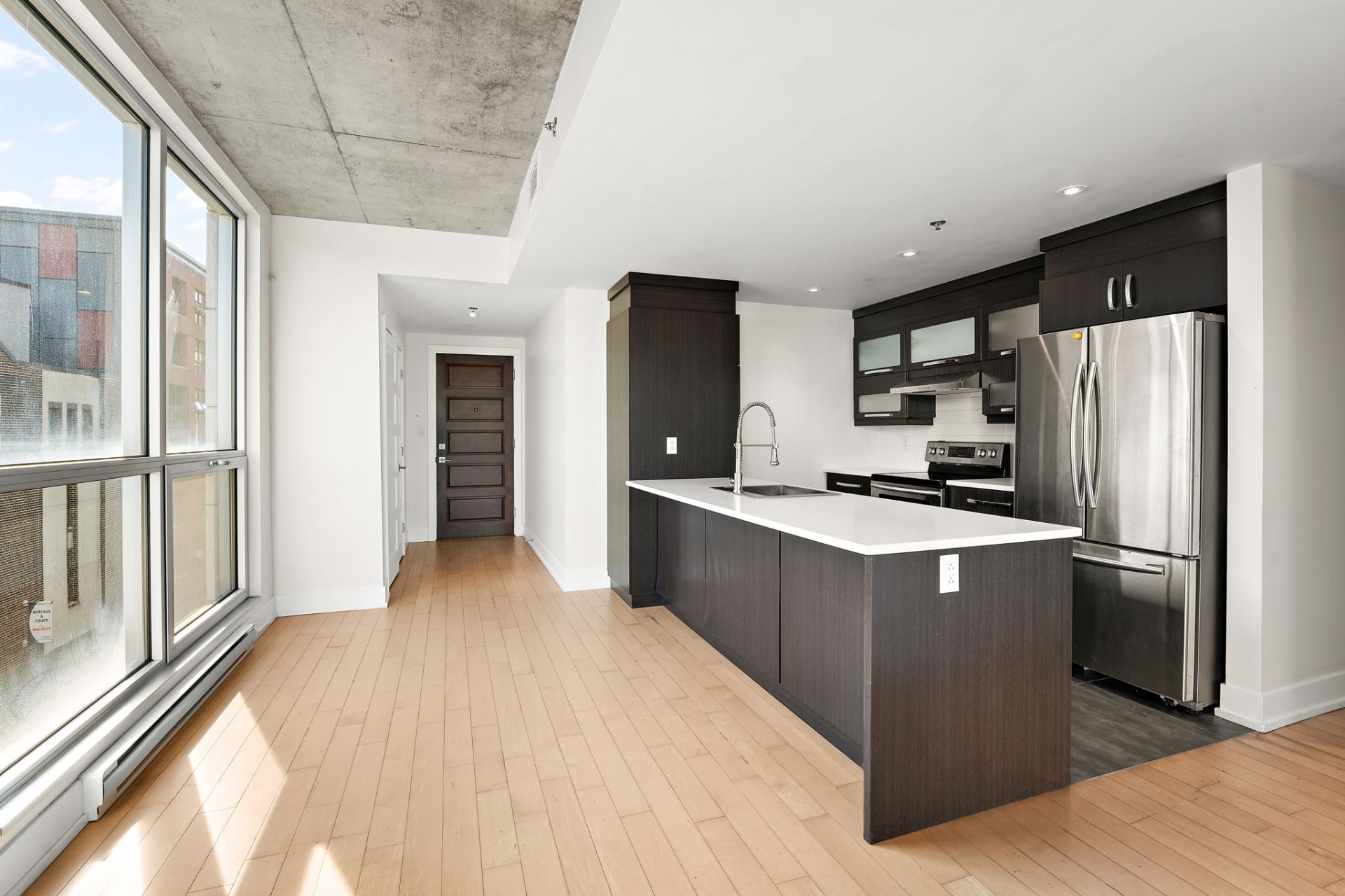 Sunny corner unit at 711 Rue de la Commune O.! Spacious 2-bed, 1-bath canal-side living with stunning St. Lawrence River views . Bright open layout, freshly painted with newly varnished floors, quartz kitchen, stainless appliances, large windows, terrace, and storage locker. Luxury living in a prime Old Port location--steps from restaurants, Griffintown, downtown nightlife & major highways. Rooftop terrace, pool, gym, sauna & urban chalet--Montreal living at its best! Inclusion: storage unit. ***OPTION TO PURCHASE A PARKING SPACE FOR 65,000$***