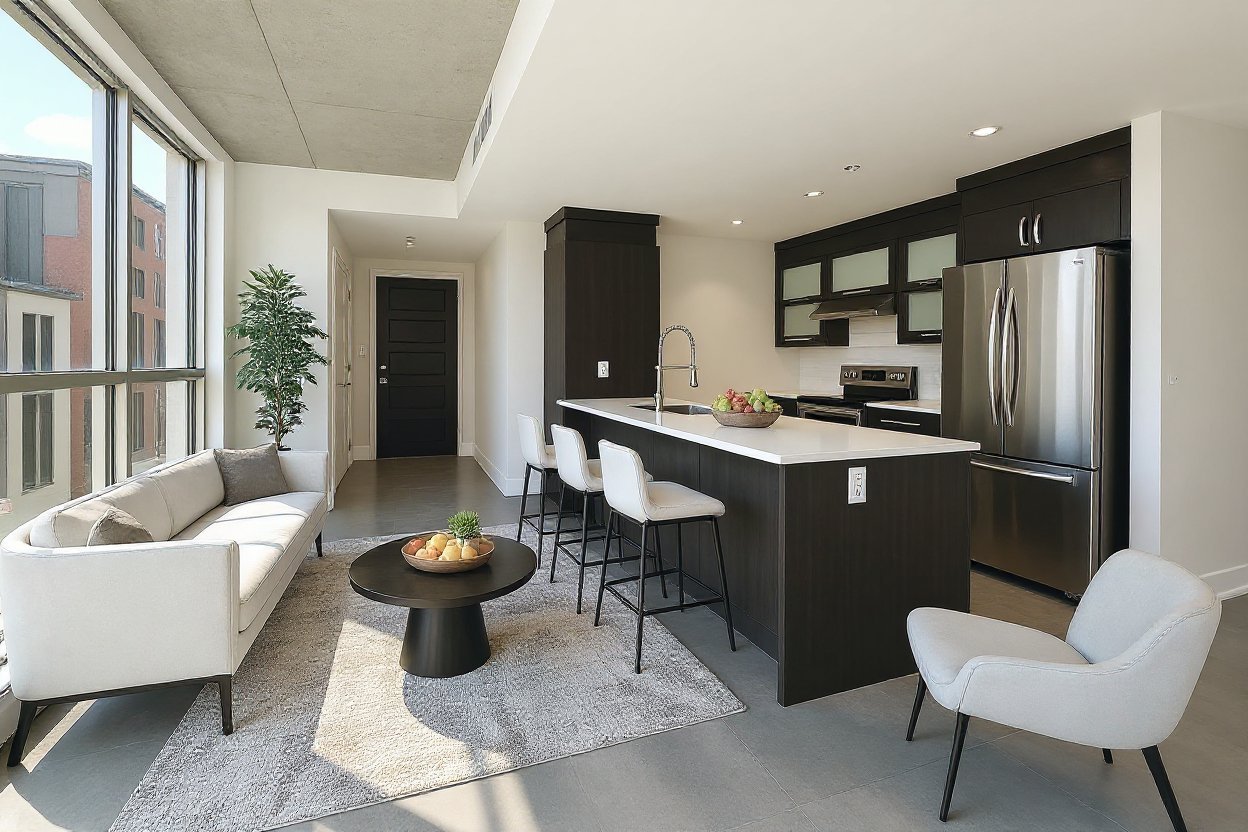 CONDO PROJECT -- THE SILHOUETTELocated in the heart of Montreal’s Old Port, Le Silhouette is a concrete building featuring 88 upscale condos over 9 floors.Situated directly across from the river and Lachine Canal on the corner of De la Commune West and Queen, it’s within walking distance of McGill Street, Square Victoria metro, and all Old Port amenities.Features:8 to 9-foot windows providing ample natural light5 included appliancesThermoplastic kitchen cabinets with color choicesHeated outdoor pool, spa, sauna, gym, and rooftop lounge reception roomKitchen and bathroom countertops made of granite or quartz (1 1/4 inch thickness)Lockers for each condoHigh-end finishes throughout