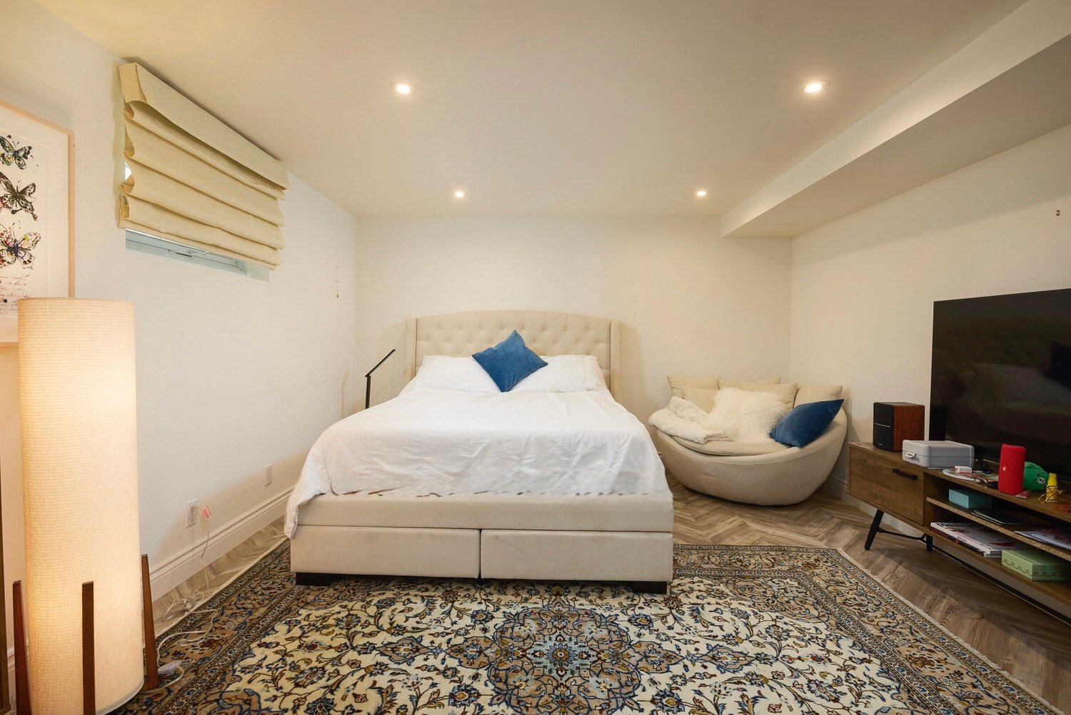 Lower Floor* Finished basement offering a versatile extension of the living space* Large multi-media family room* Two bedrooms suitable for guests, office, flexible use* Full bathroom, laundry room, built-in storage, and cedar closet