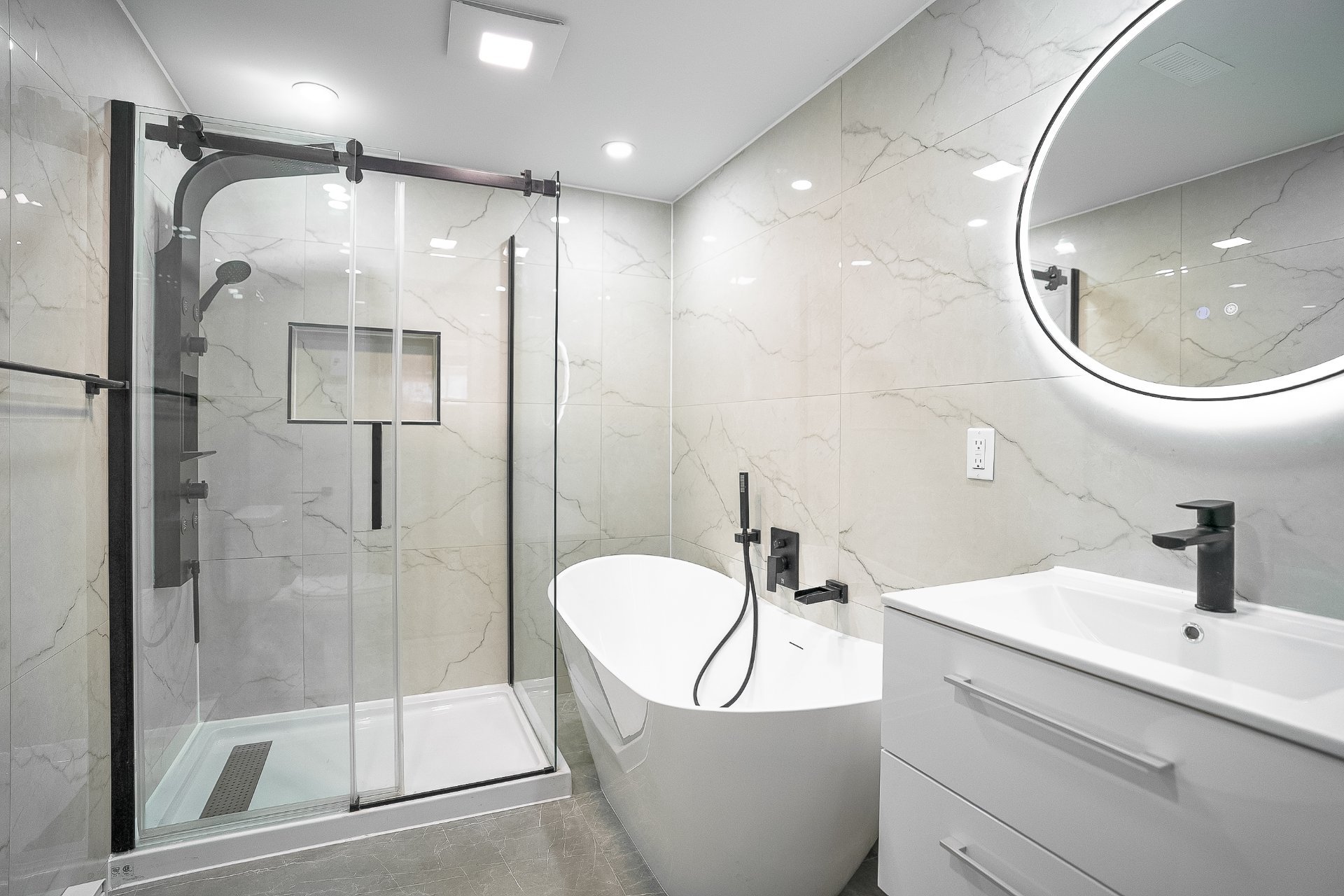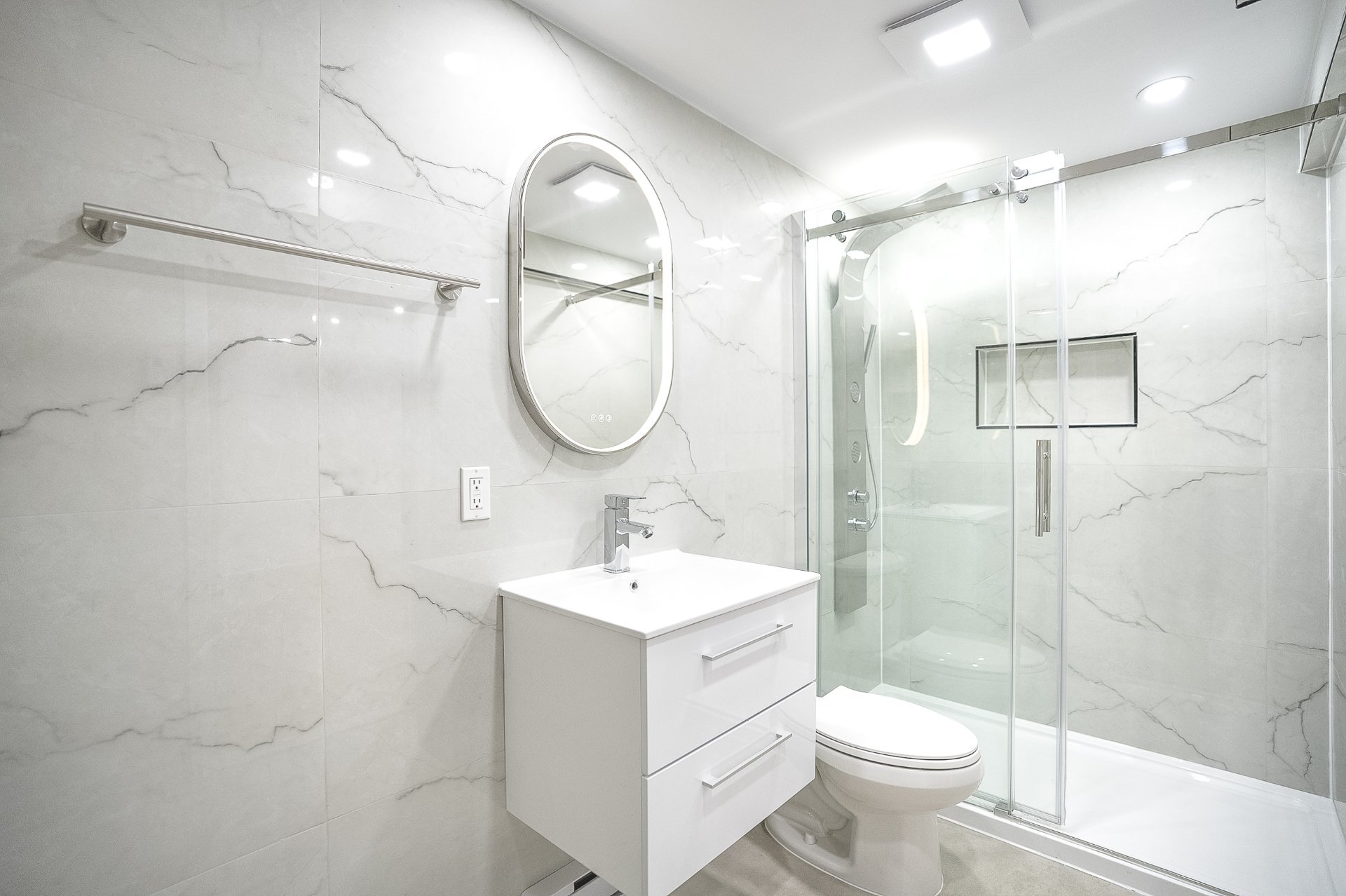 Bathroom mirrors and all light fixtures