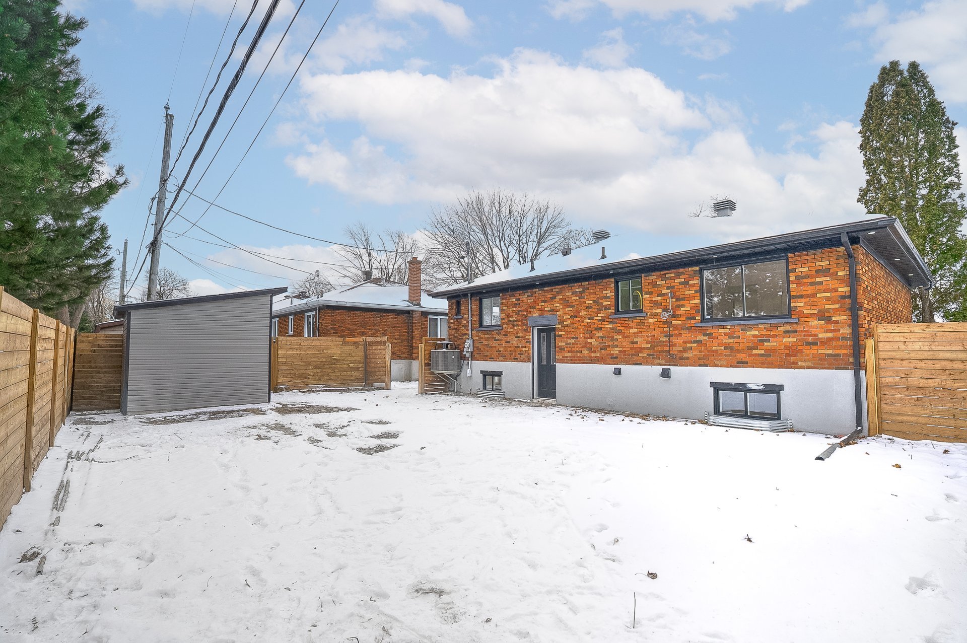 EXTERIOR:- new basement windows with metal flashings (drip caps) and window wells- new balcony and railing- new staircase- new shed- added 1 parking space in front