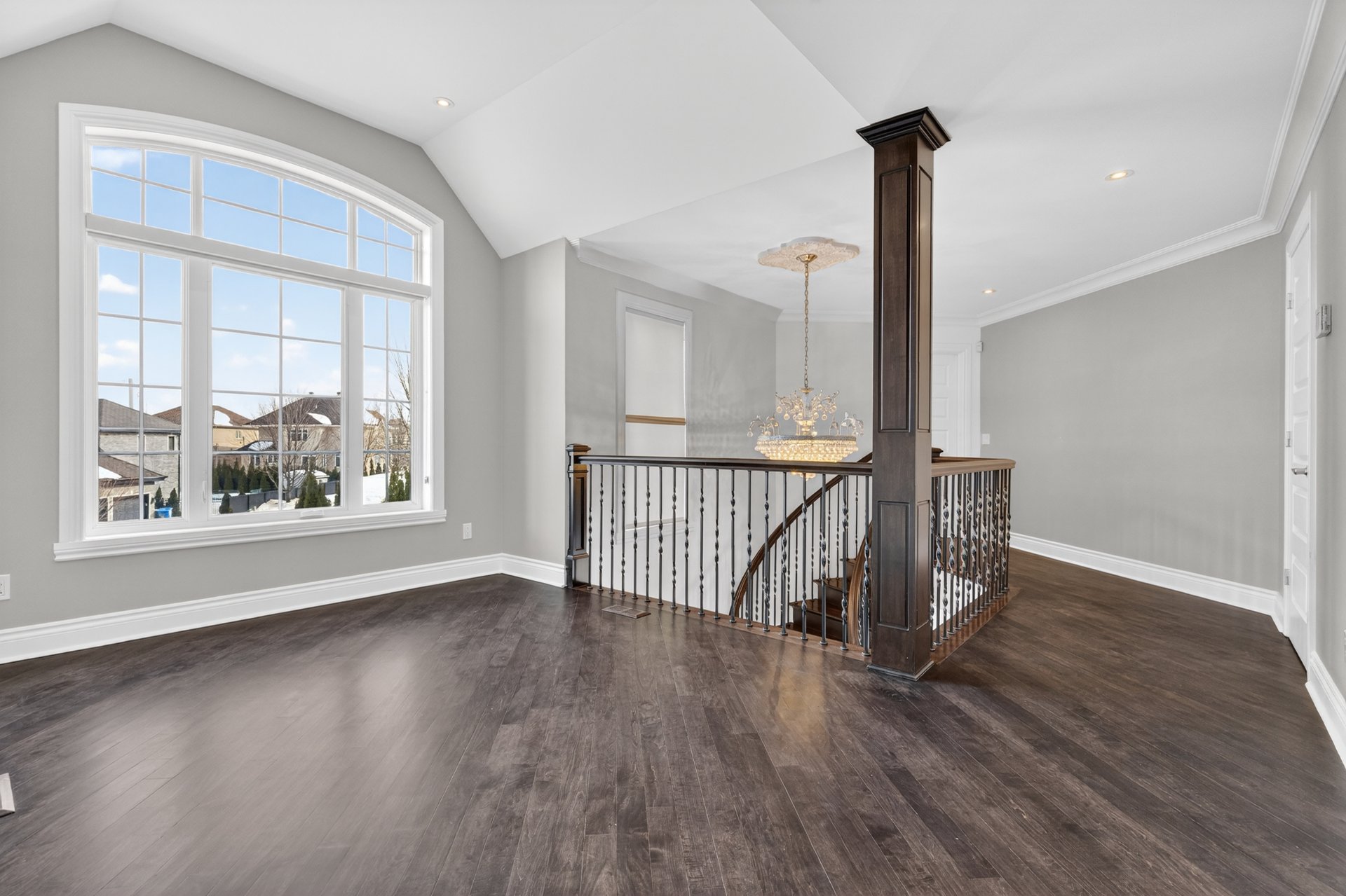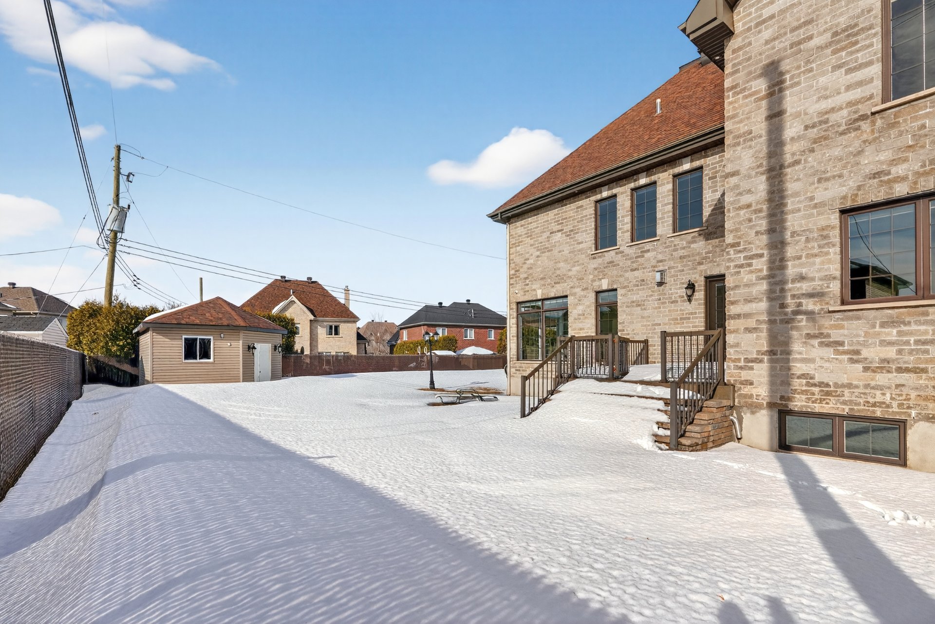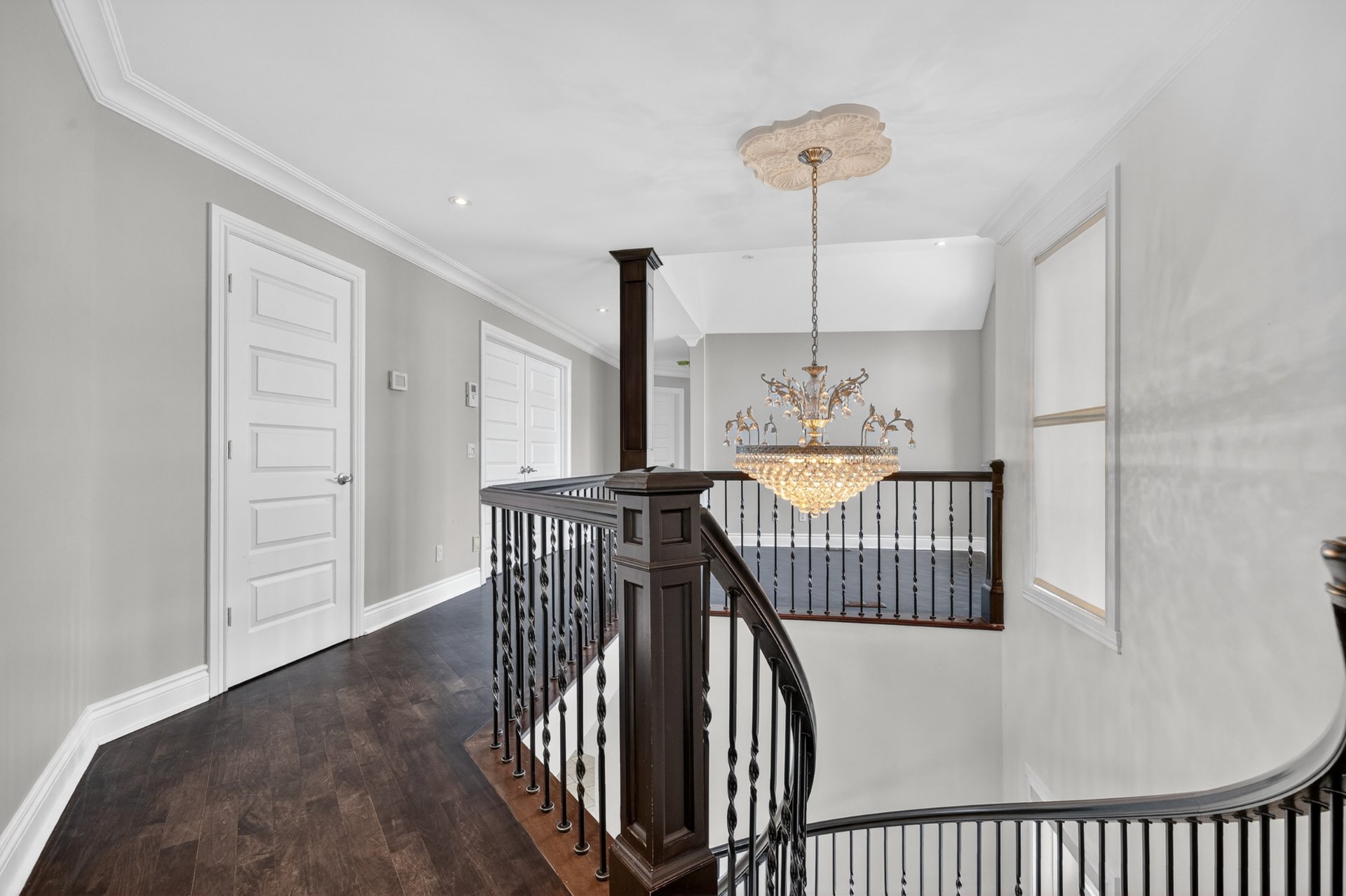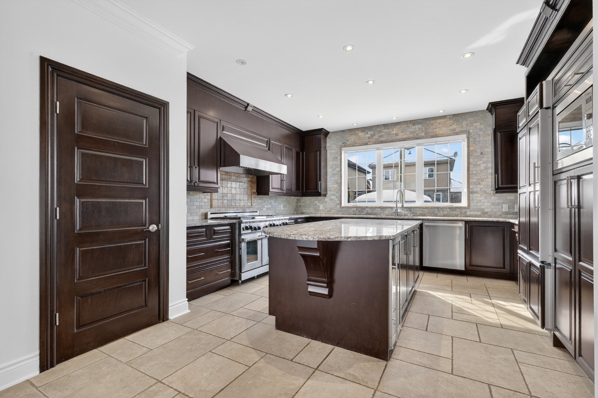 Custom-built executive residence on a quiet crescent in a sought-after area of Pierrefonds. The main floor features a gourmet kitchen with high-end appliances and a walk-in pantry, open to the dining area, a formal living room, and a bright family room with a gas fireplace. Upstairs offers a spacious primary suite with a large ensuite, three additional generous bedrooms with walk-in closets, two sharing a Jack & Jill bathroom, and a bonus room completing this level. Finished basement with a large playroom and 5th bedroom. Imposing corner-lot home with a beautifully landscaped, fenced yard and much more!