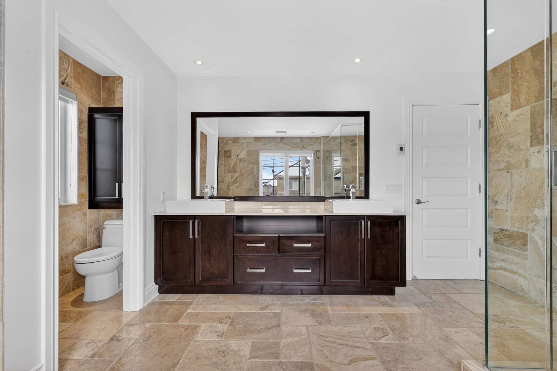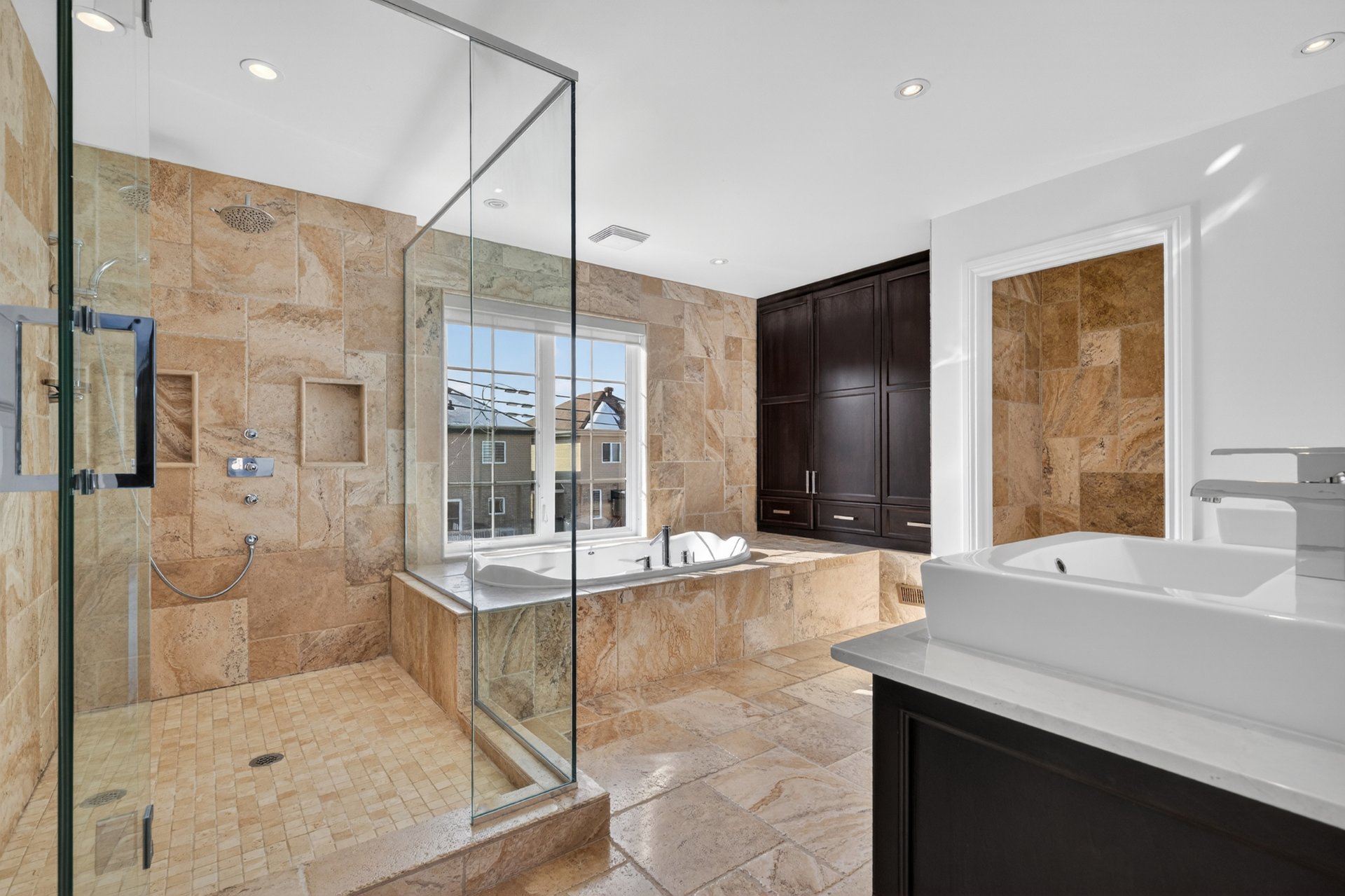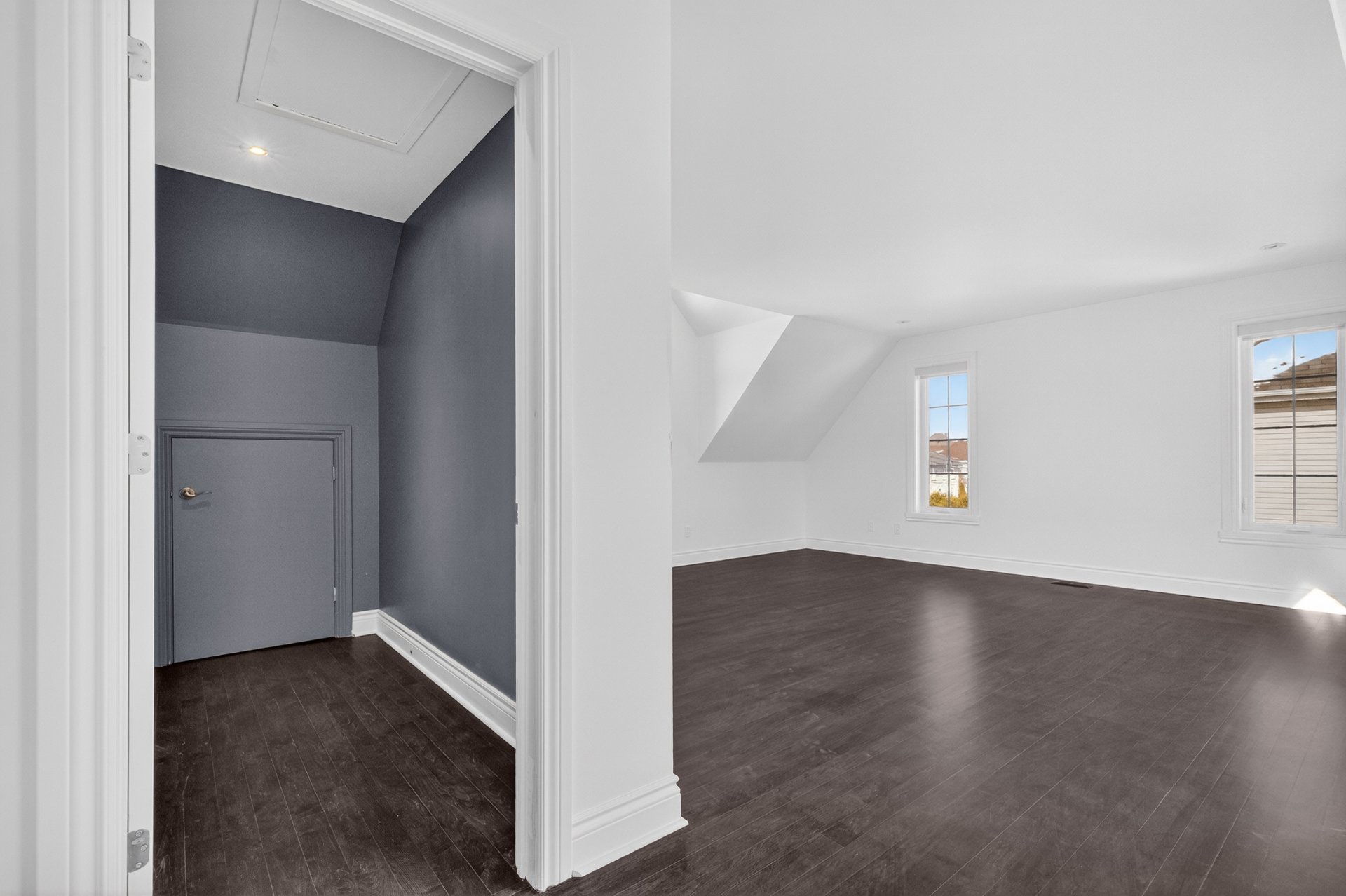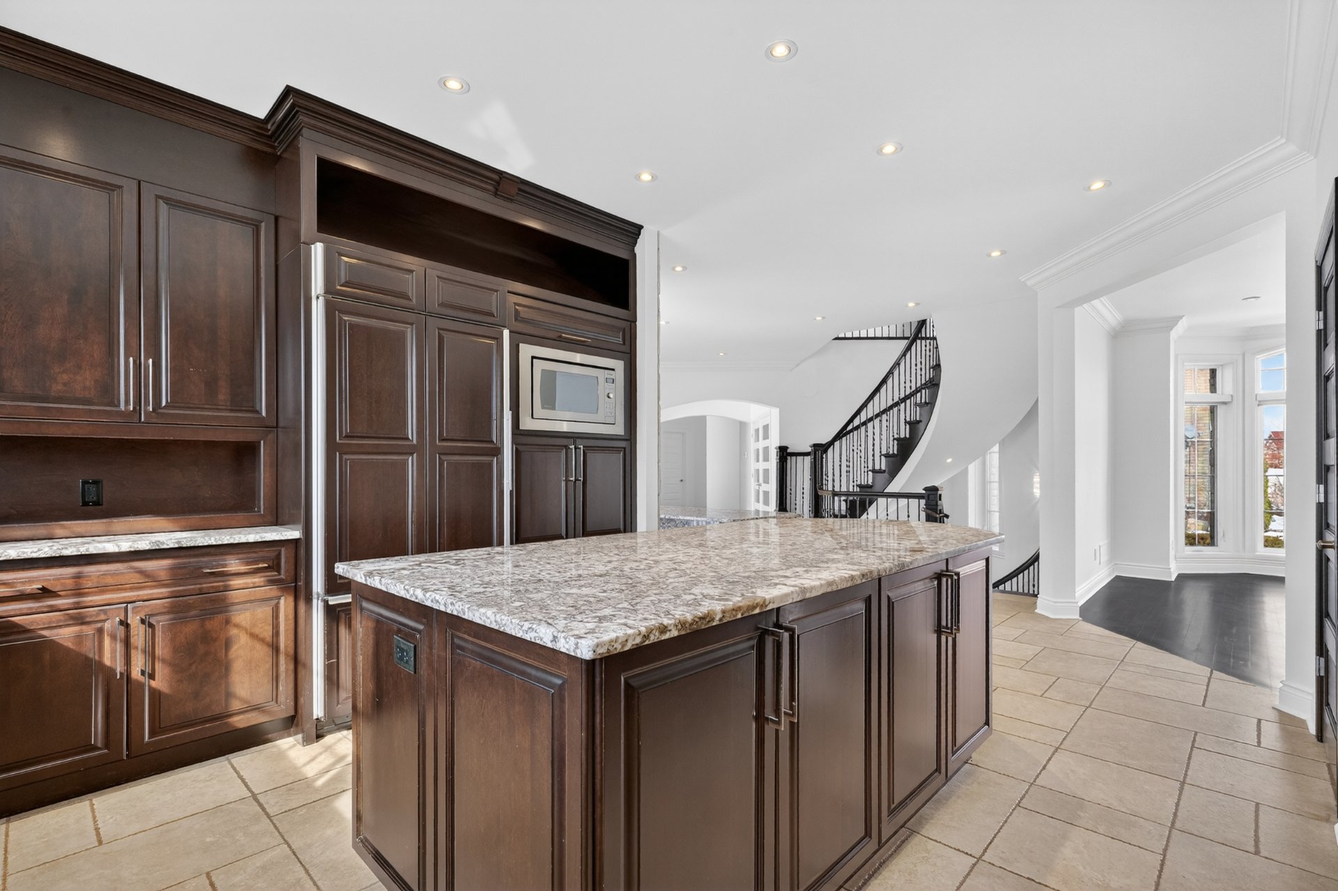 Custom-built executive residence on a quiet crescent in a sought-after area of Pierrefonds. The main floor features a gourmet kitchen with high-end appliances and a walk-in pantry, open to the dining area, a formal living room, and a bright family room with a gas fireplace. Upstairs offers a spacious primary suite with a large ensuite, three additional generous bedrooms with walk-in closets, two sharing a Jack & Jill bathroom, and a bonus room completing this level. Finished basement with a large playroom and 5th bedroom. Imposing corner-lot home with a beautifully landscaped, fenced yard and much more!