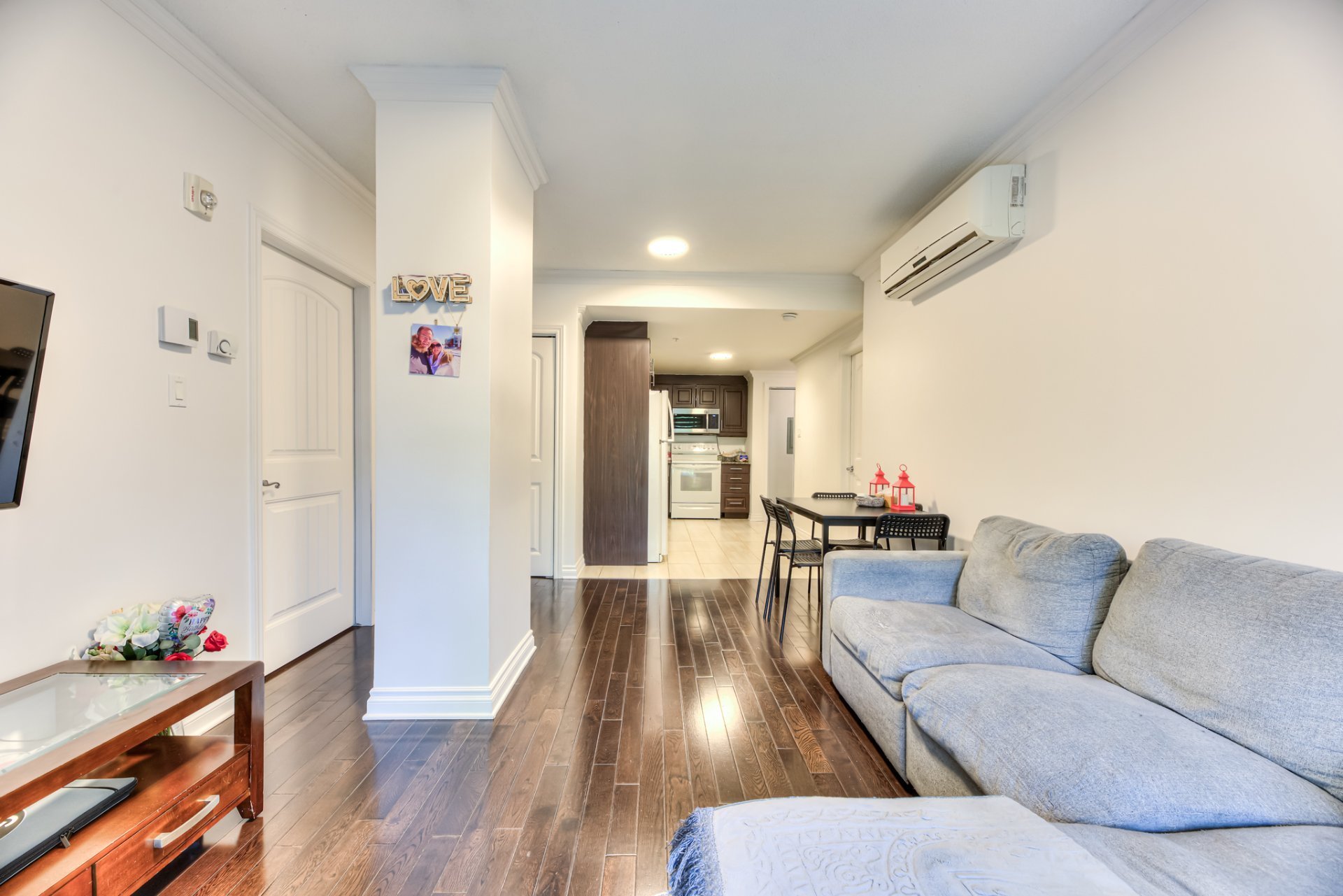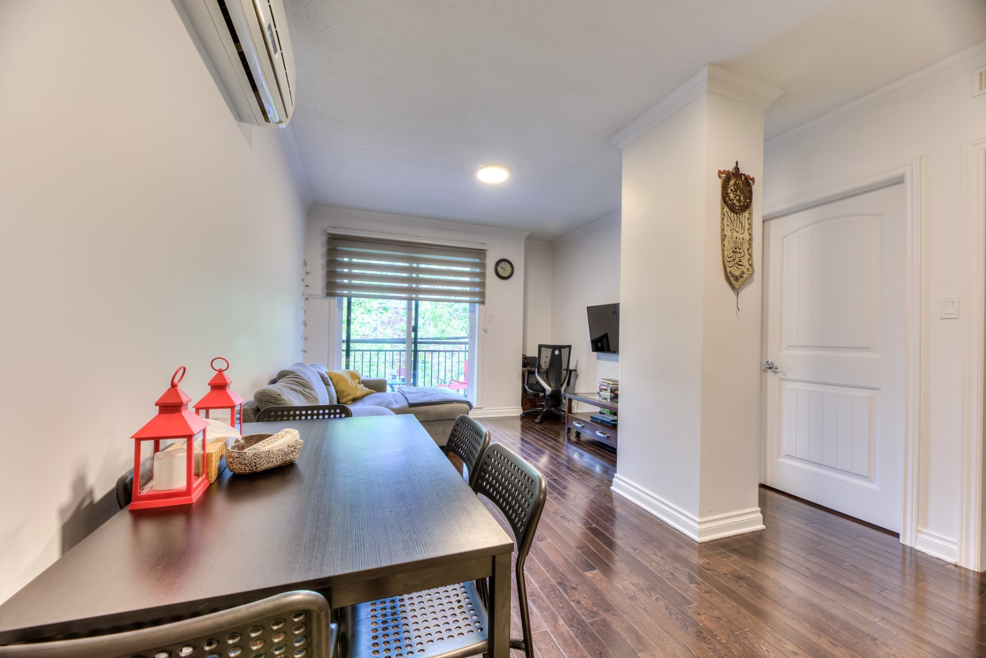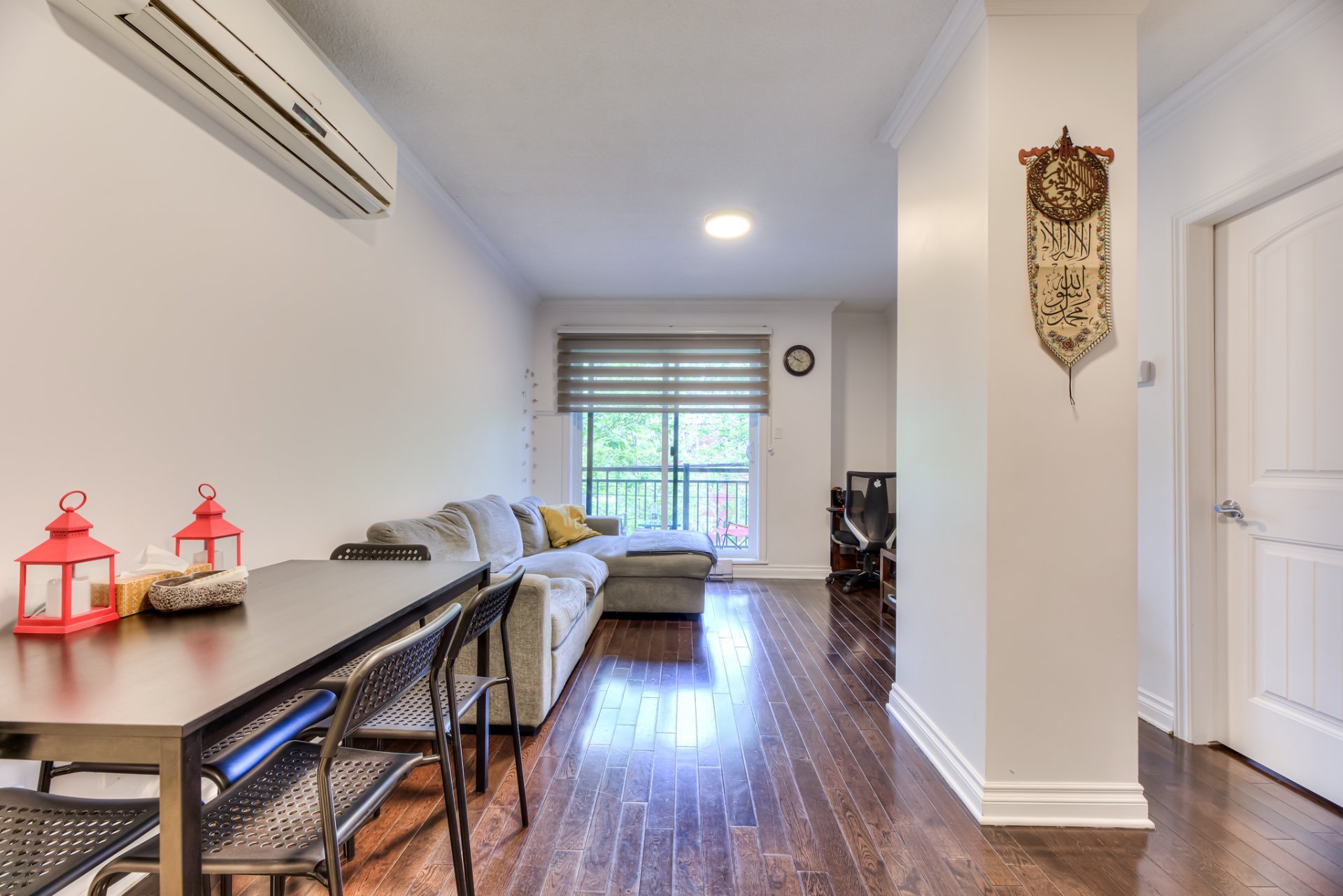 Welcome to the NADIAMONA II, a stylish and contemporary condo built in 2013. This bright 2nd-floor unit offers 806 sq ft of comfortable living space, featuring 2 bedrooms and 1 bathroom. Enjoy the convenience of indoor parking in a secure garage. Inside, the condo boasts beautiful hardwood floors, ceramic tiling, and a modern kitchen adorned with sleek granite countertops. Ideally located right beside the REM, and near public transit, essential amenities such as schools, parks, and supermarkets, with quick access to highways 13 and 40 for added convenience.