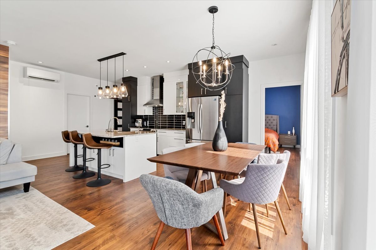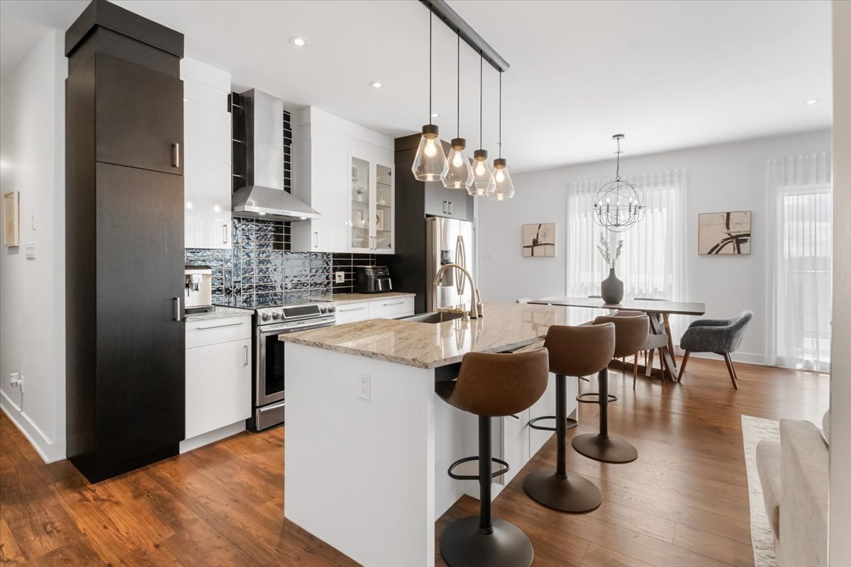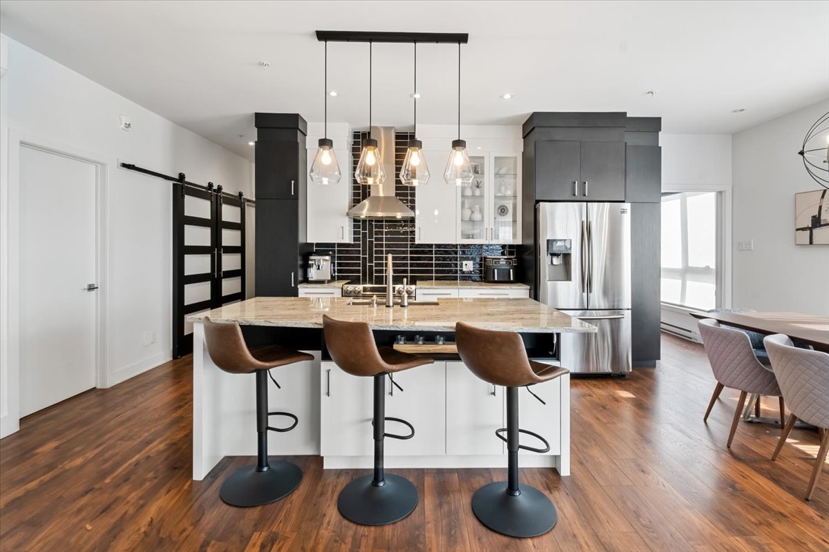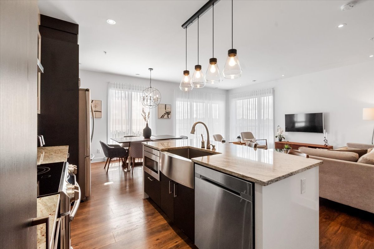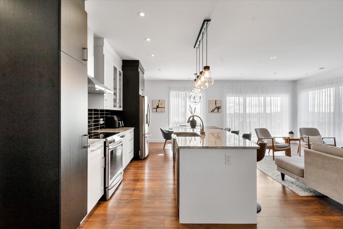 Stunning corner condo at 305 Av. de la Belle-Dame, La Prairie. Features 2 bedrooms and 2 bathrooms (including an ensuite), both with heated floors. Bright open living with large windows, garage parking, and access to an outdoor pool. Prime location near parks, bike paths, schools, services, Quartier Dix30, and the upcoming REM station for quick access to downtown Montreal.
