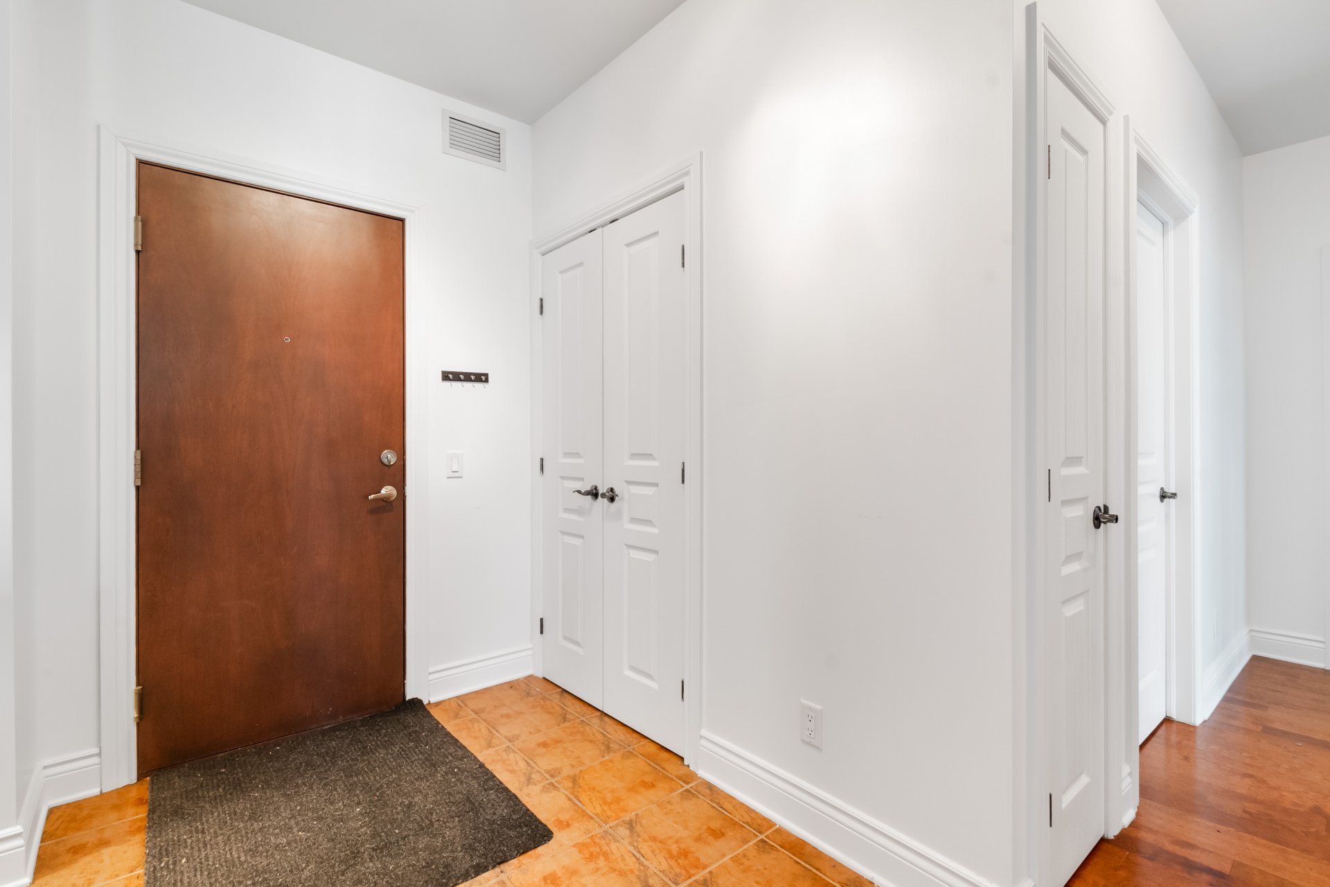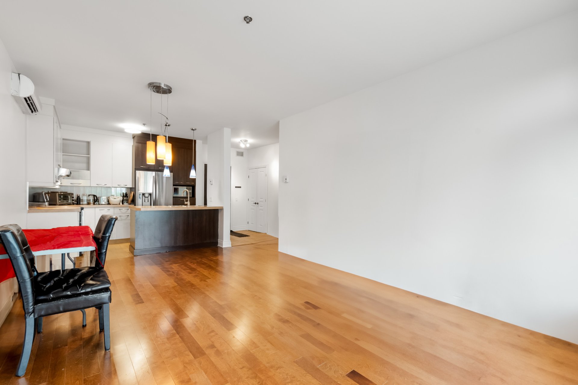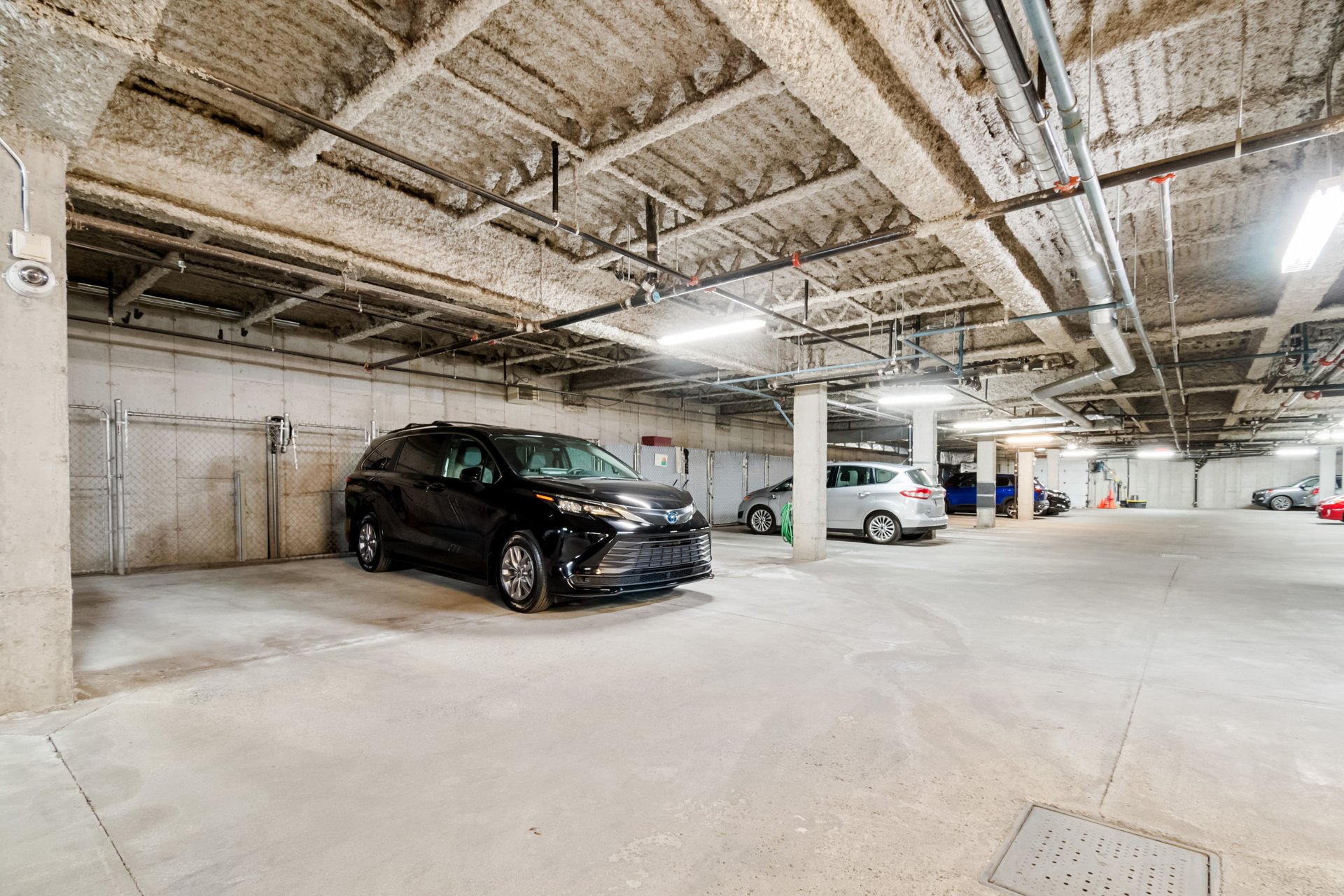 Exceptionally elegant condo situated in a concrete building, boasting 9-foot ceilings and equipped with an elevator. This residence features both indoor and outdoor parking options, along with ample storage space. The condo is bathed in natural light through its expansive windows and offers a balcony with a scenic view. The living room exudes warmth with its wood floors, while the wall-mounted air conditioning ensures comfort. The generously sized bedrooms are complemented by a bathroom that includes a separate shower. Additionally, a convenient in-unit laundry room enhances your living experience. This condo truly has it all.
