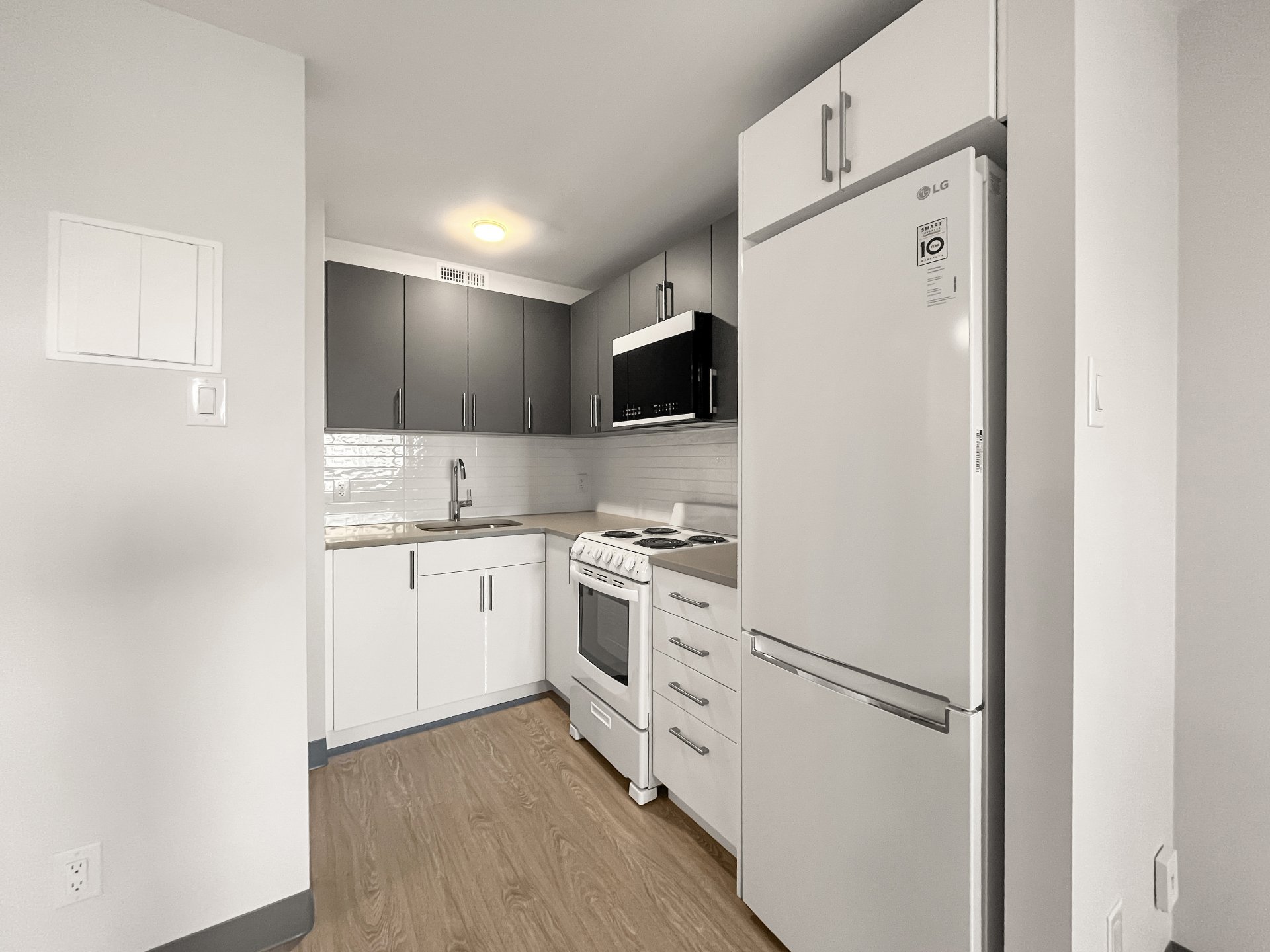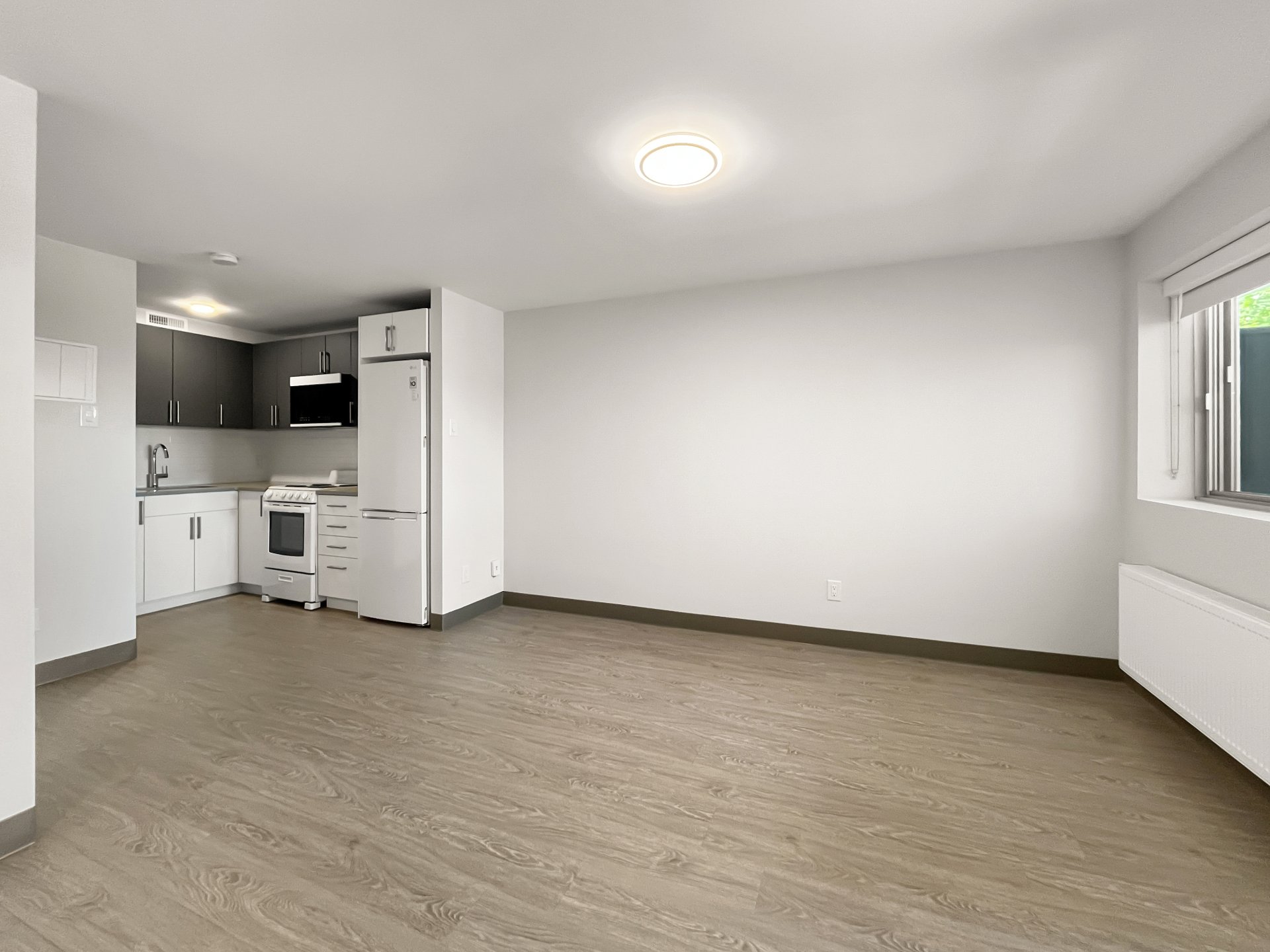 - Renovated in 2023 with modern finishes- Open concept layout- Large windows flooding the space with natural light- Heating and hot water included- Appliances: refrigerator, stove, microwave, and dishwasher
