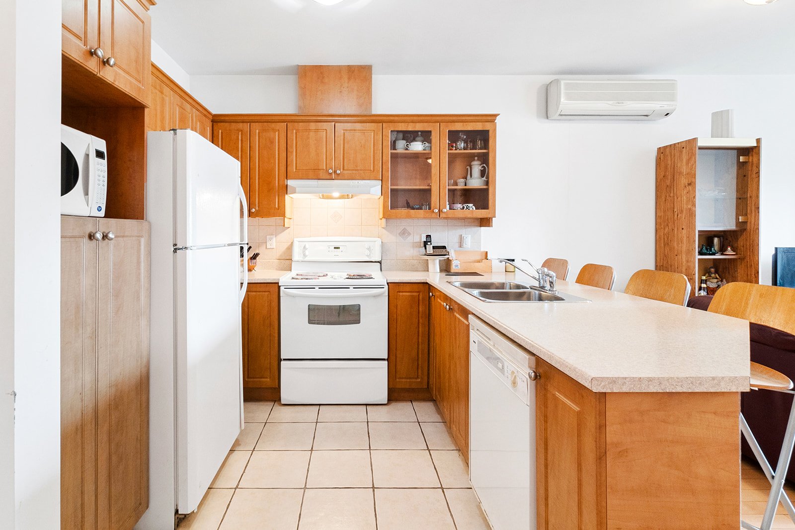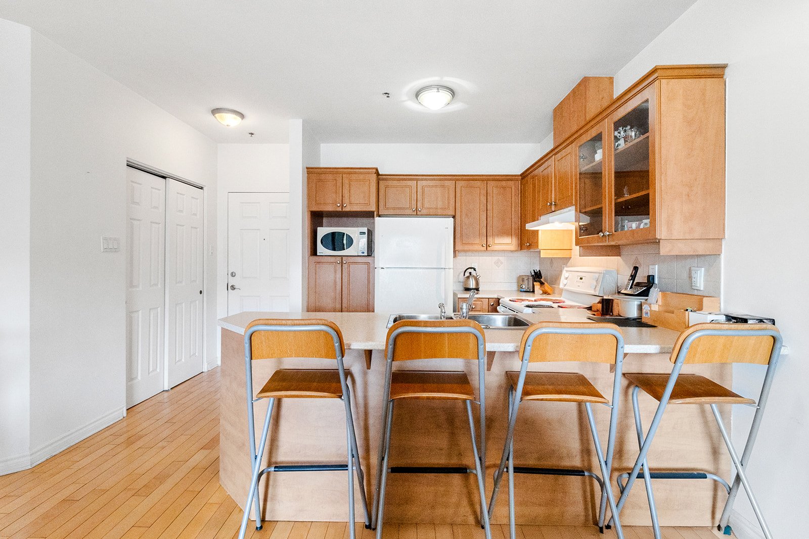 Discover this modern 2-bedroom, 1-bathroom condo in the heart of Saint-Laurent--one of Montreal’s most connected and vibrant boroughs. This bright, open-concept unit features hardwood floors, large windows with scenic views, and a kitchen with ample cabinetry and modern appliances. Both bedrooms are sunlit and the full bathroom is smartly designed. Enjoy in-unit laundry and a dedicated parking spot. Steps from grocery stores, an elementary school, and public transit, with quick access to Highways 40 and 15. Comfort, style, and location come together--book your visit today!