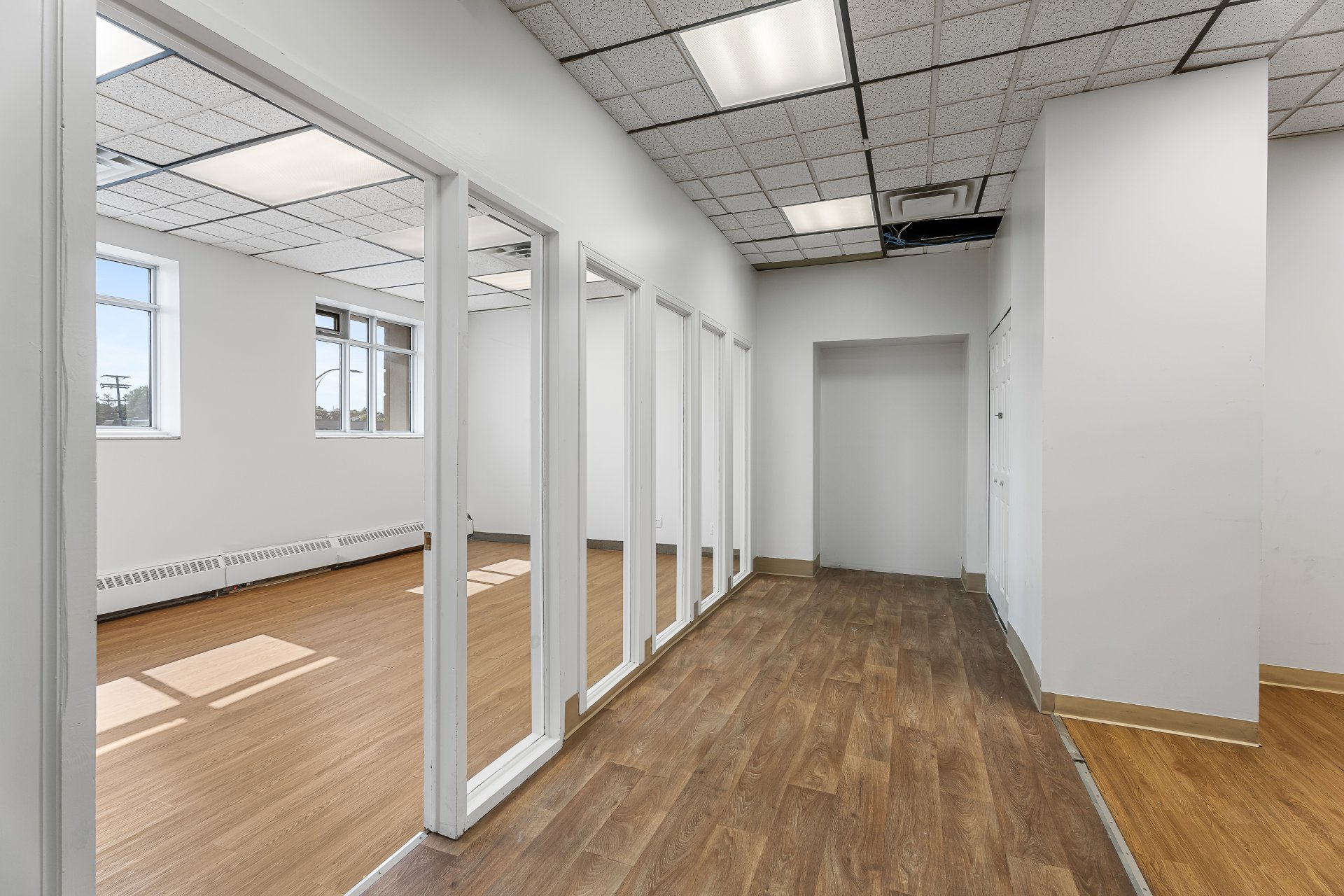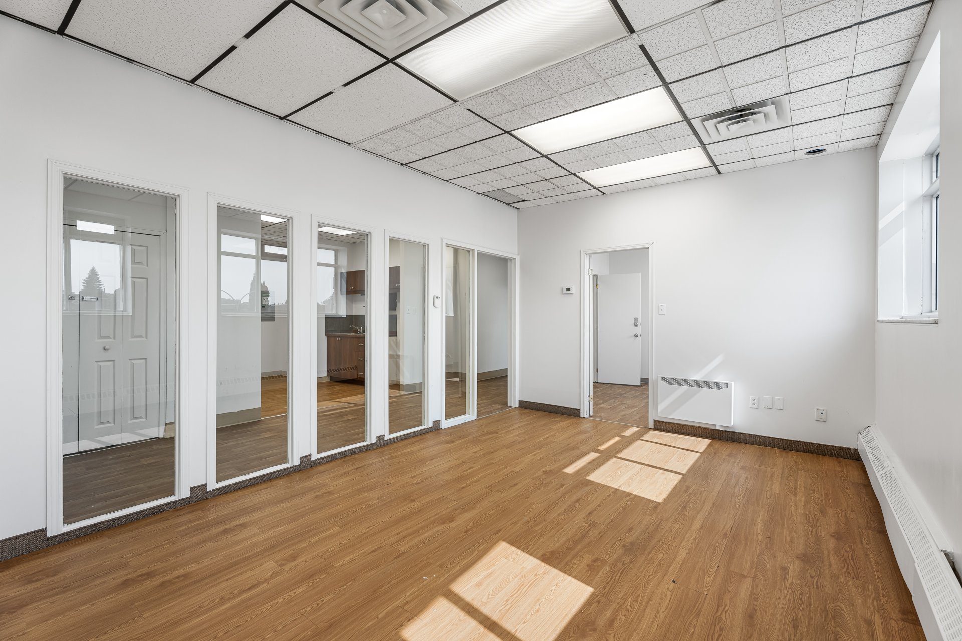 Discover this prime 850 sq. ft. office space, ideal for growing businesses or established companies looking to expand. The space features floor-to-ceiling glass windows, allowing plenty of natural light to flood the rooms, creating a bright and welcoming atmosphere. Additionally, it includes its own private bathroom and kitchenette for added convenience.
