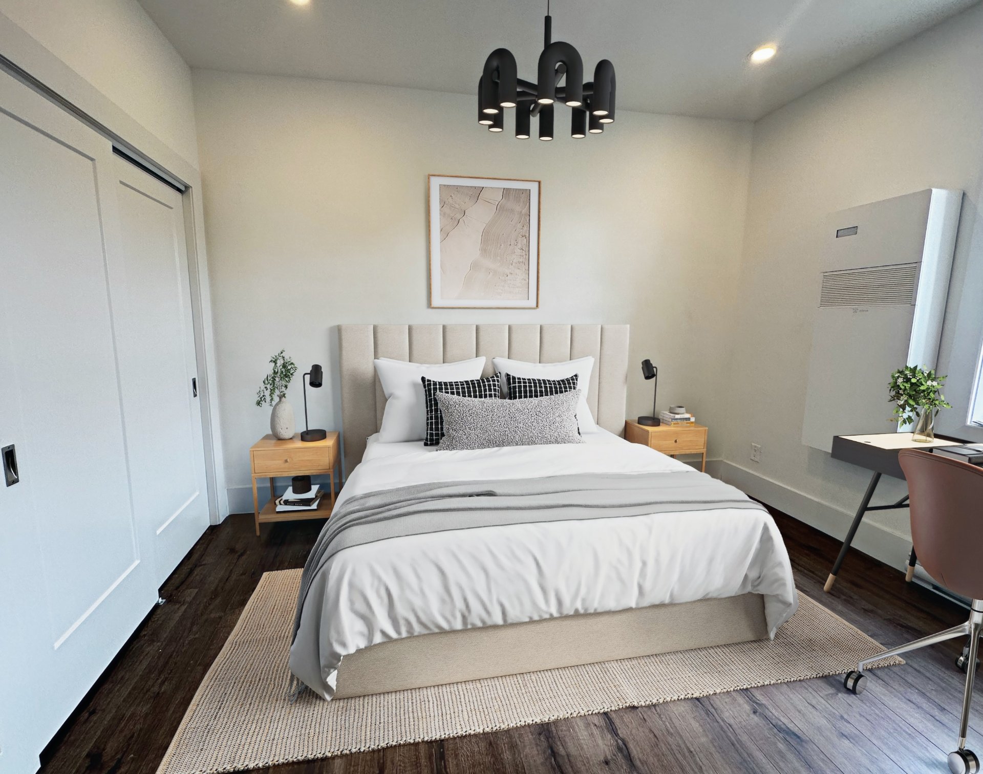 The rent includes a fridge, stove, dishwasher, washer, dryer, built-in air conditioning wall units, and hot water.