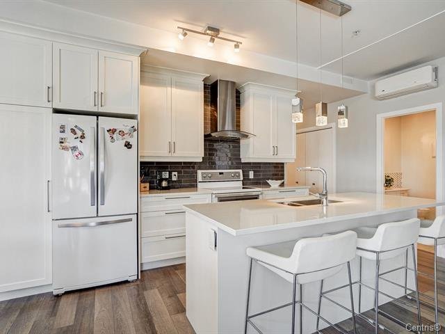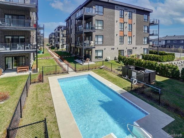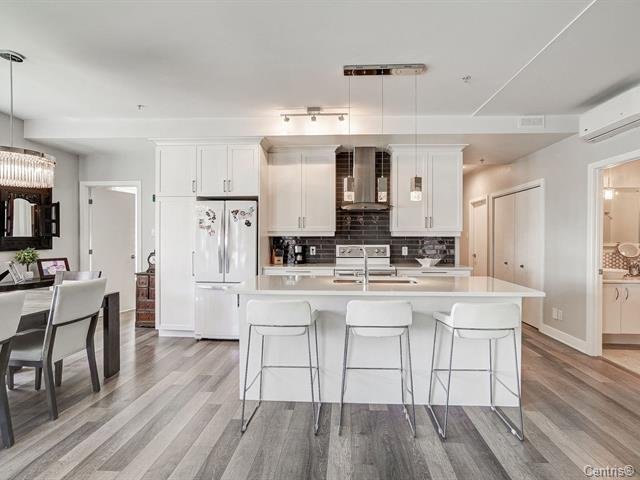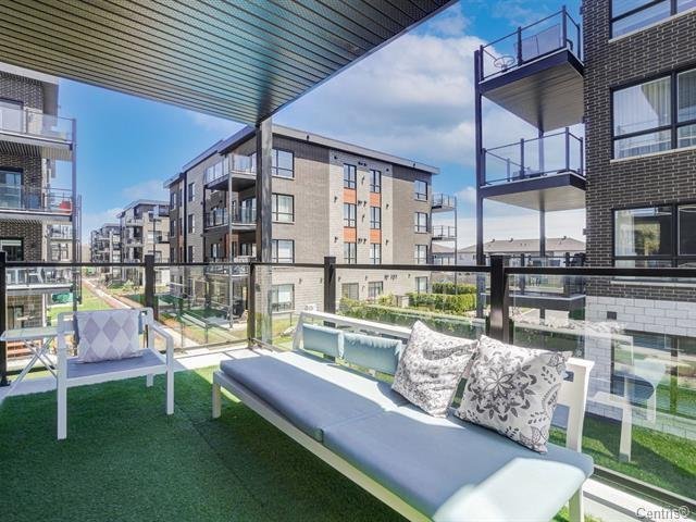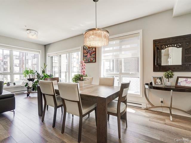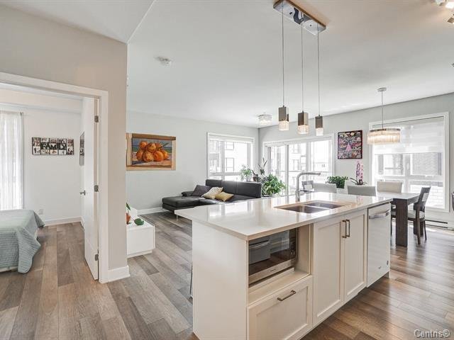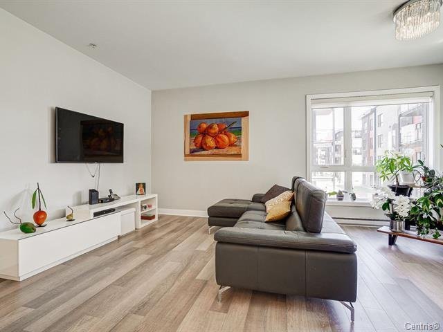 Beautiful corner-unit condo in the sought-after Symbiocité neighborhood! This unit offers an open-concept living space, 2 spacious bedrooms, 2 bathrooms, high ceilings, and large windows filling the space with natural light. The master bedroom features a walk-in closet and ensuite bathroom. Enjoy a large private balcony, 1 garage space, and 2 outdoor parking permits. Residents have access to a shared pool. Ideally located near public transit, the REM station, and Quartier DIX30, with easy access to highways and downtown. The neighborhood also offers schools, arena, and a variety of shops and services nearby