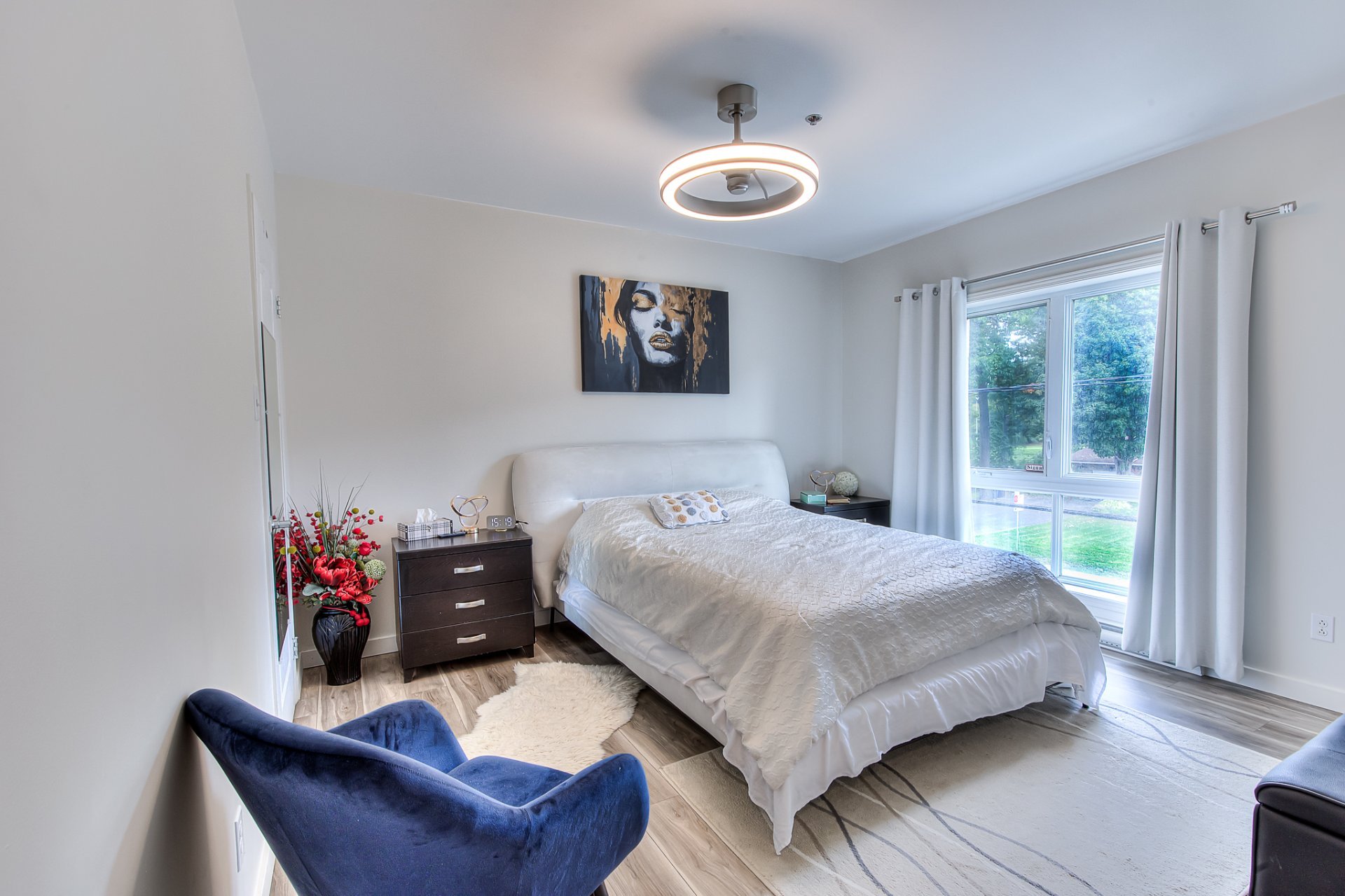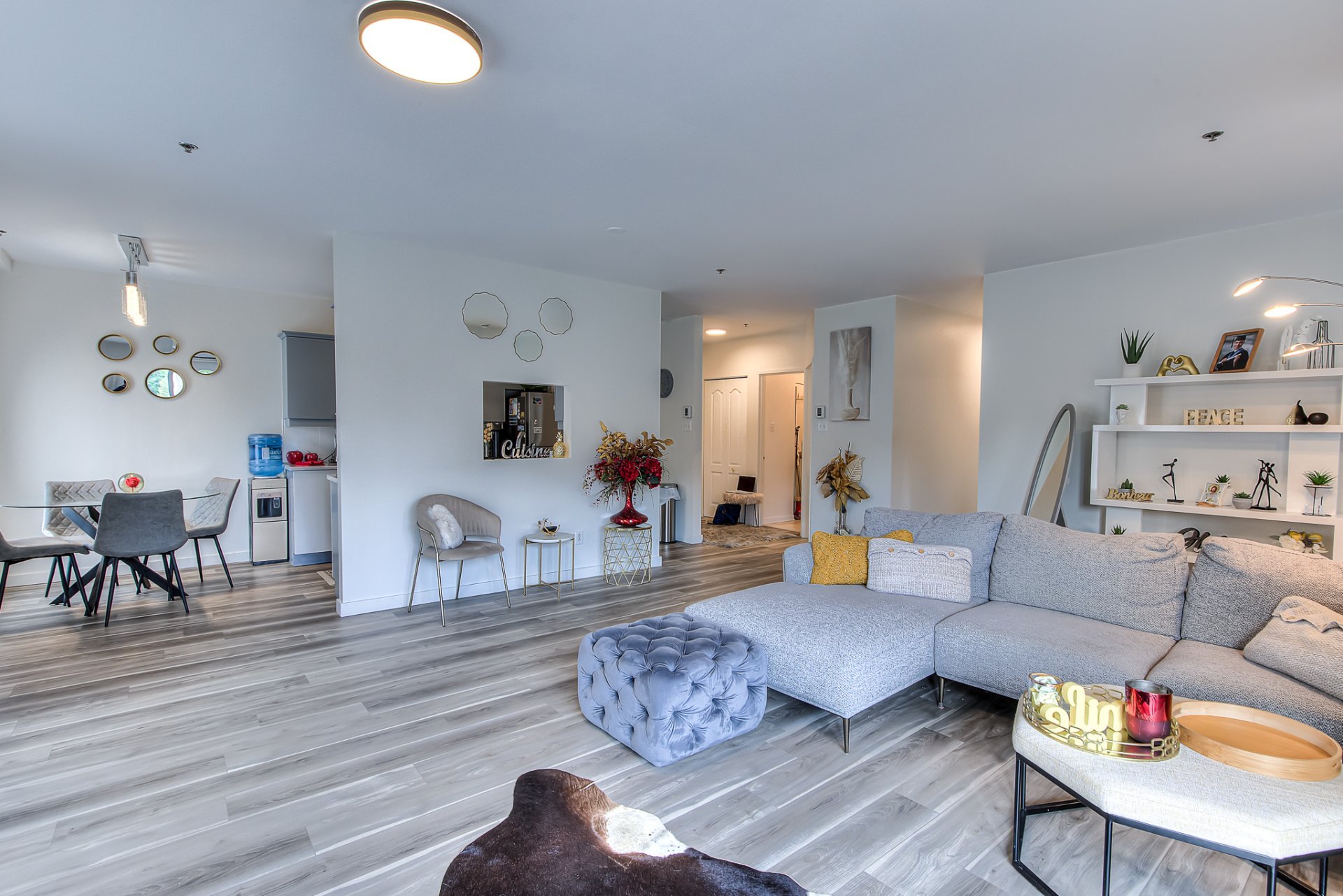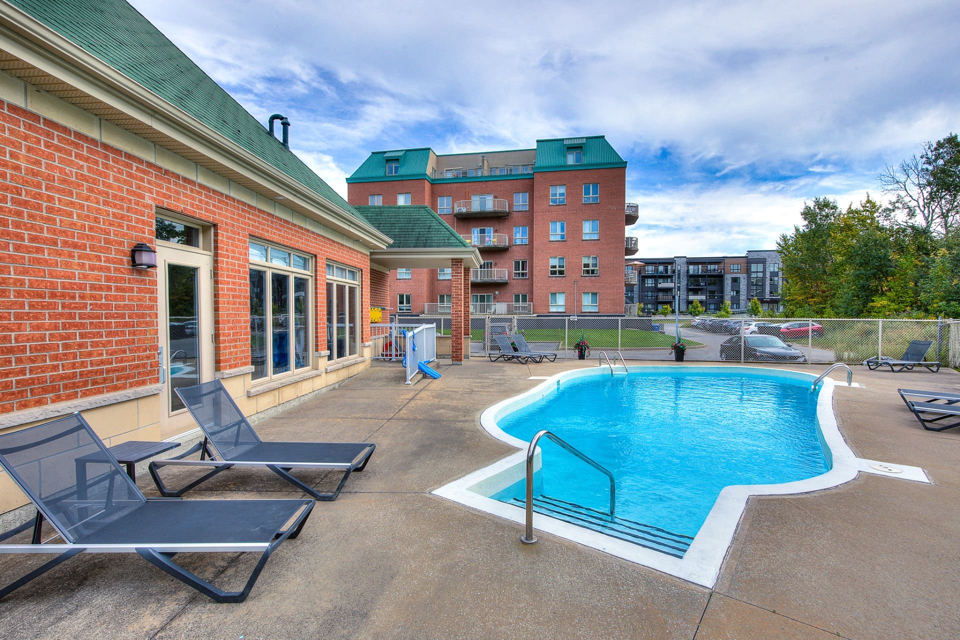 This property presents an abundance of natural light. This luxurious, sun-drenched corner unit condominium boasts a spacious balcony overlooking the golf course. The open-concept layout, encompassing the living room, dining room, and office space, is enhanced by elevated ceilings. The unit features a fully renovated kitchen and dinette. It comprises two generously sized bedrooms, a well-appointed bathroom with both a bathtub and a separate shower, a powder room, and laundry facilities, along with extensive interior storage and a basement locker. The main entrance is secured with a camera-monitored intercom system and an automatic door providing access to a large, double-opening elevator. Additional amenities include a reception area with a kitchen, two bathrooms, a fitness center, and a heated in-ground pool, all situated within a tranquil cul-de-sac and accessible to individuals with disabilities.
