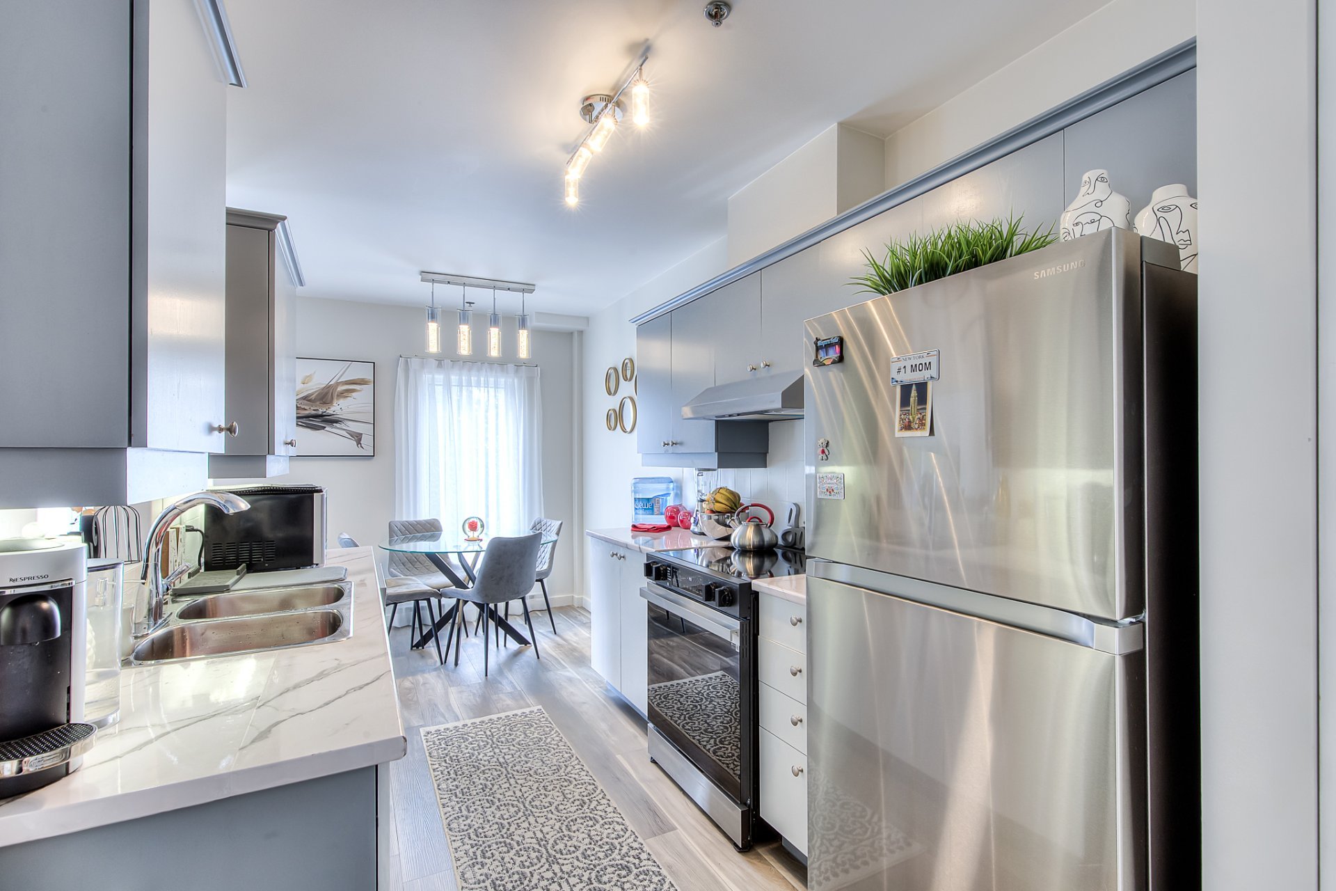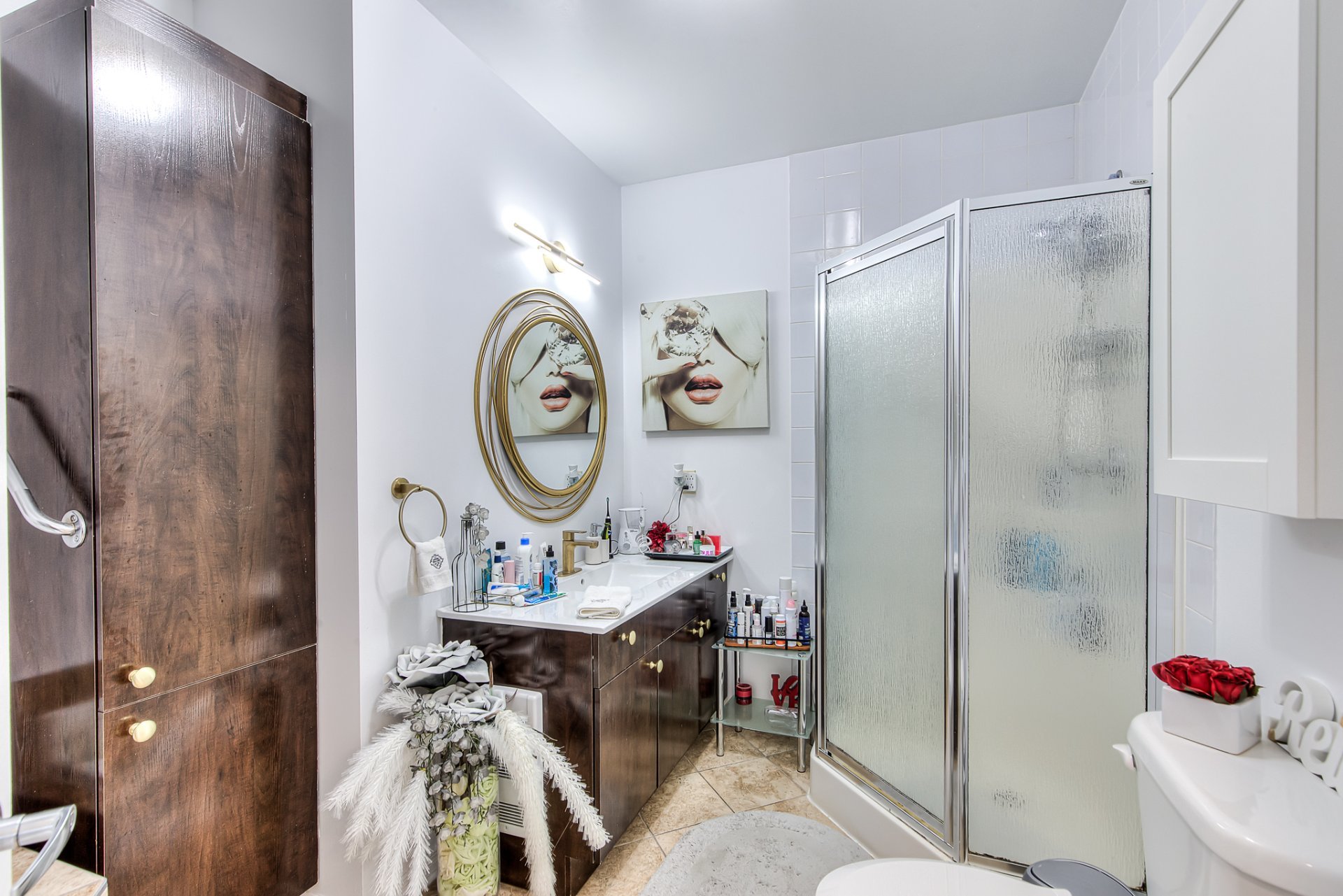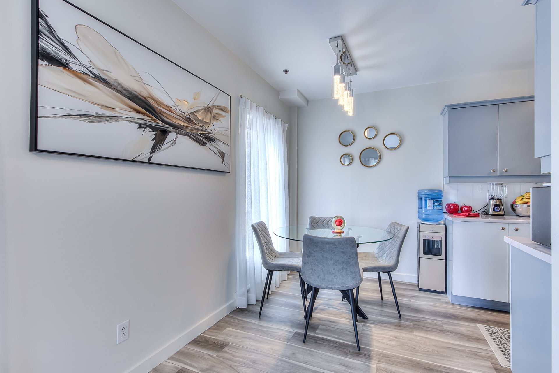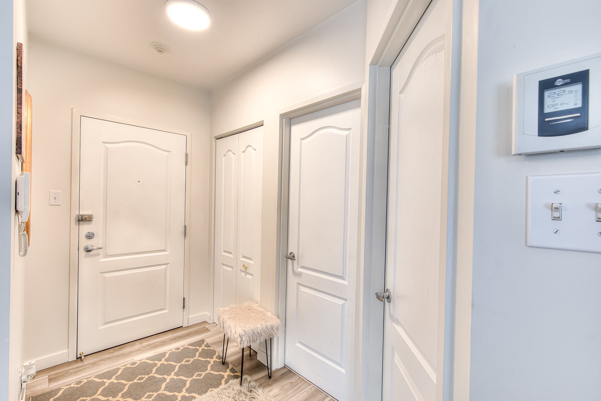 This property presents an abundance of natural light. This luxurious, sun-drenched corner unit condominium boasts a spacious balcony overlooking the golf course. The open-concept layout, encompassing the living room, dining room, and office space, is enhanced by elevated ceilings. The unit features a fully renovated kitchen and dinette. It comprises two generously sized bedrooms, a well-appointed bathroom with both a bathtub and a separate shower, a powder room, and laundry facilities, along with extensive interior storage and a basement locker. The main entrance is secured with a camera-monitored intercom system and an automatic door providing access to a large, double-opening elevator. Additional amenities include a reception area with a kitchen, two bathrooms, a fitness center, and a heated in-ground pool, all situated within a tranquil cul-de-sac and accessible to individuals with disabilities.