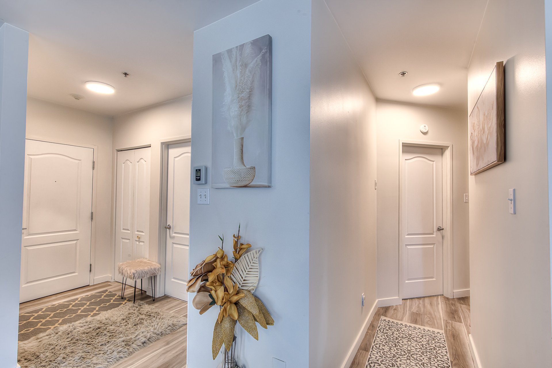 This condominium boasts an excellent location and benefits from exceptional natural light. As a corner unit, it presents a rare feature for a condominium: a powder room, which is highly practical for accommodating guests. The unit further offers a spacious entrance and a laundry room with ample storage. All rooms are generously sized, and a large balcony provides views of the golf course. The building includes an elevator, and residents have access to a clubhouse that features a gym, a reception room, and an outdoor pool.