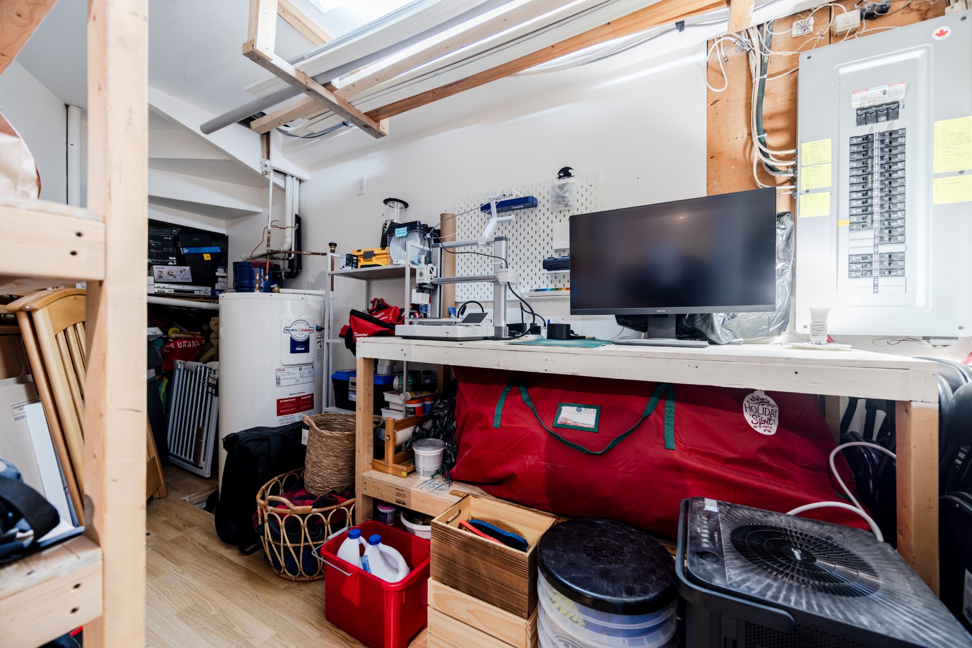 Electric car charger, Wall Shelf in living room, Sound System in living room, all paintings.