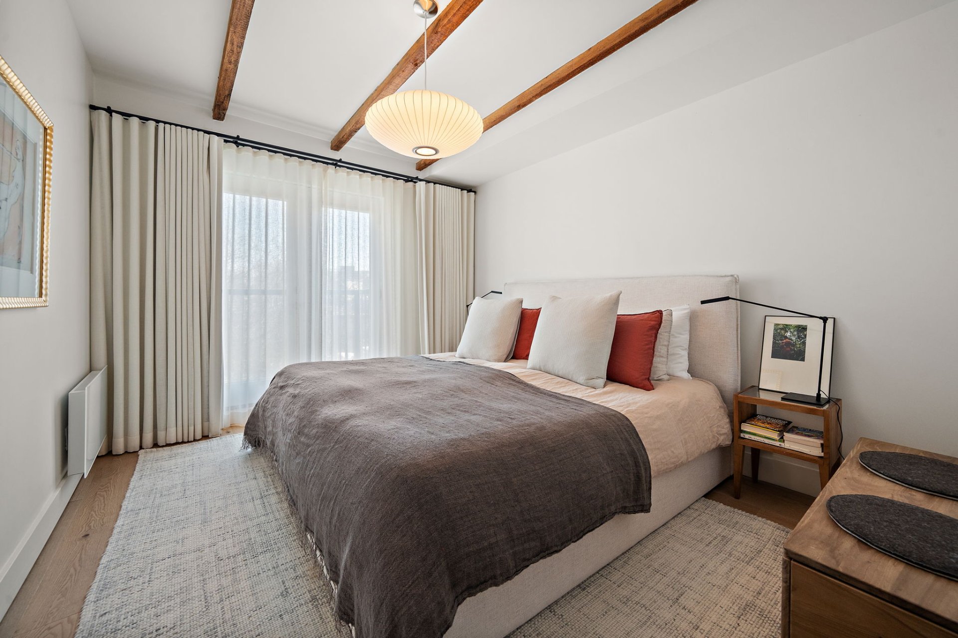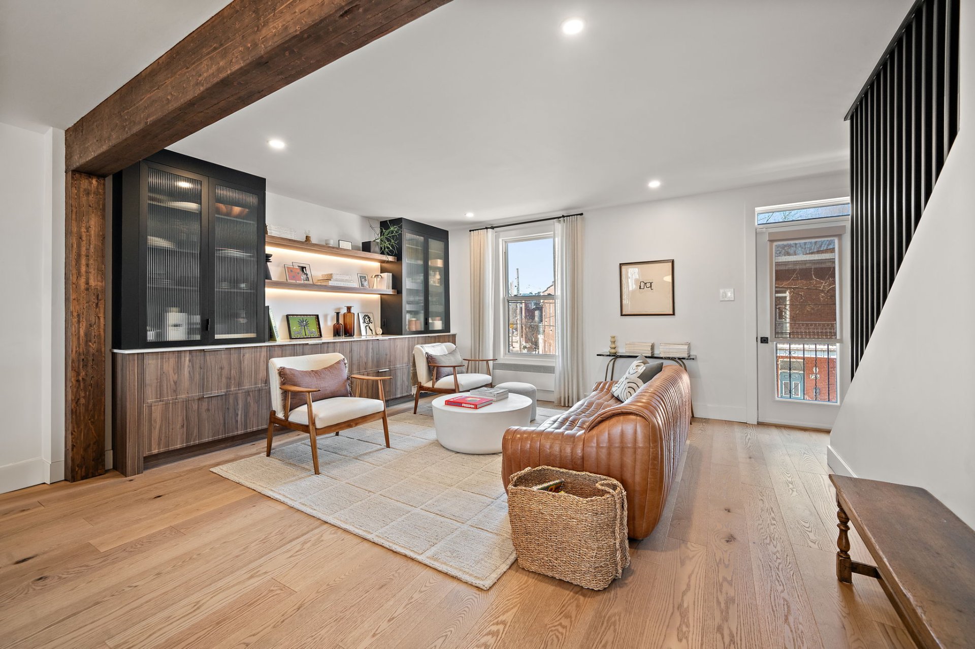 Built-in refrigerator, stove, dishwasher, washer and dryer, motorized blinds, curtains, light fixtures, all custom built-in storage, as well as the IKEA storage unit on the ground floor.