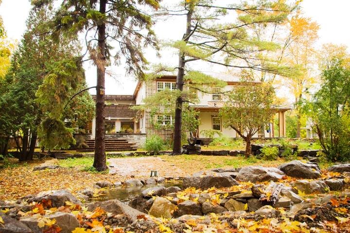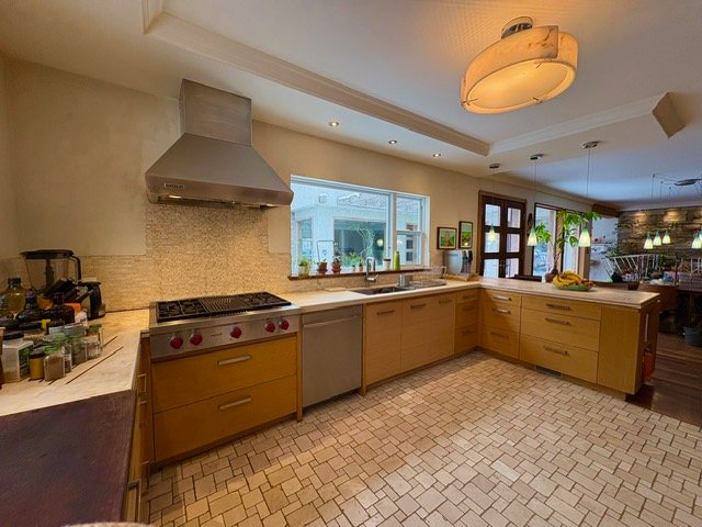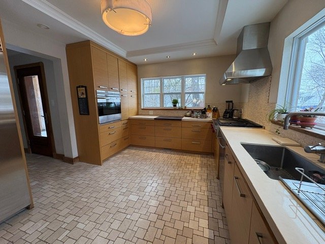 Upstairs, six bedrooms each feature a distinctive colored stained-glass door, adding architectural charm and personality. The primary suite includes a walk-in closet, while the Azul bedroom offers a private balcony. Multiple private terraces allow for seamless indoor-outdoor living, in addition to a furnished terrace with breathtaking sunset views and a green roof with perennial flower beds. The landscaped grounds offer a true private oasis with a swimming pool (opening and closing included), views toward Plage Laberge des Baigneurs, and proximity to the Mille-Îles River. The property also includes kayaks, a chicken coop, a BBQ, and a rainwater recovery system for irrigation. Parking is abundant with one indoor garage space, three spaces in front, and four at the rear. Monthly house maintenance, landscaping, and pool services are included, making this an exceptional turnkey residence for refined living and unforgettable entertaining.Ideally located in the charming Sainte-Rose area of Laval, this property enjoys a peaceful setting near Old Sainte-Rose, known for its cafés, restaurants, and historic charm. Just minutes from the Rivière des Mille-Îles and the Parc de la Rivière-des-Mille-Îles, perfect for kayaking, cycling, and water activities.