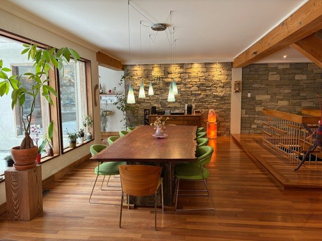 A rare opportunity to rent an exceptional eco-designed residence in Ste-Rose, offered fully furnished. This warm and refined home blends natural materials, elegant design, and sustainable living. It features geothermal heating, central air conditioning, an air exchange system, central vacuum, and an electric vehicle charging station, ensuring optimal comfort year-round. All utilities and charges are included. Wood floors run throughout, and the main floor is designed for sophisticated entertaining with an elegant living room with fireplace, a grand dining room seating 12 guests, and an open-concept kitchen. The kitchen showcases limestone countertops with wood inlays, a gas stove, a large premium refrigerator, and dedicated recycling spaces. A private office and powder room complete the main level. The home is fully furnished inside and out, including all bedding and linens, and enhanced by a beautiful collection of plants and cacti that create a serene, organic ambiance.