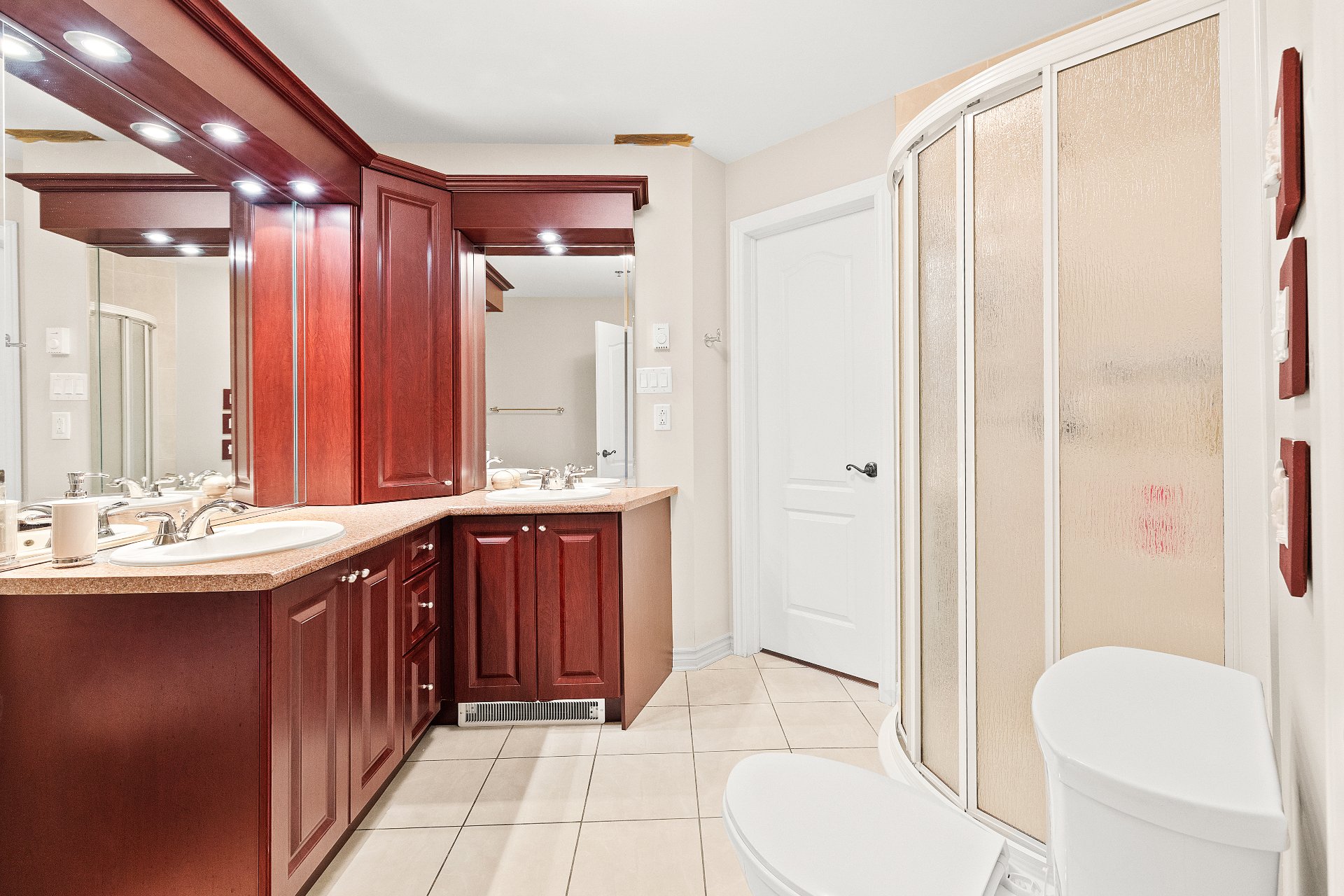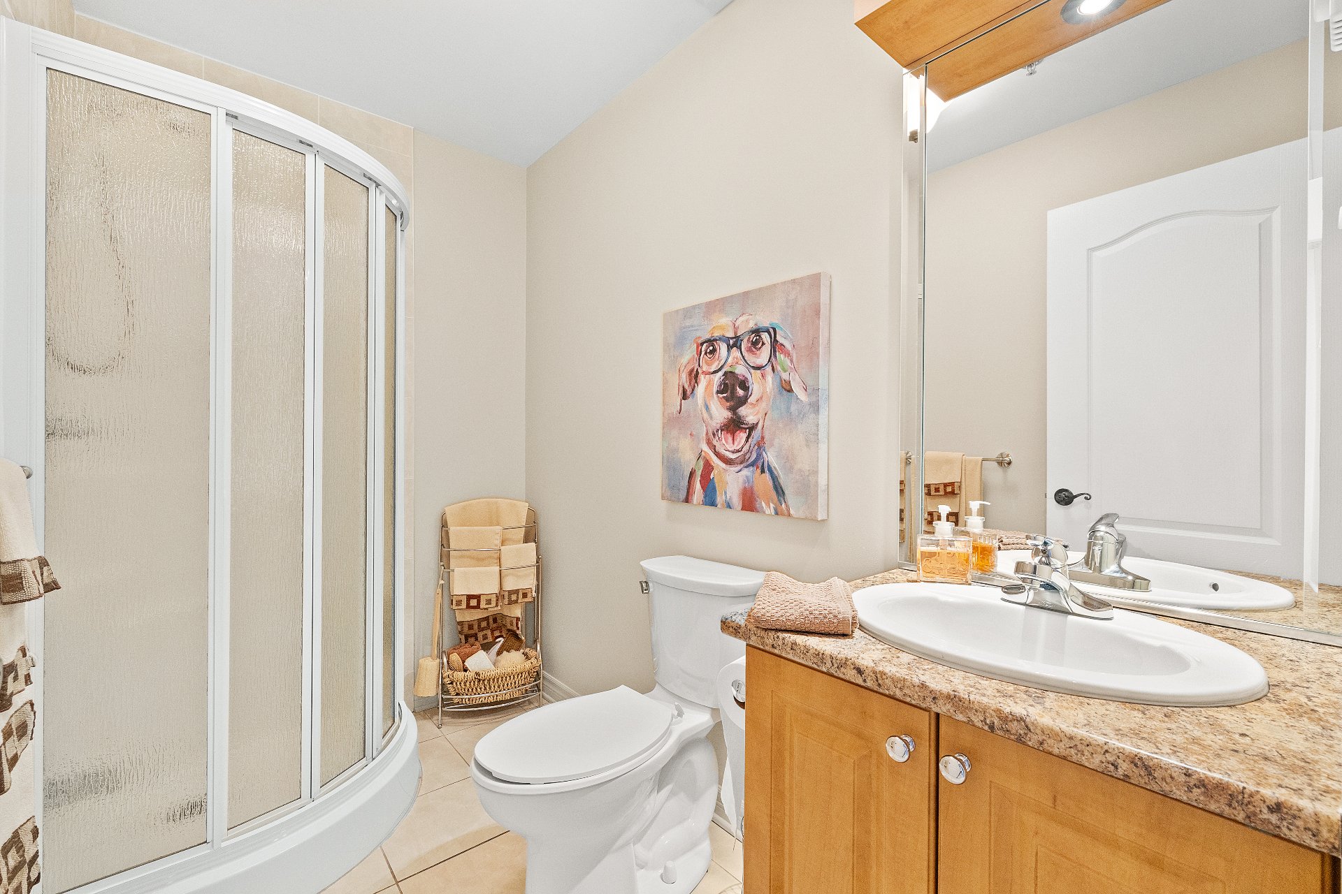 Two full bathrooms, upgraded with glass showers.