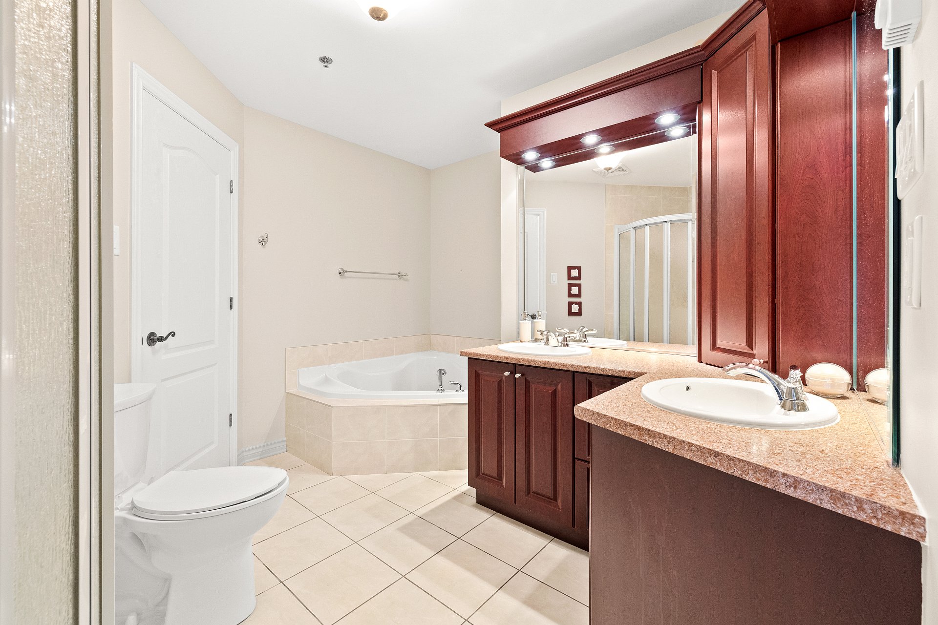 2 spacious bedrooms, including a primary suite with a private bathroom, walk-in closet, and additional storage.
