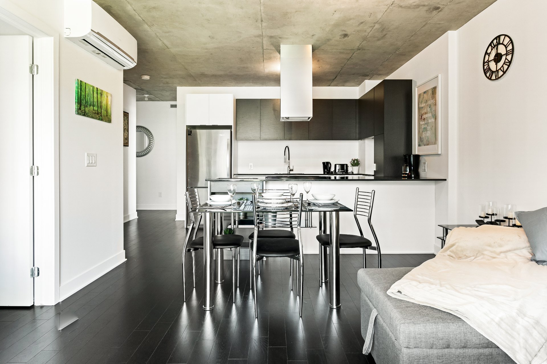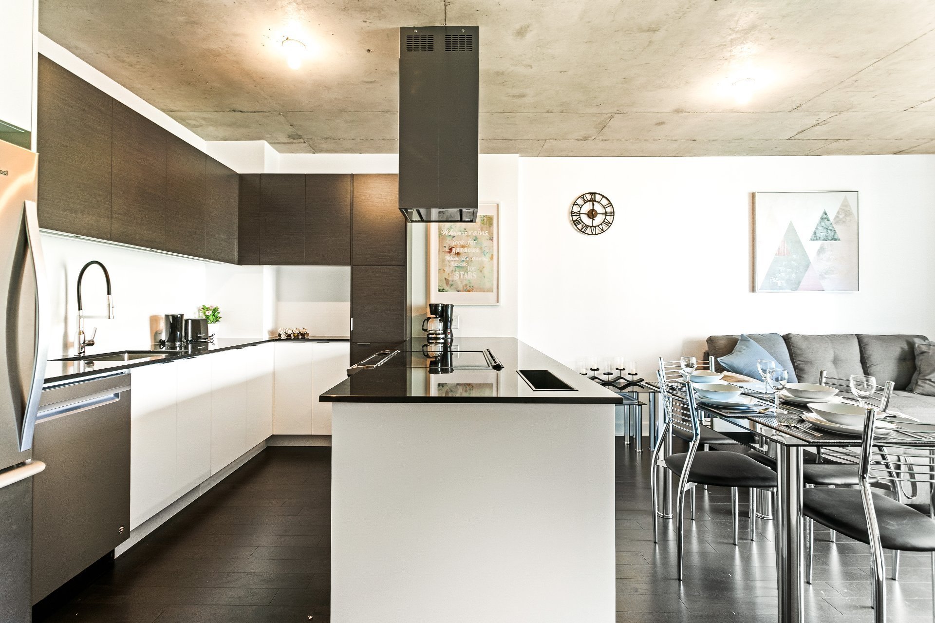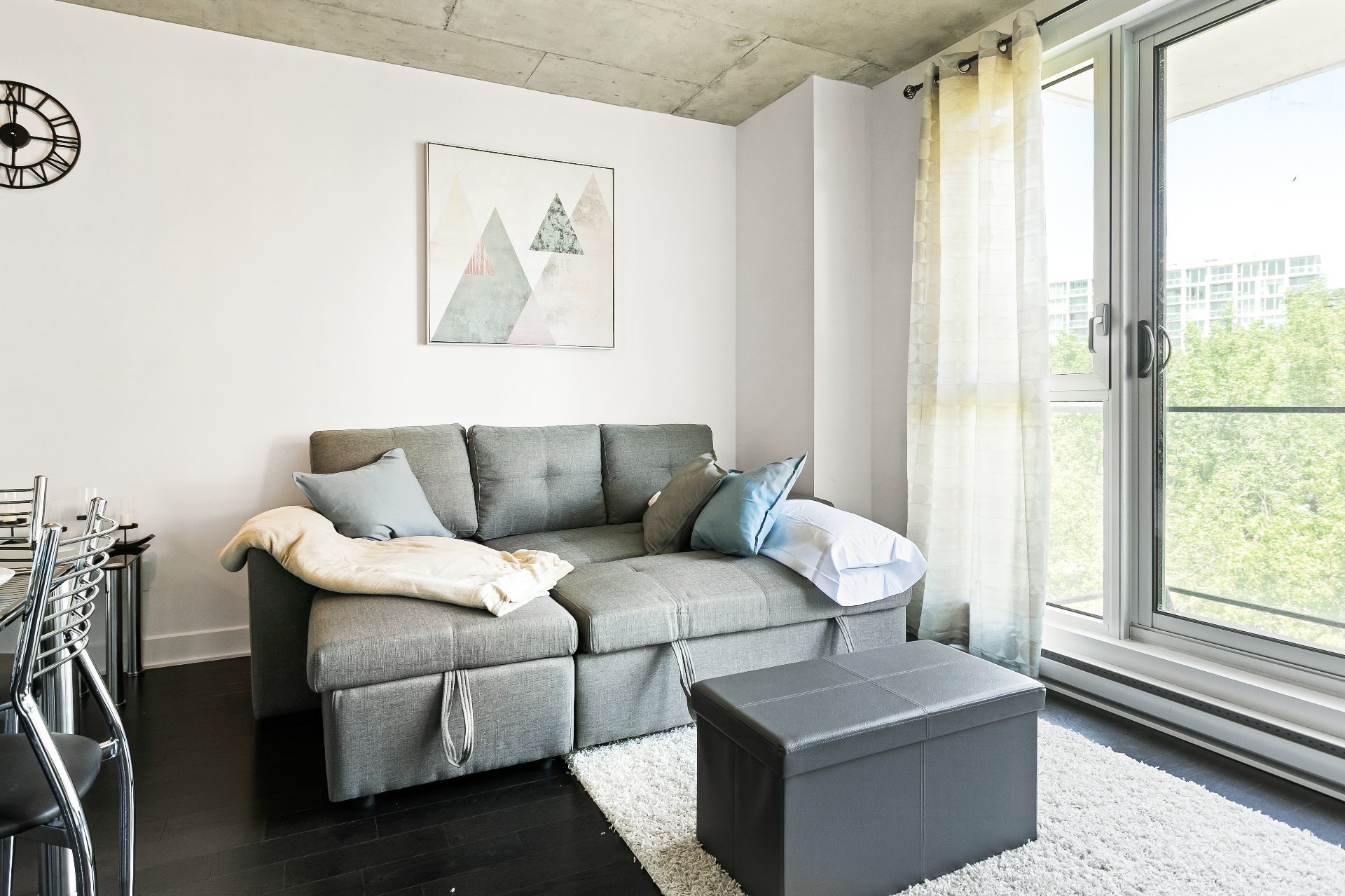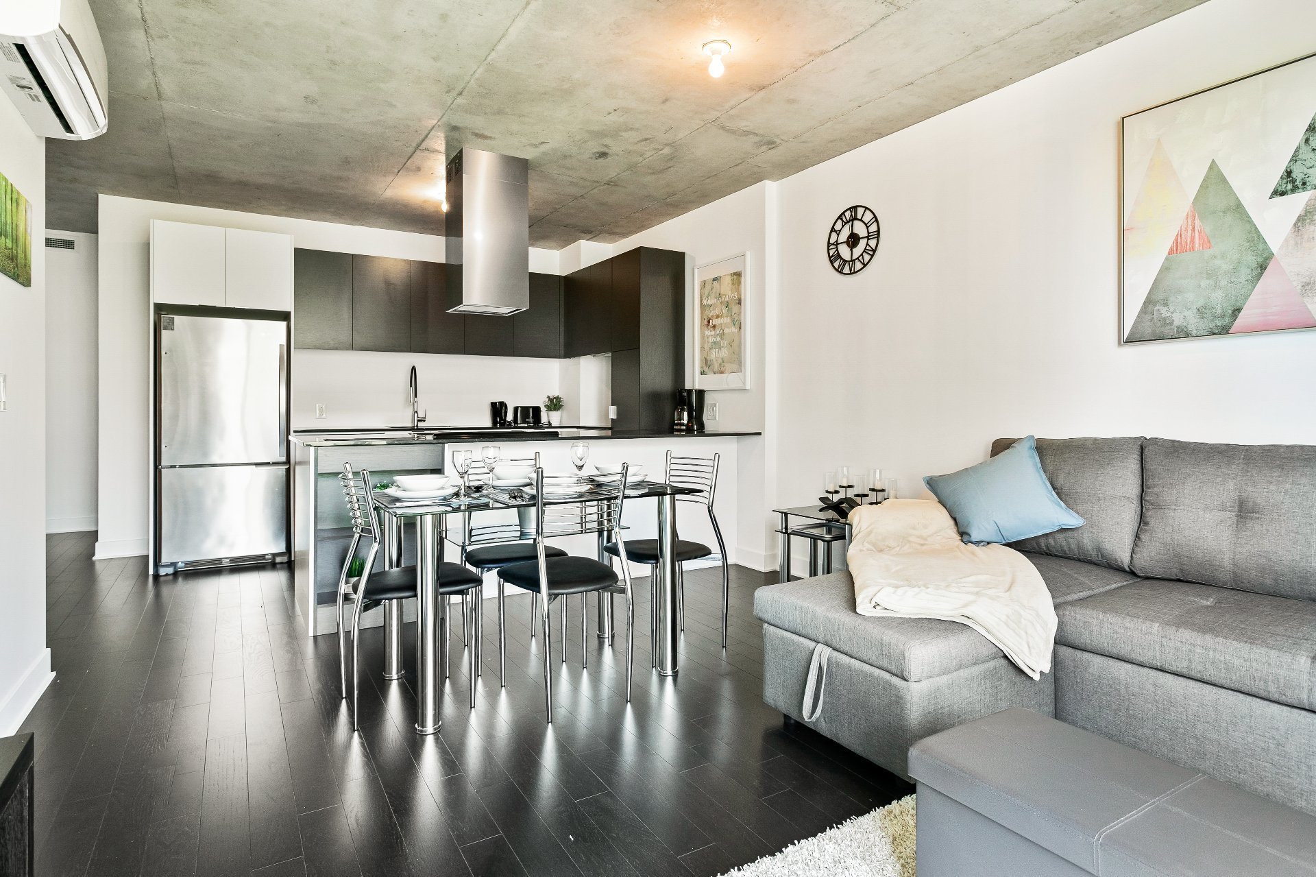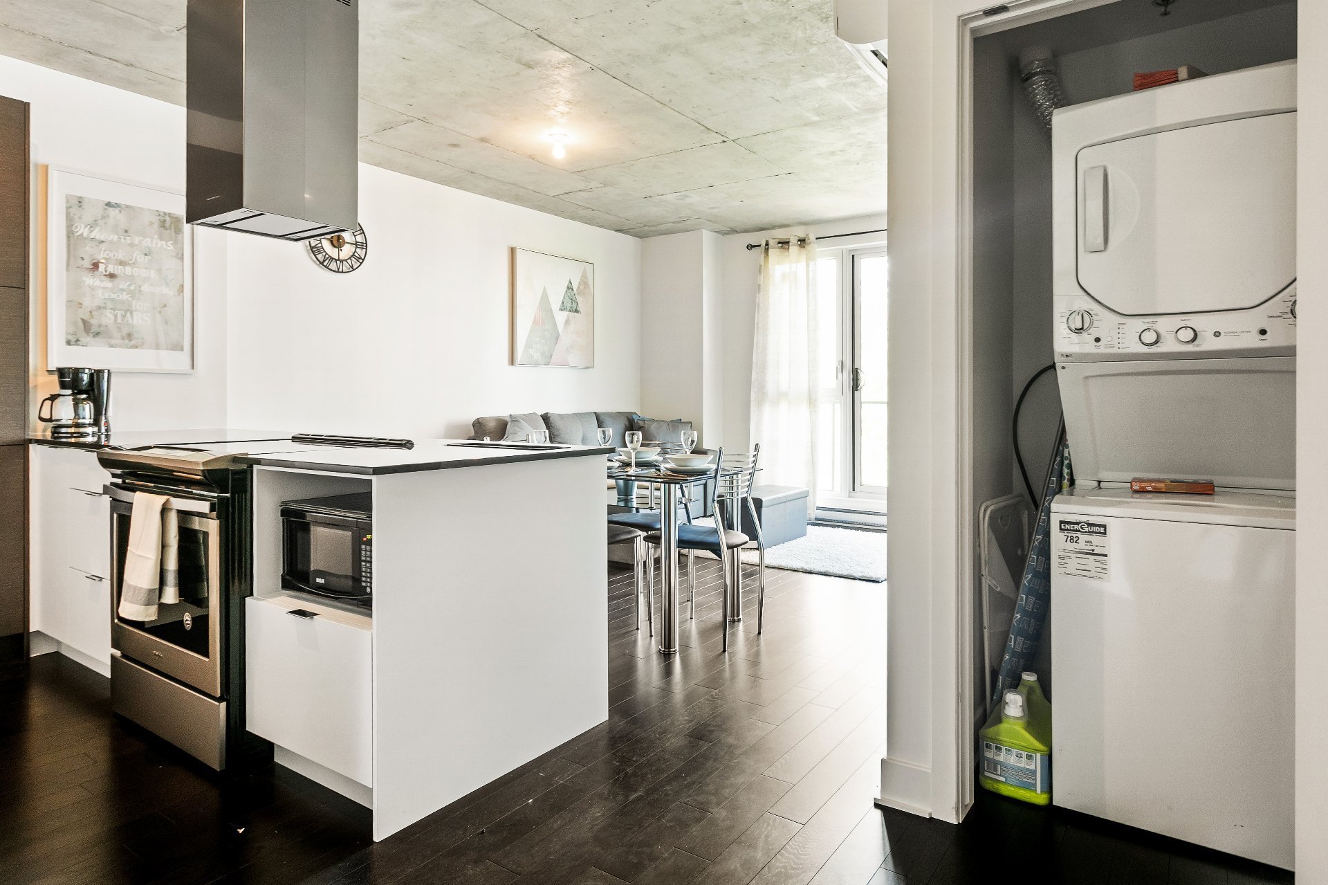 Stunning new condo in the heart of Griffintown located near some of the best restaurant, bars and night life. Easy access to highway 720 and a 12 minute walk to Lucien L’Allier metro and train stations. Enjoy two bedrooms, 2 bathroom, quality finishes and modern design throughout. Building offers exercise room, pool and rooftop terrace.