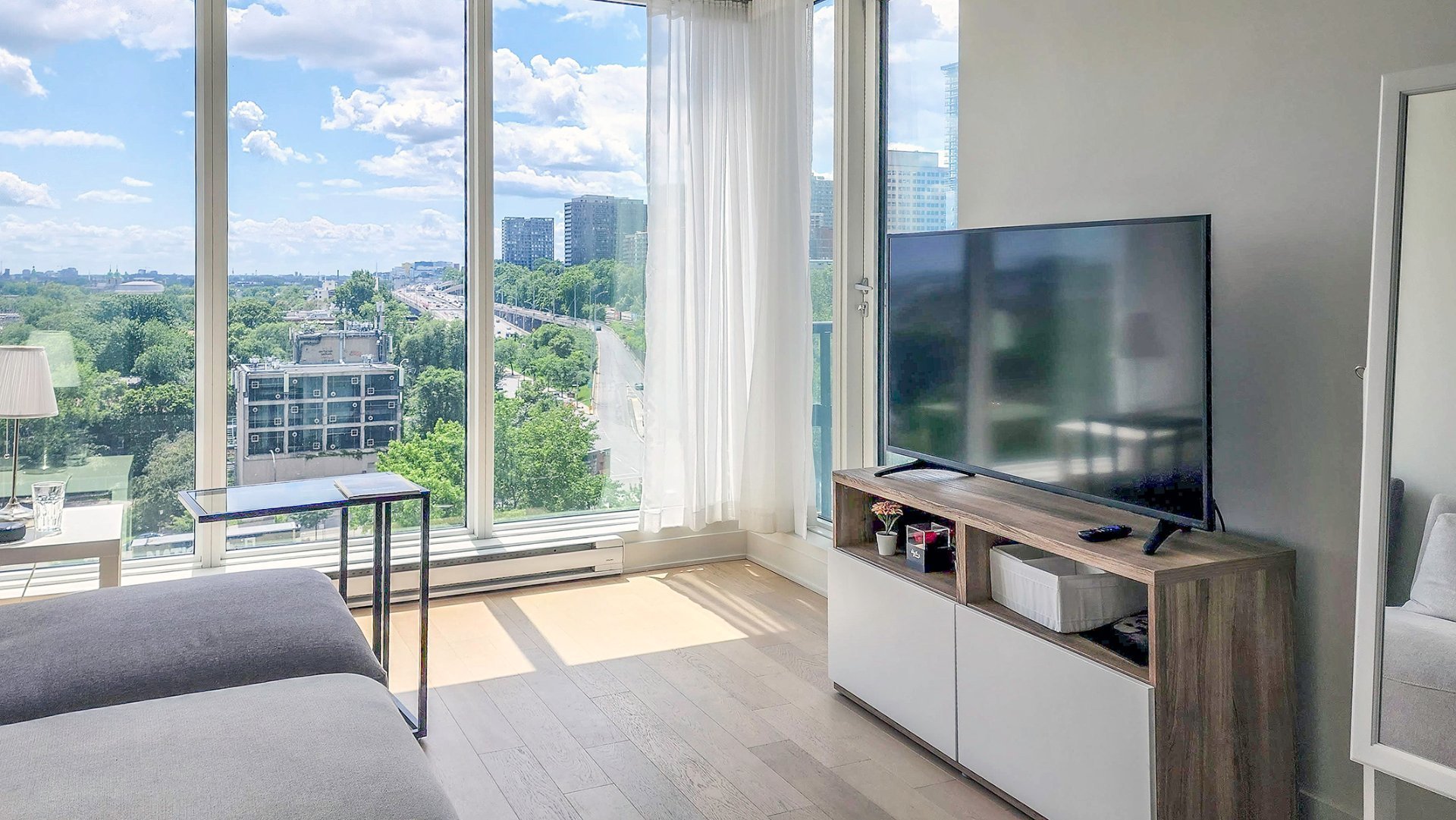 Tour des Canadiens 3: Stunning west-facing 1 bed + den condo on the 11th floor. Bathed in bright sunlight with panoramic, unobstructed views. Enjoy 9’ ceilings, private balcony, and in-unit laundry. World-class amenities include indoor pool, spa, sauna, exclusive 55th-floor Sky Lounge, billiards, foosball, gym, and 24/7 security, plus more! Steps from Bell Centre, metro, and universities. Prime opportunity, act fast!