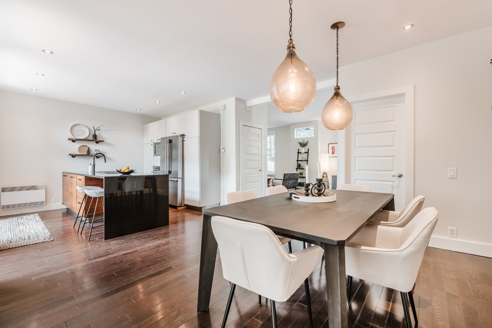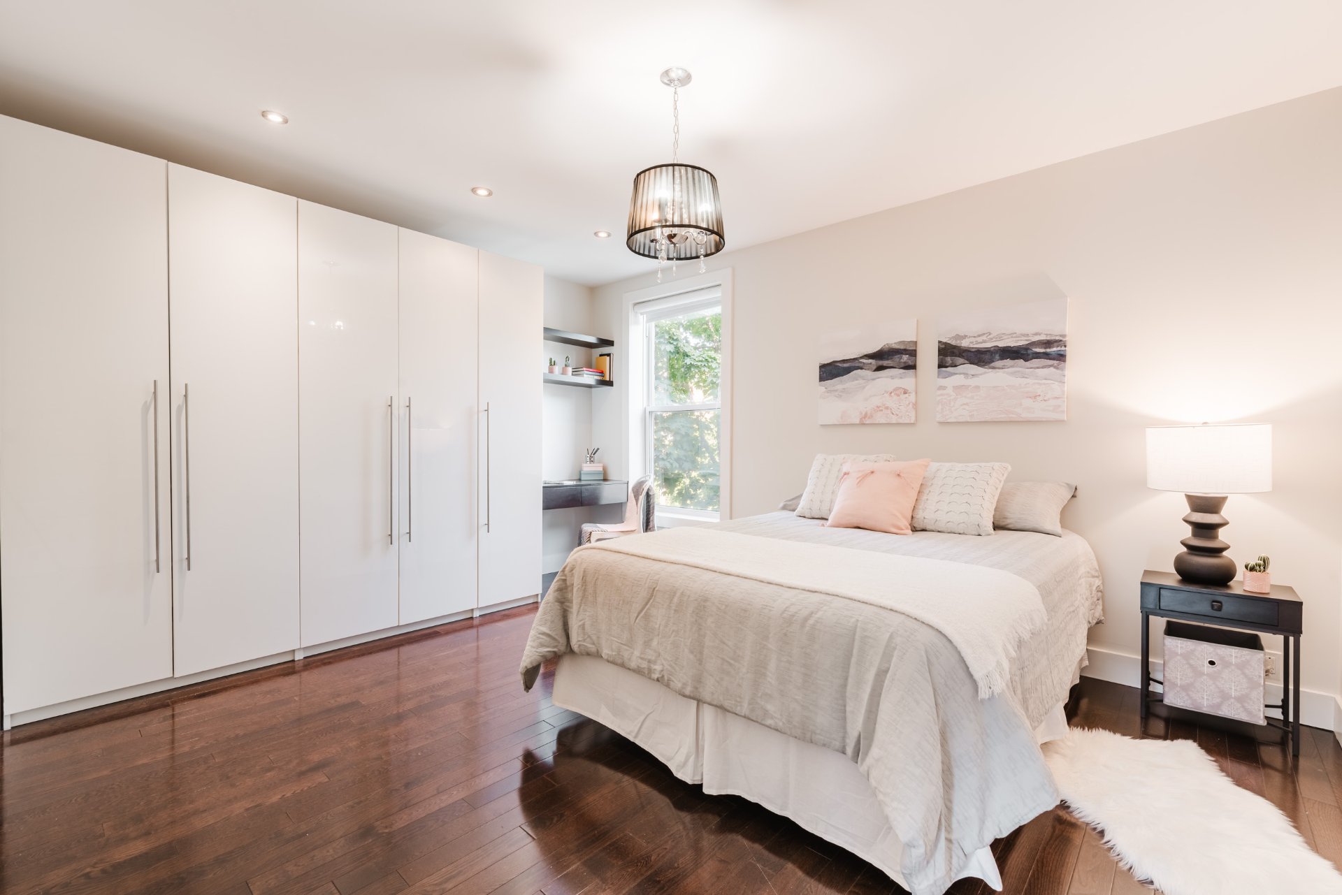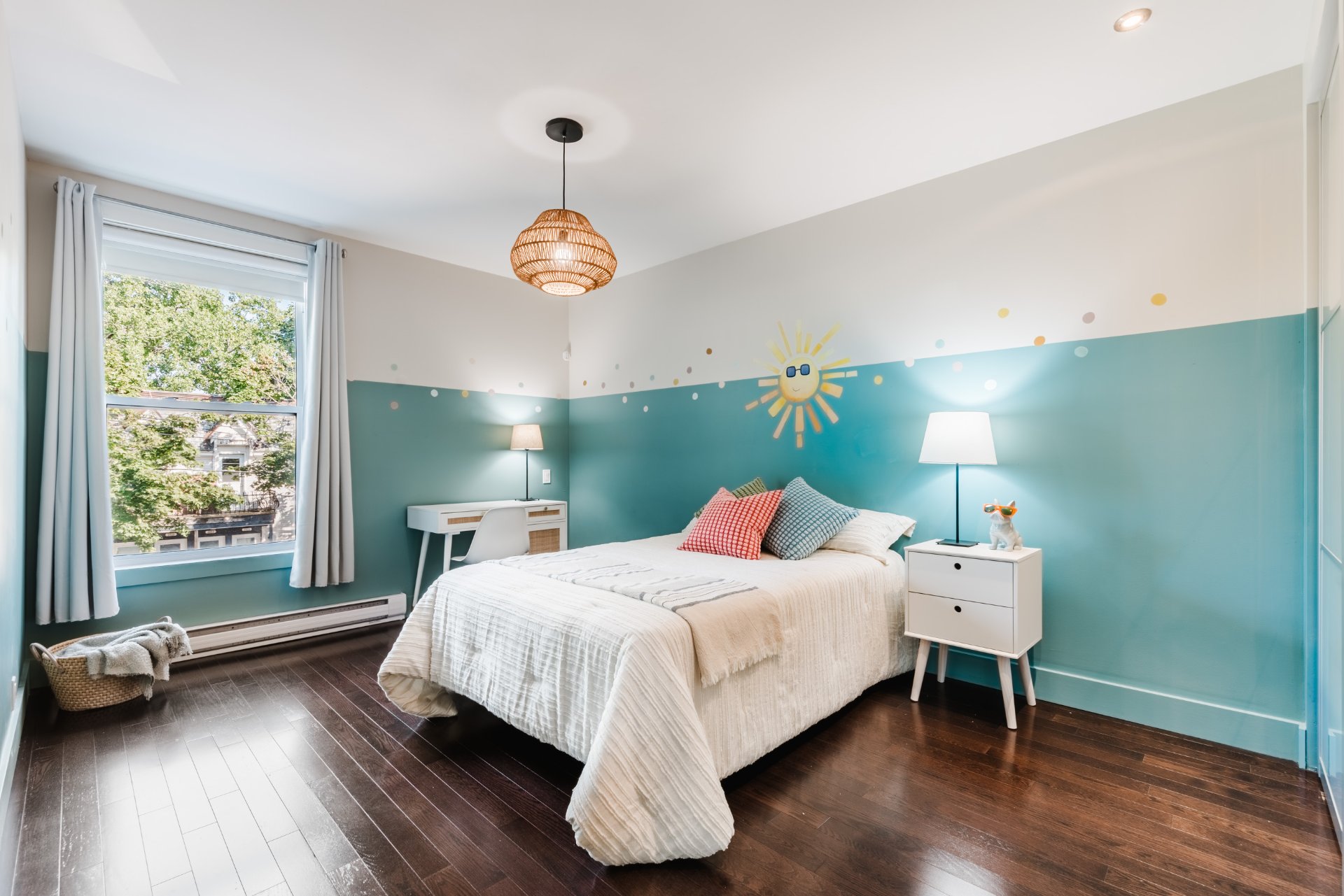 2 light fixtures over dining room table and light fixture in child’s bedroom.