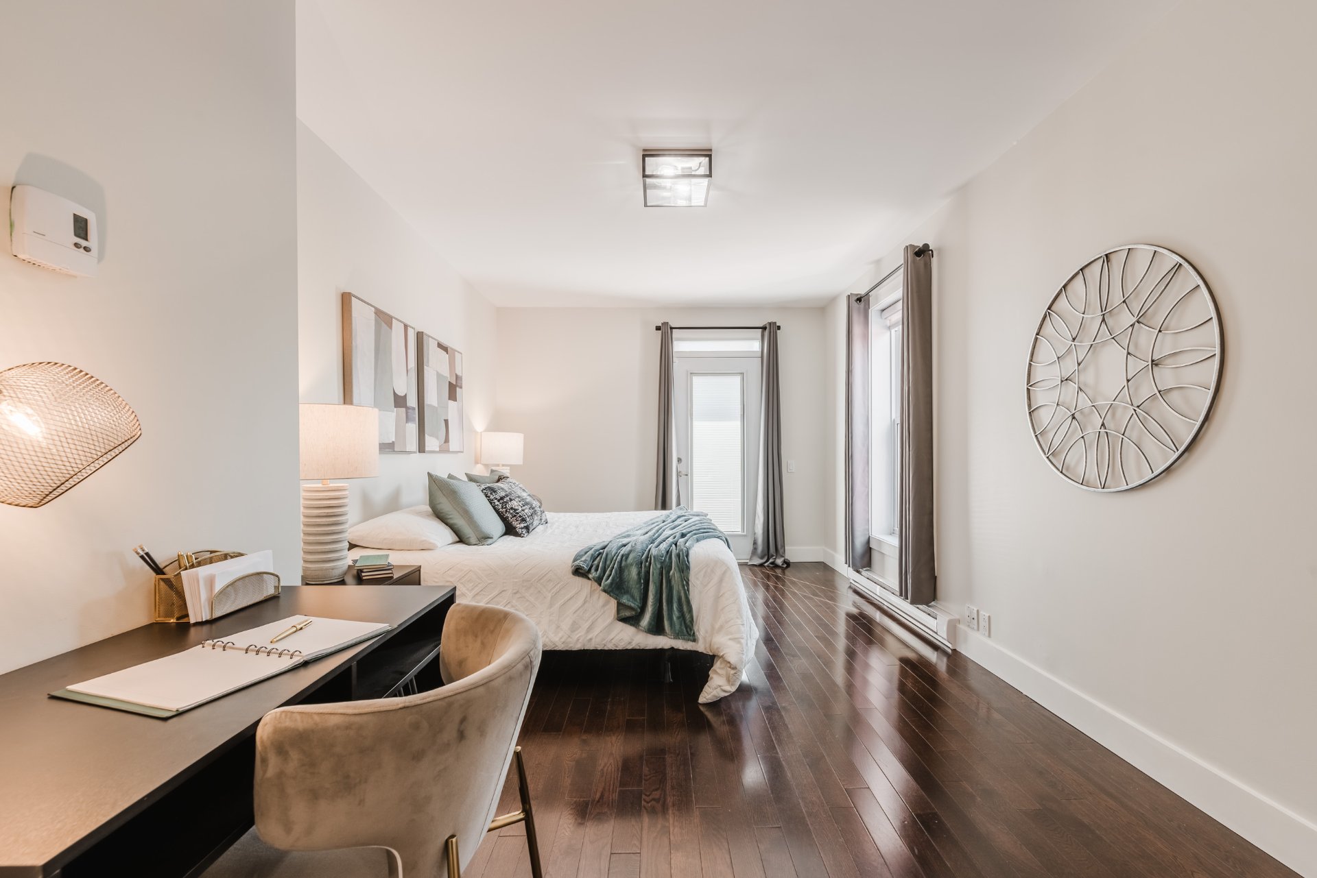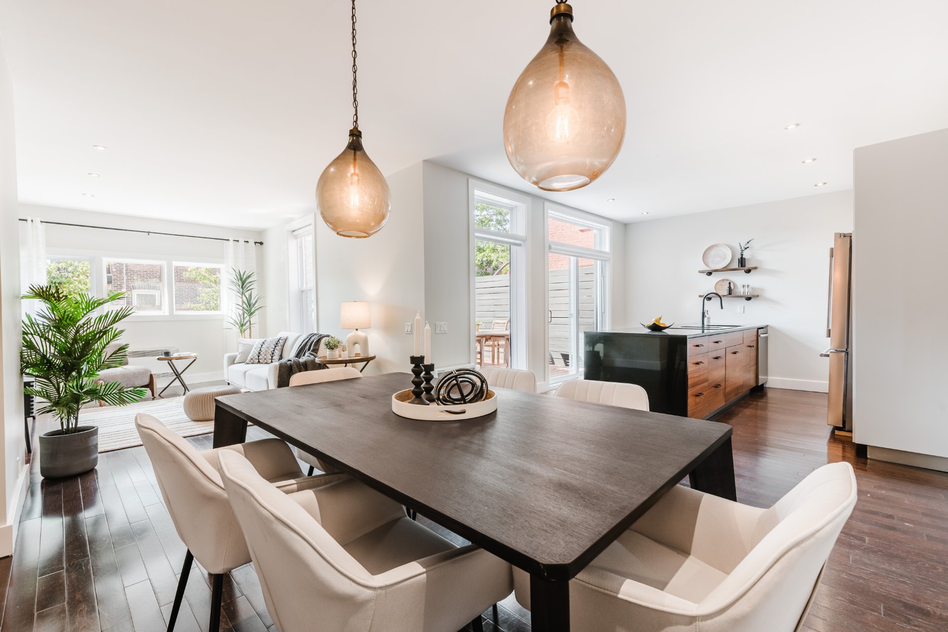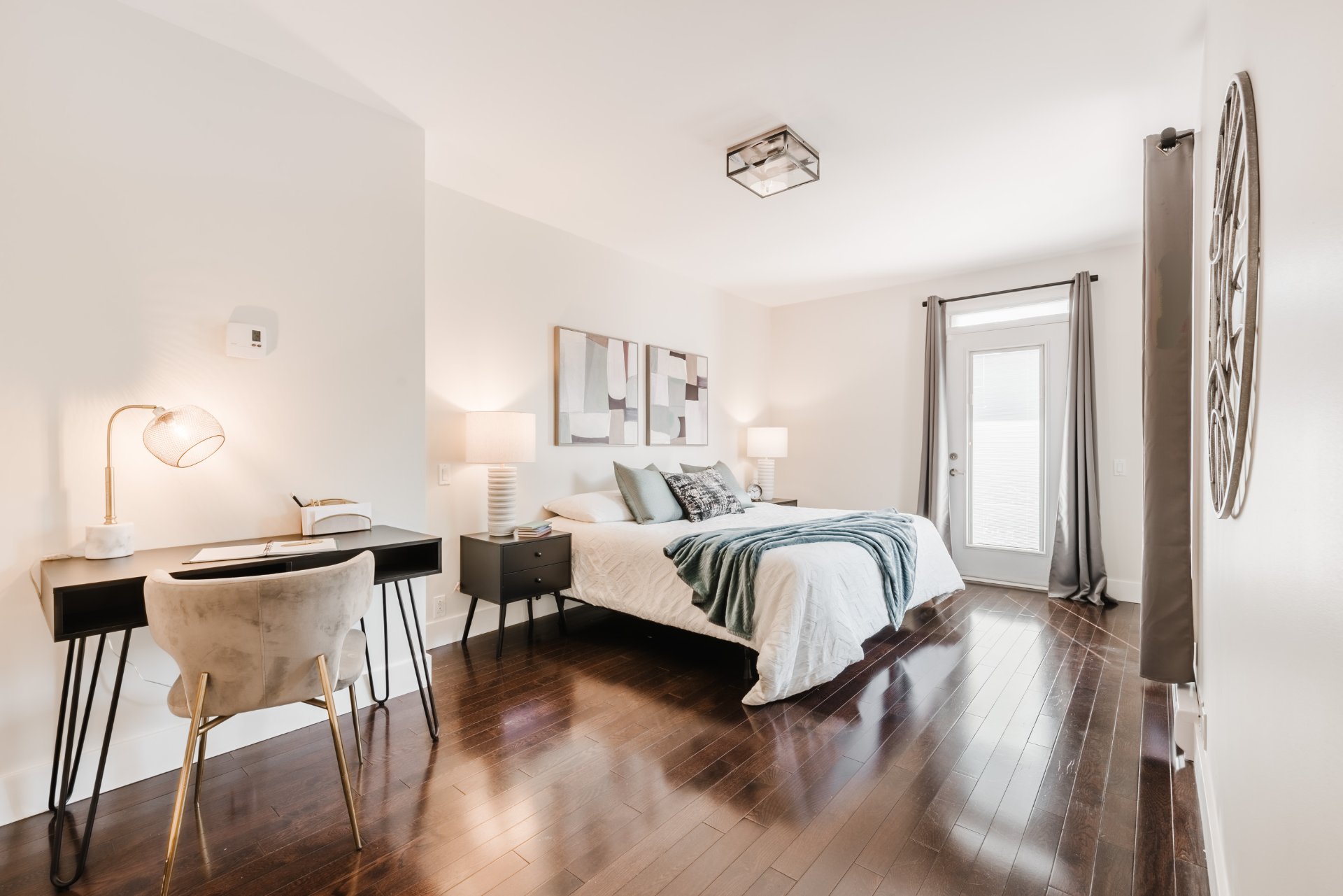 2 light fixtures over dining room table and light fixture in child’s bedroom.