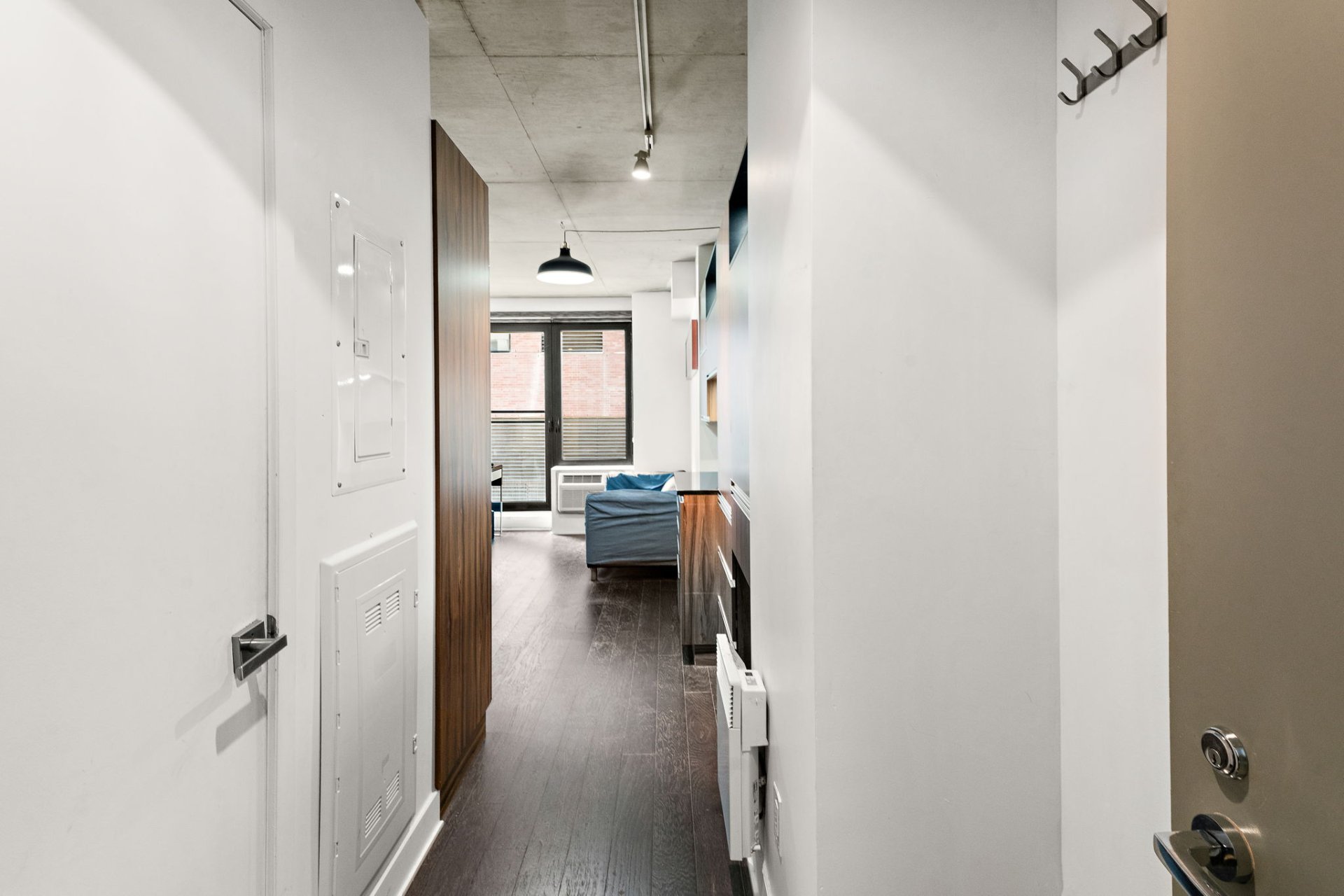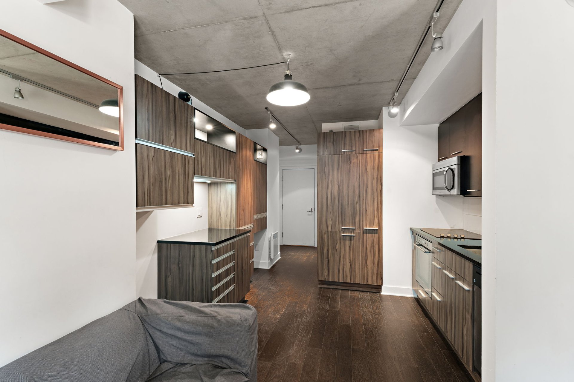 Bright and well-laid-out studio in the sought-after Lowney sur Ville development, located in the heart of Griffintown. Features a semi-closed bedroom, modern open-concept kitchen with dinette, and a comfortable living space. Griffintown is a vibrant, fast-growing area perfect for all. Easy access to the Bonaventure Expressway, REM, metro, buses, and downtown. Just steps from grocery stores, restaurants, banks, cafés, shops, and more. Enjoy walks or bike rides along the scenic Lachine Canal to Atwater Market or the Old Port.